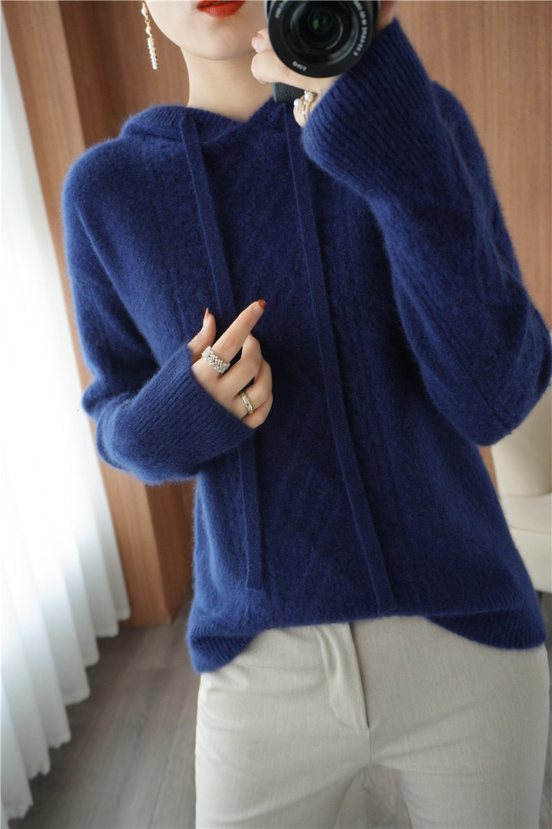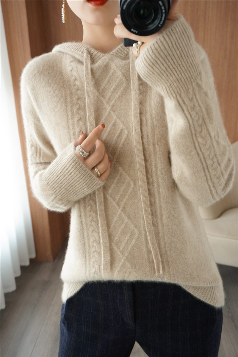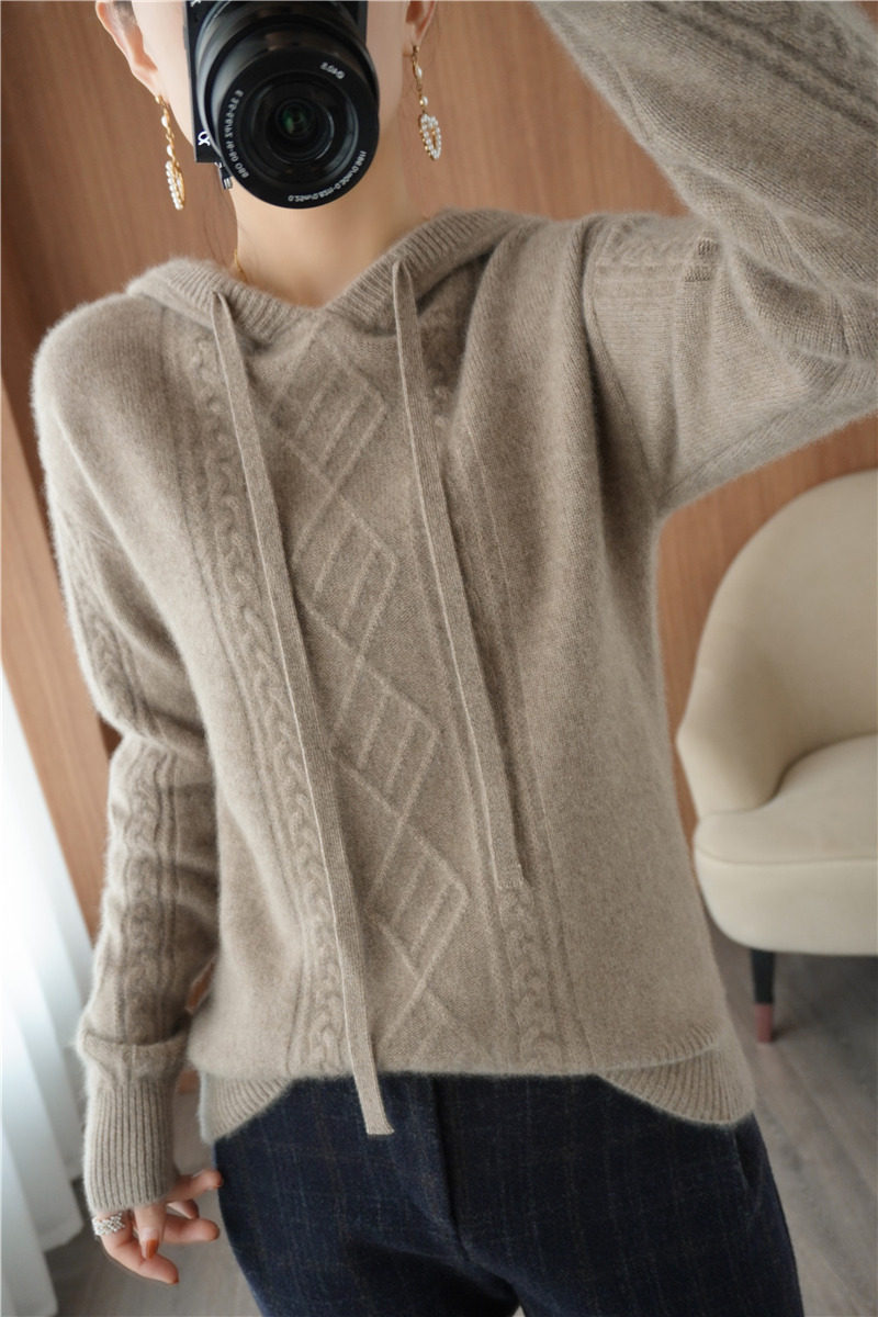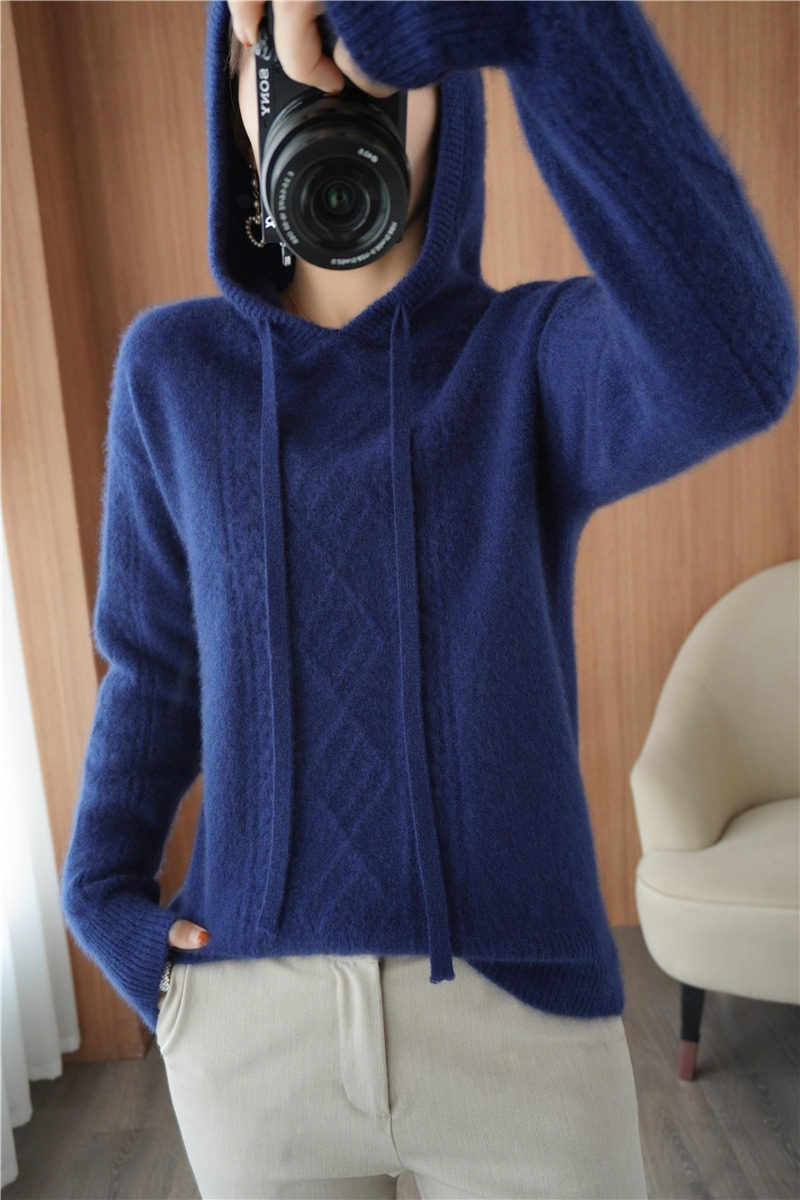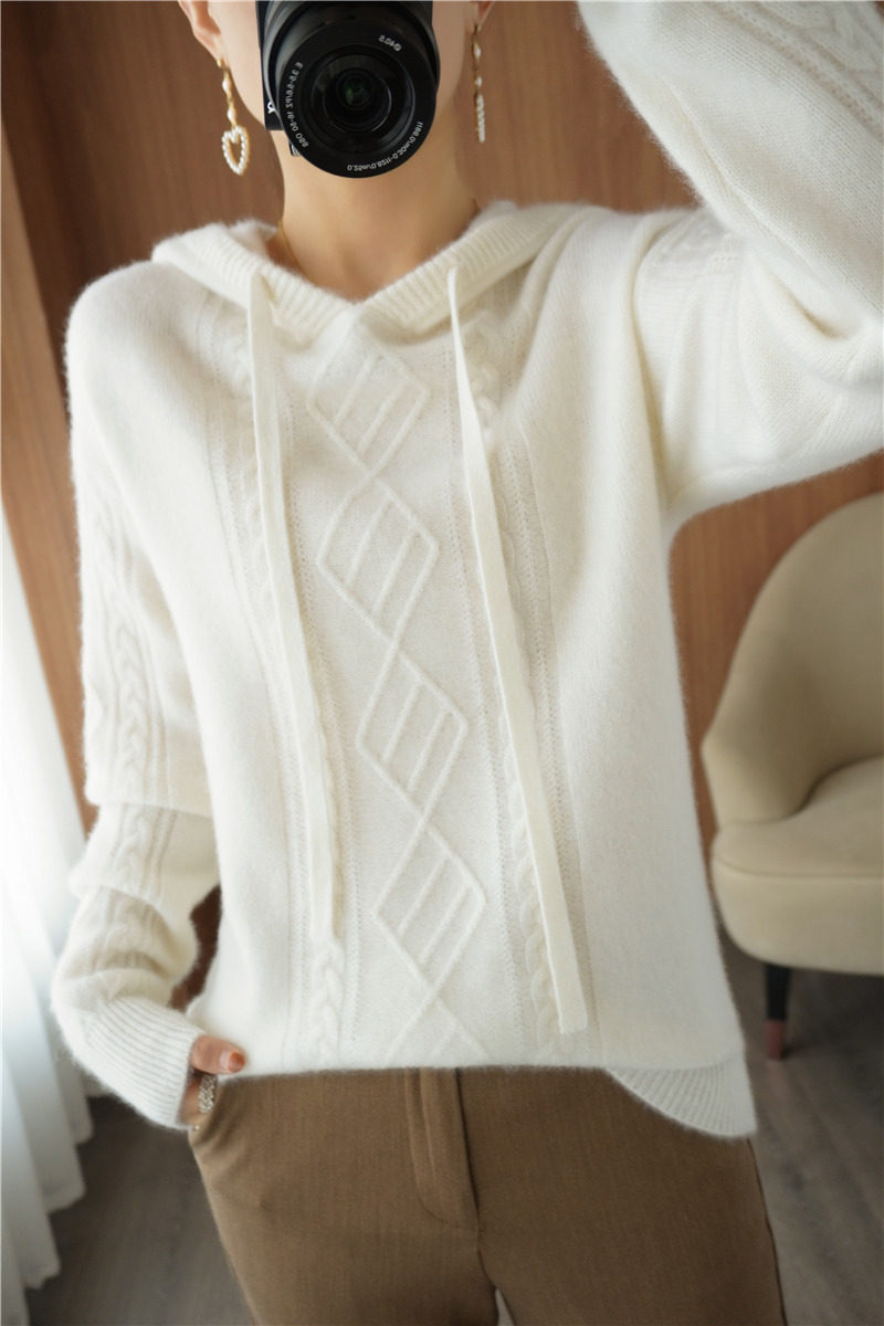 Зимний шерстяной балахон с капюшоном, трикотажная толстовка, трикотажный свитер, коллекция 2021, оверсайз