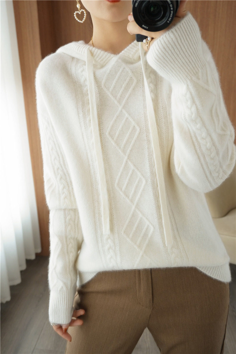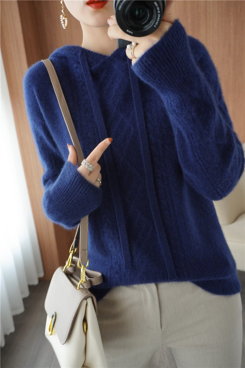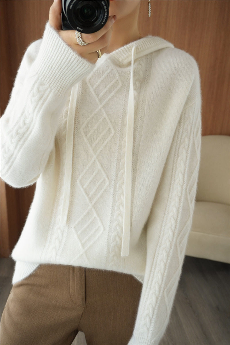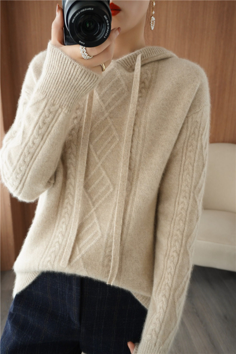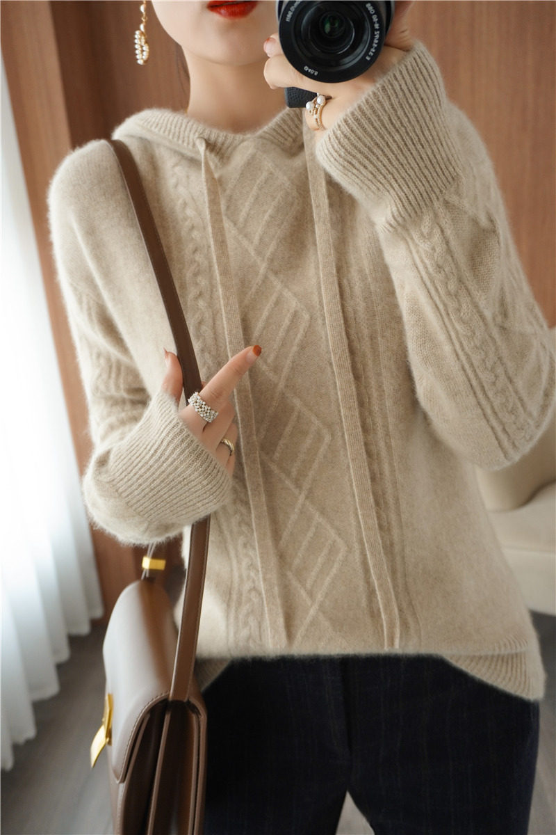 Зимний шерстяной балахон с капюшоном, трикотажная толстовка, трикотажный свитер, коллекция 2021, оверсайз