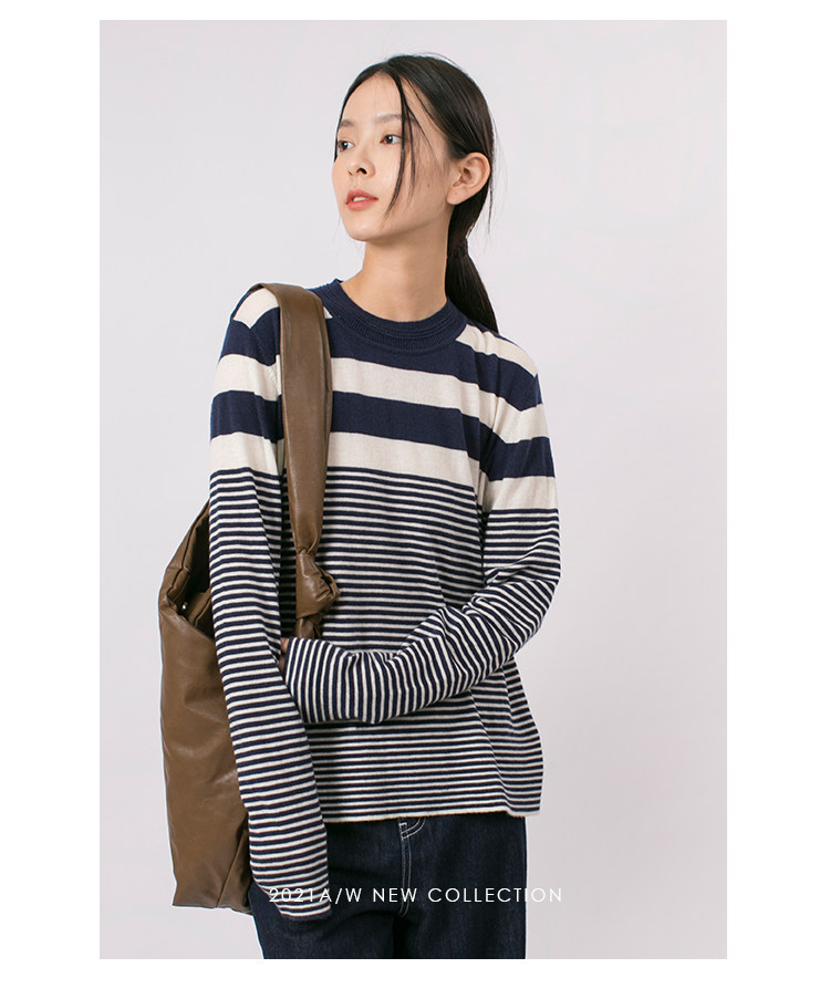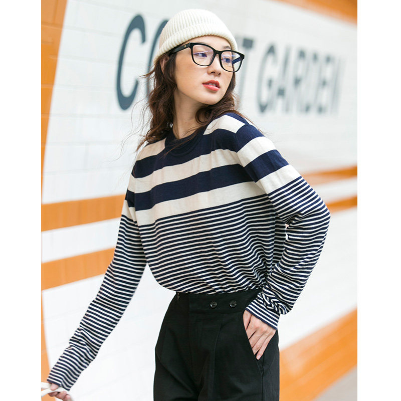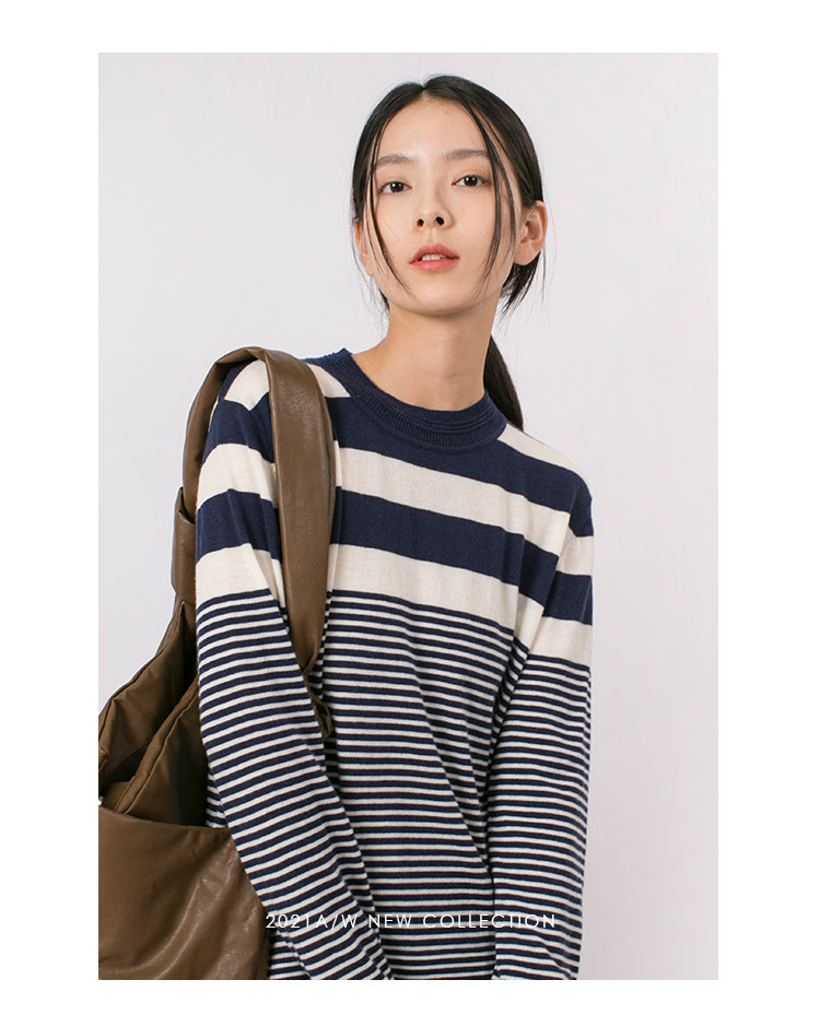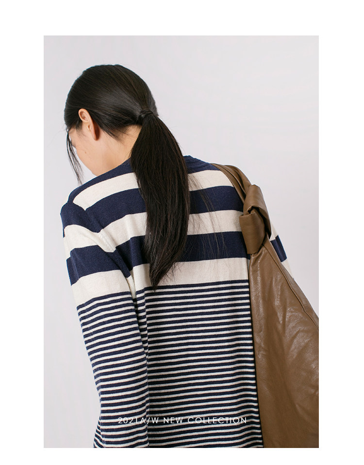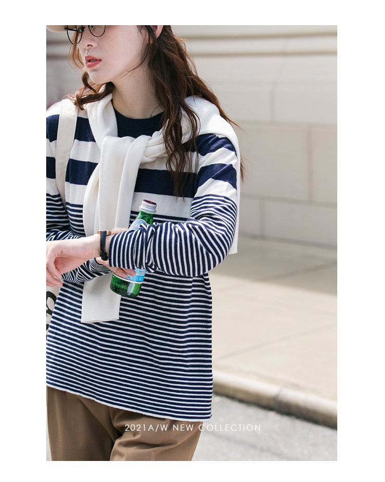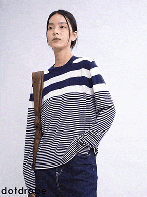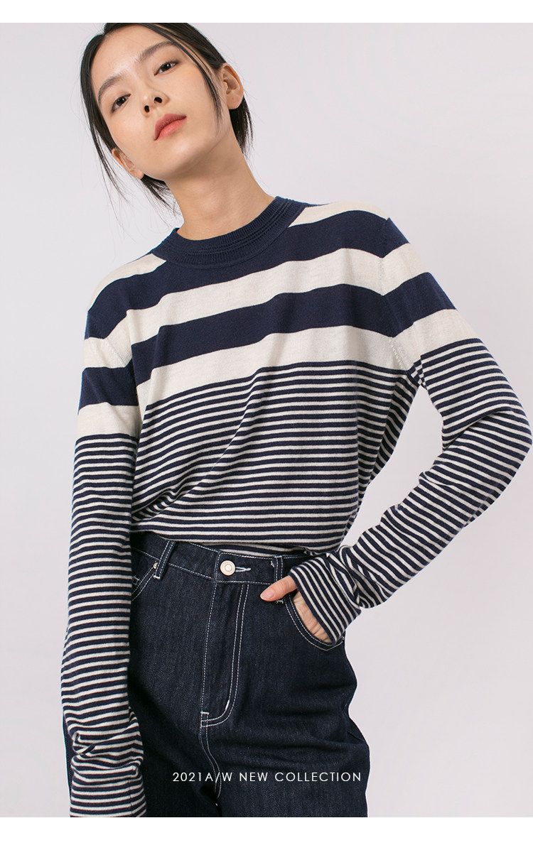 DotDrobe предлагает множество осенних женских пуловеров из шерсти мериноса UPW в темно-синюю и белую полоску.