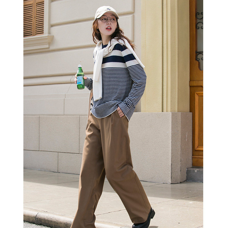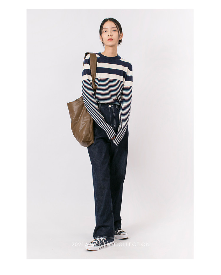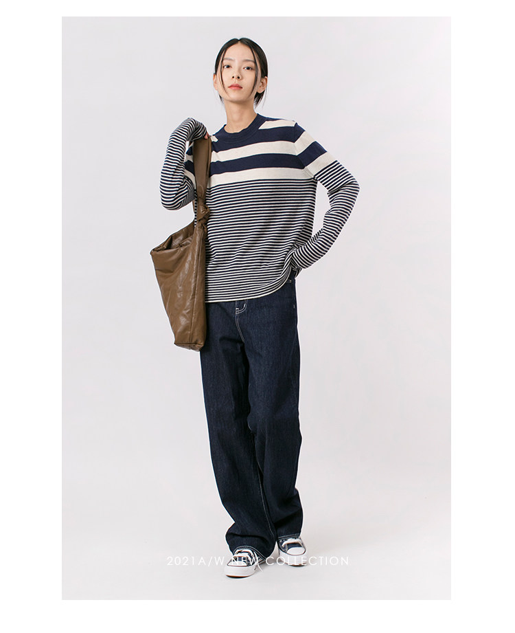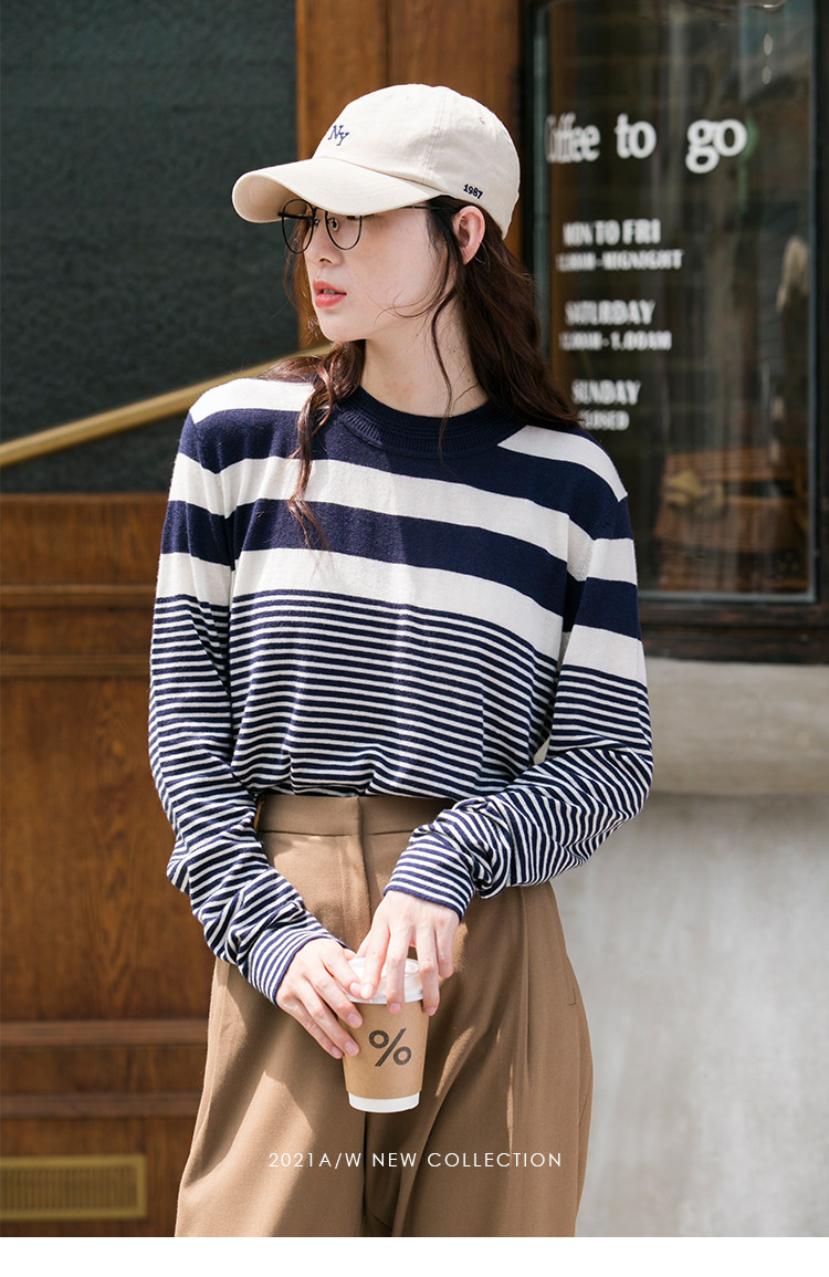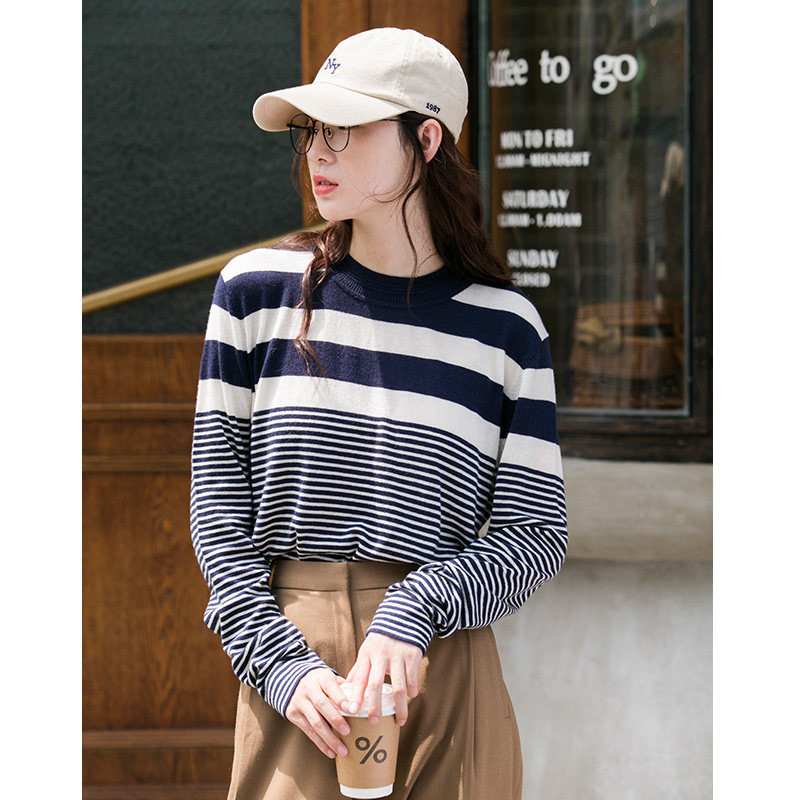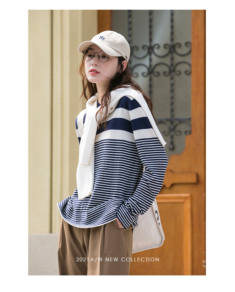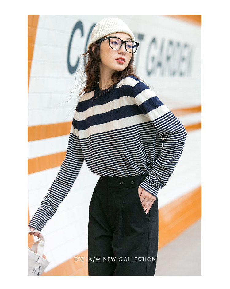DotDrobe предлагает множество осенних женских пуловеров из шерсти мериноса UPW в темно-синюю и белую полоску.