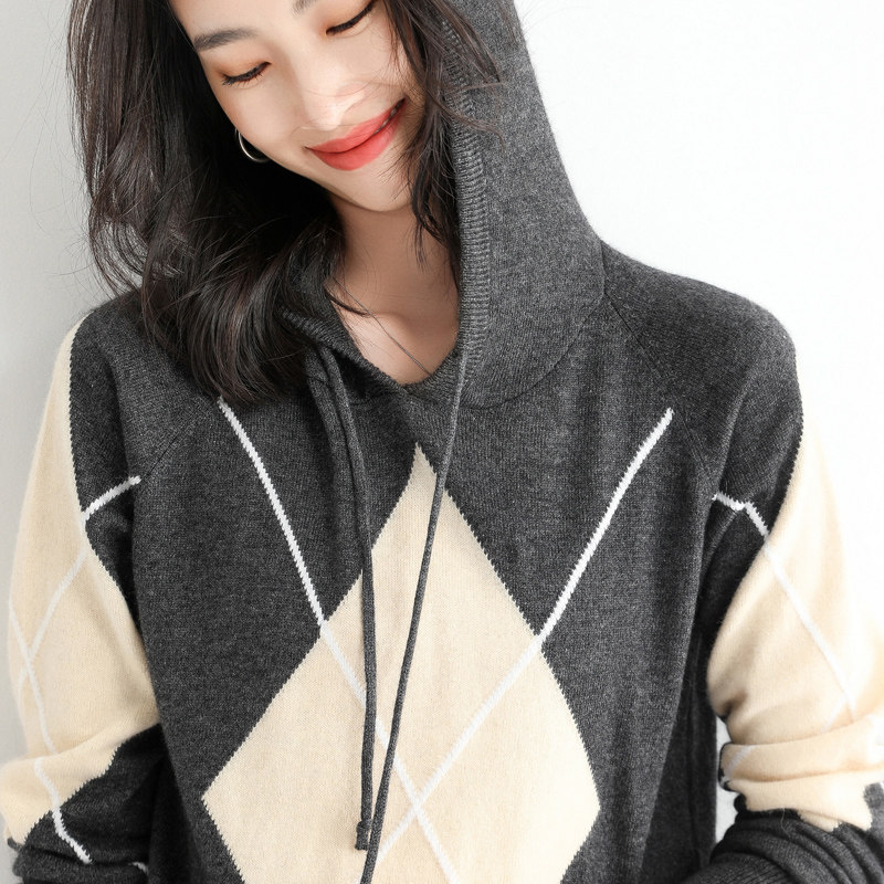 Демисезонная трикотажная толстовка с капюшоном, трикотажный свитер, коллекция 2021, оверсайз, в корейском стиле