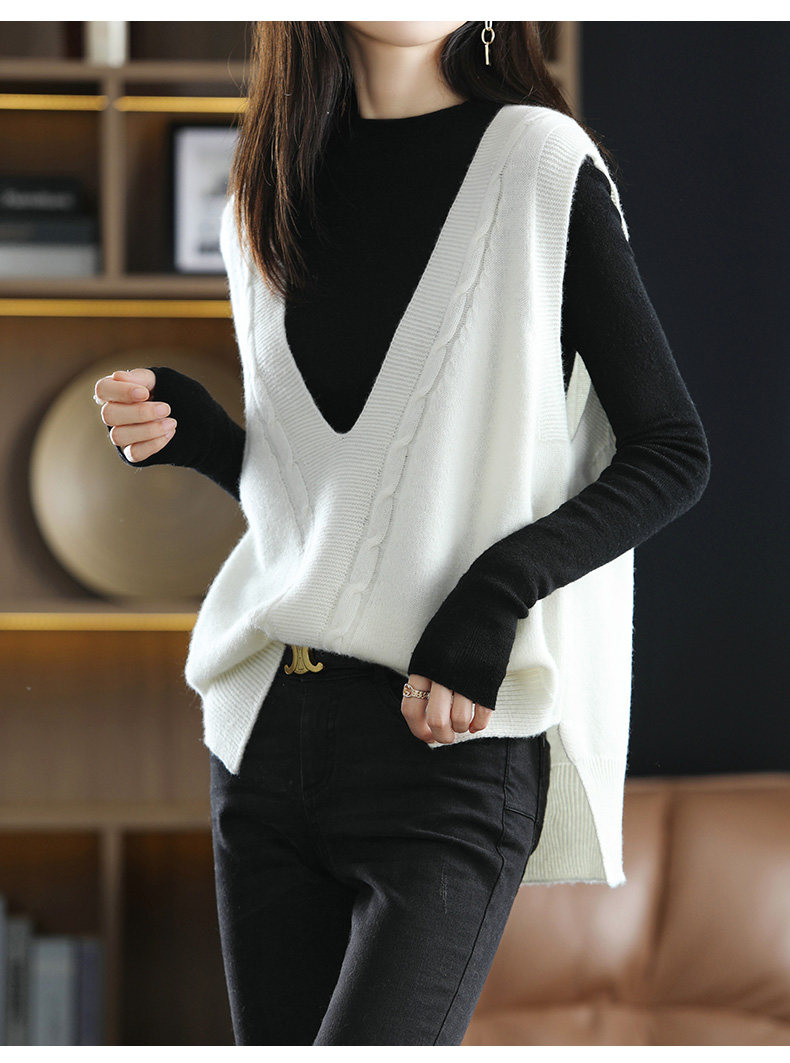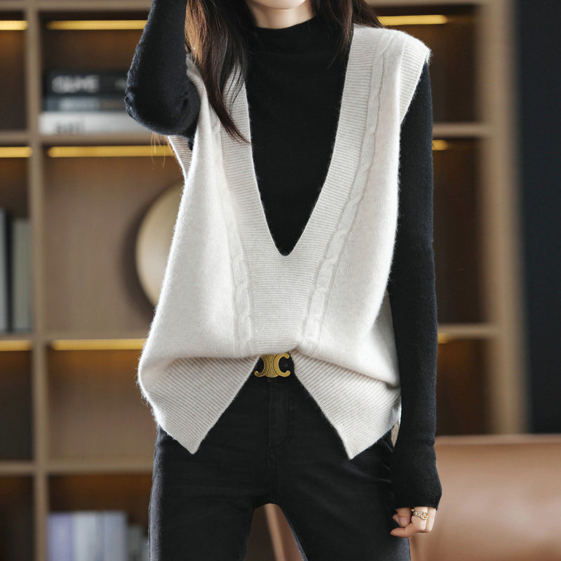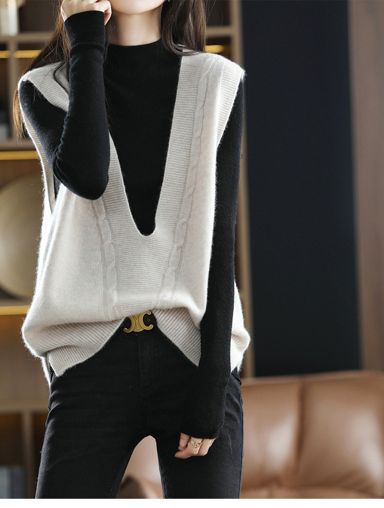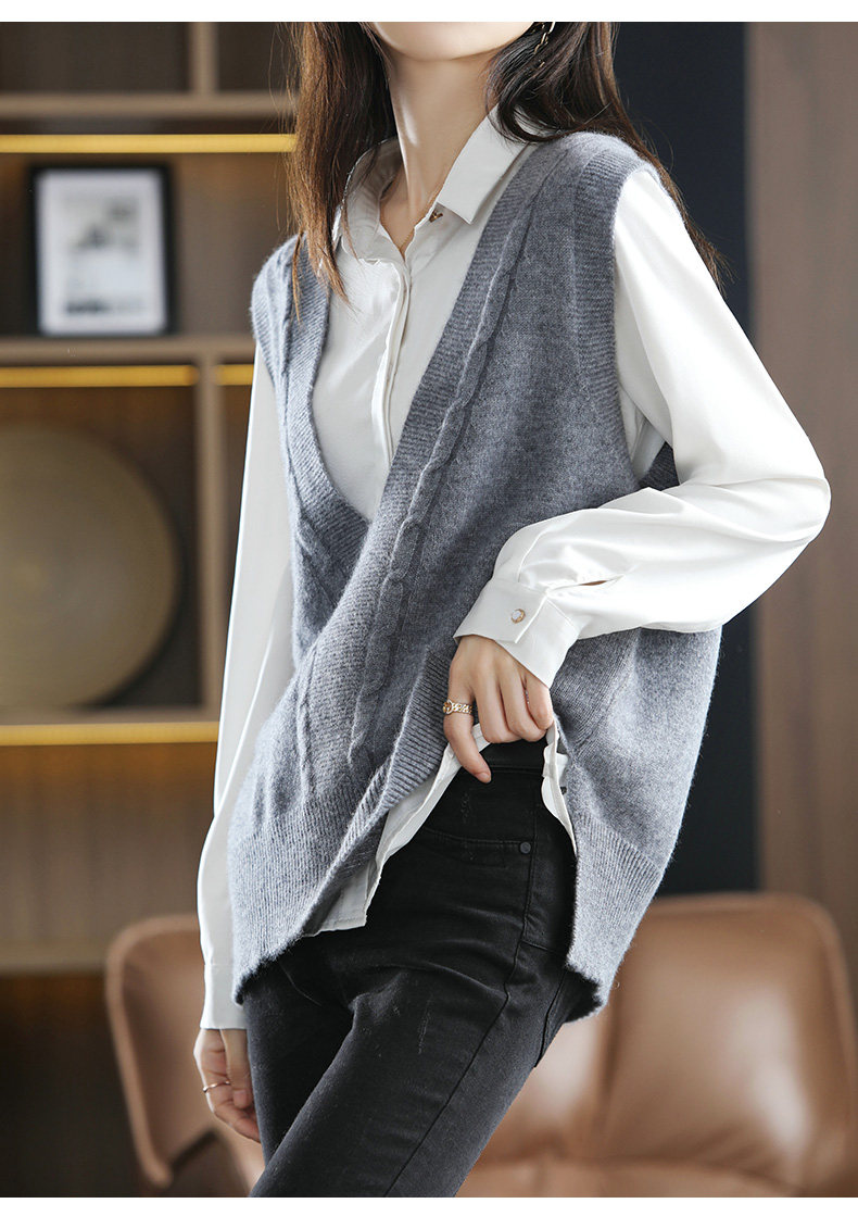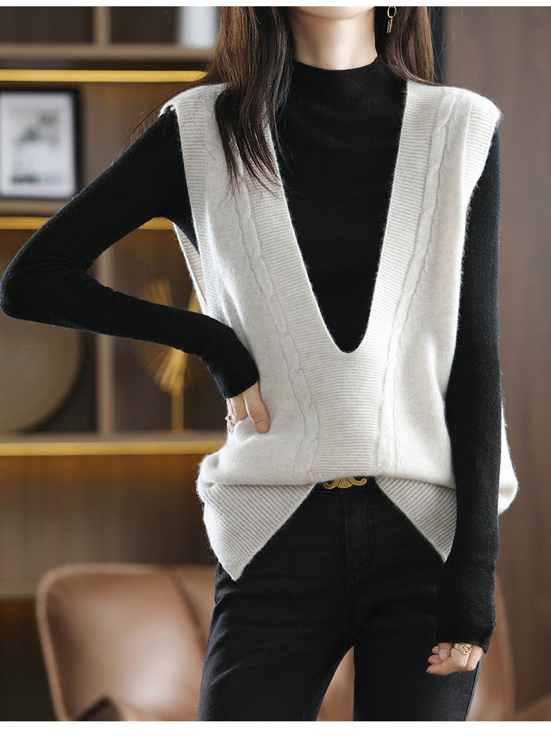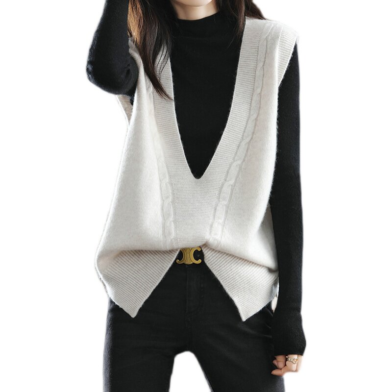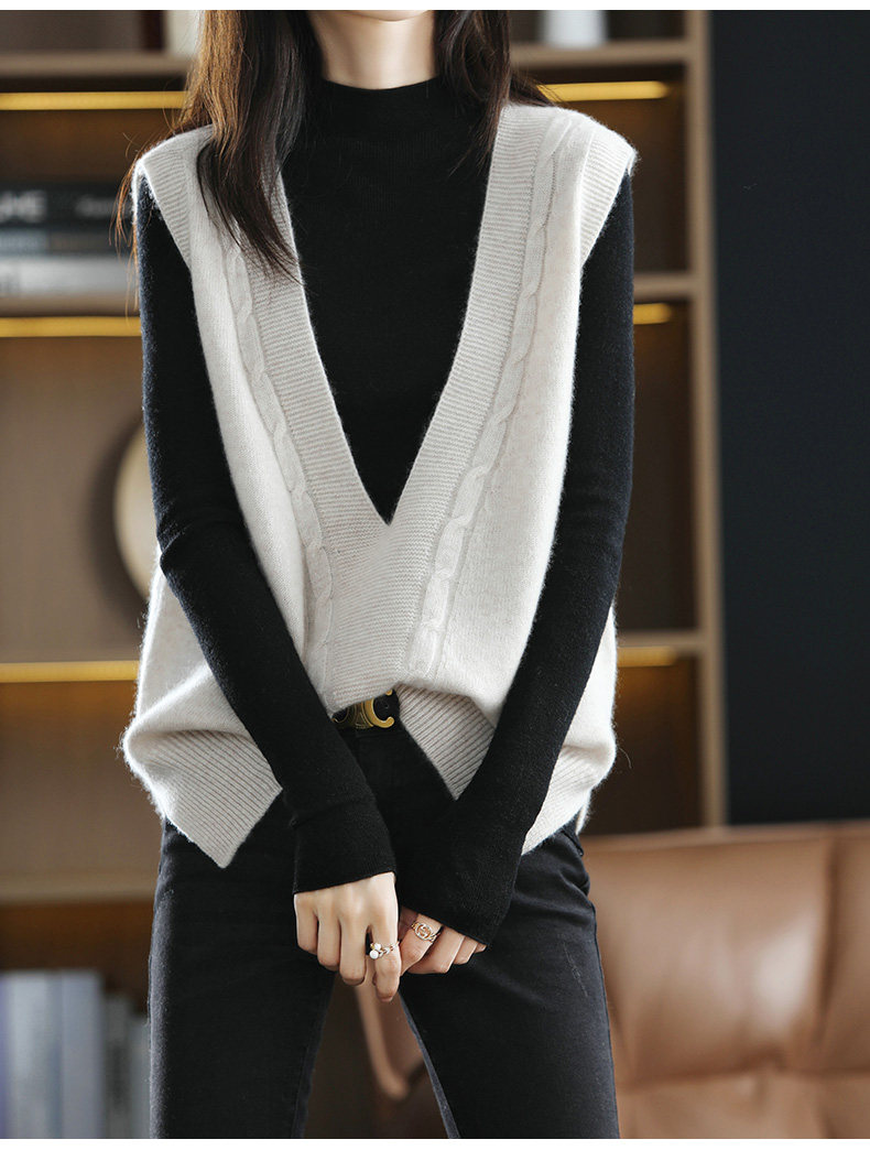 Кашемировый демисезонный жилет, майка топ, шерстяная ретро футболка без рукавов, V-образный вырез, оверсайз