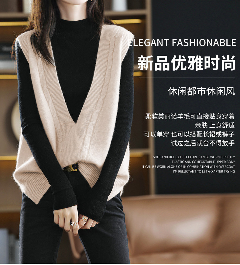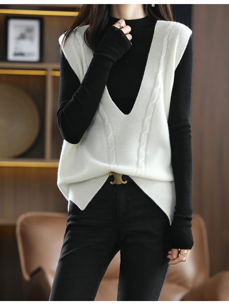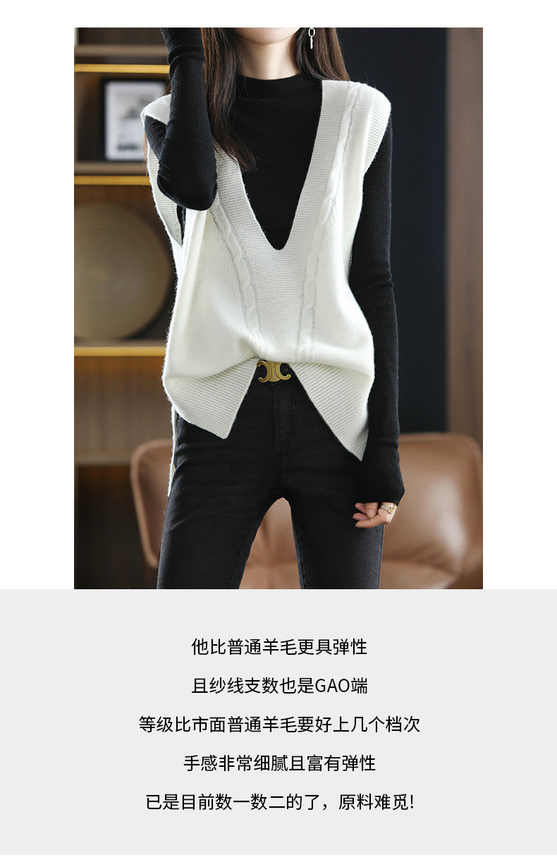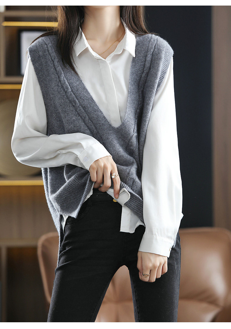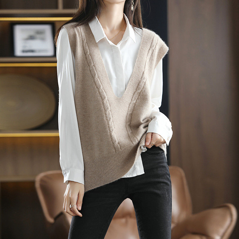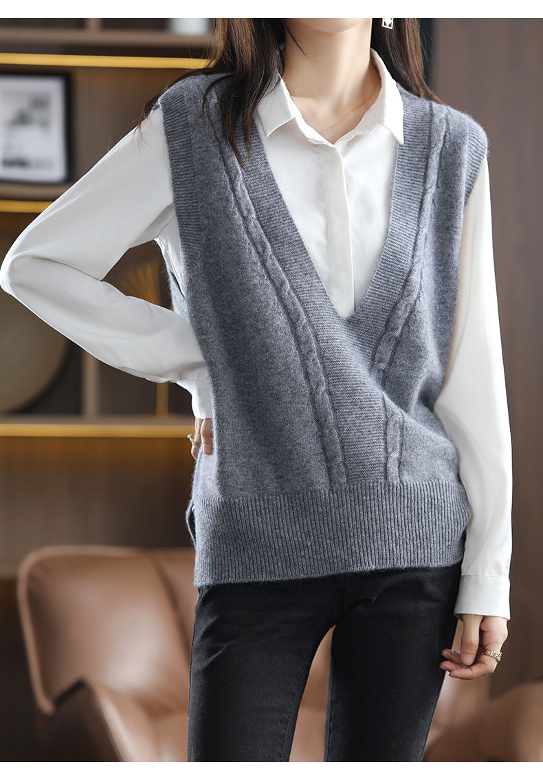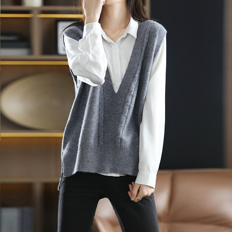 Кашемировый демисезонный жилет, майка топ, шерстяная ретро футболка без рукавов, V-образный вырез, оверсайз
