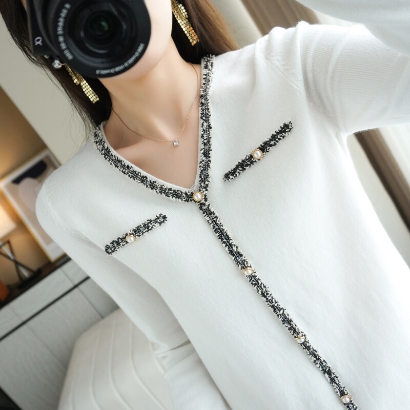 Трикотажный свитер, демисезонный базовый лонгслив, в стиле Шанель, коллекция 2021