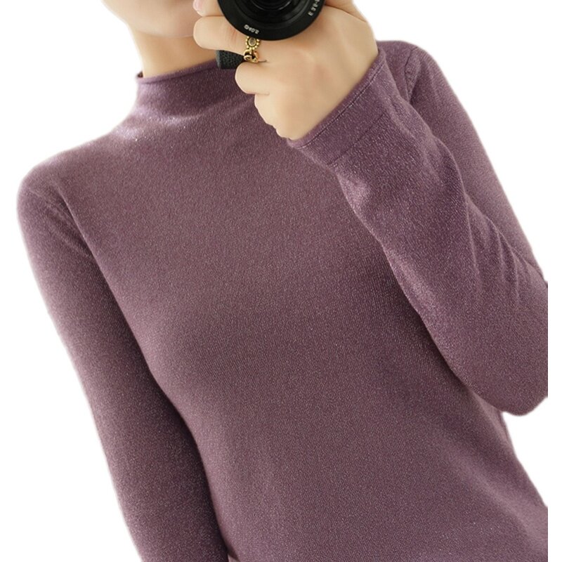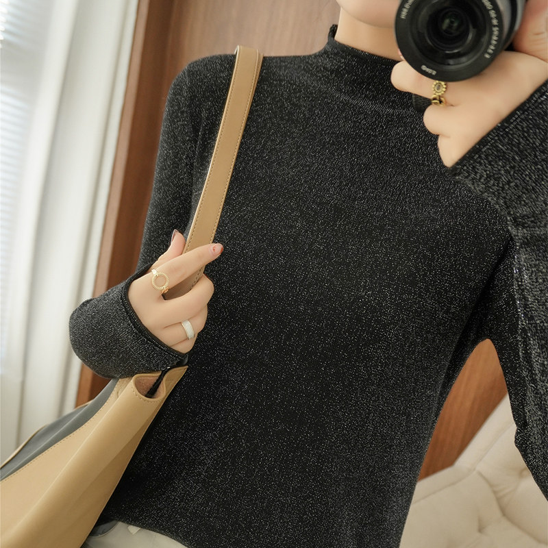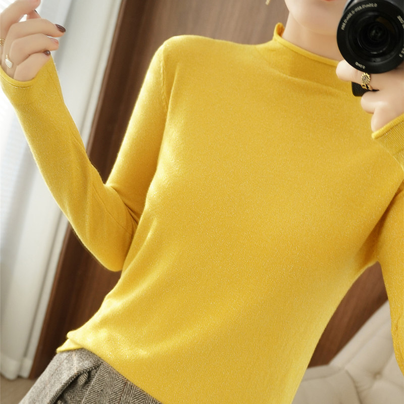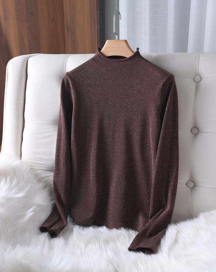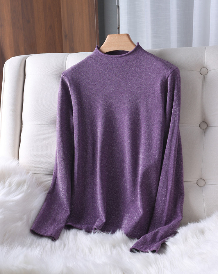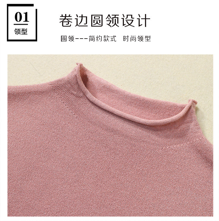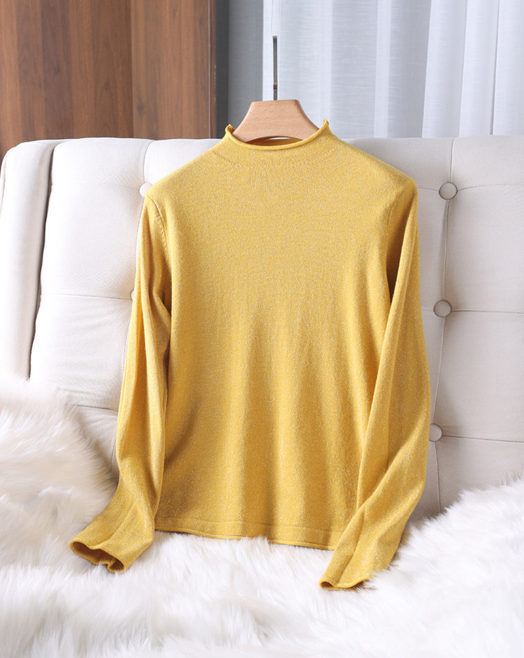 Демисезонный свитер, трикотажный короткий лонгслив, высокий воротник, в западном стиле