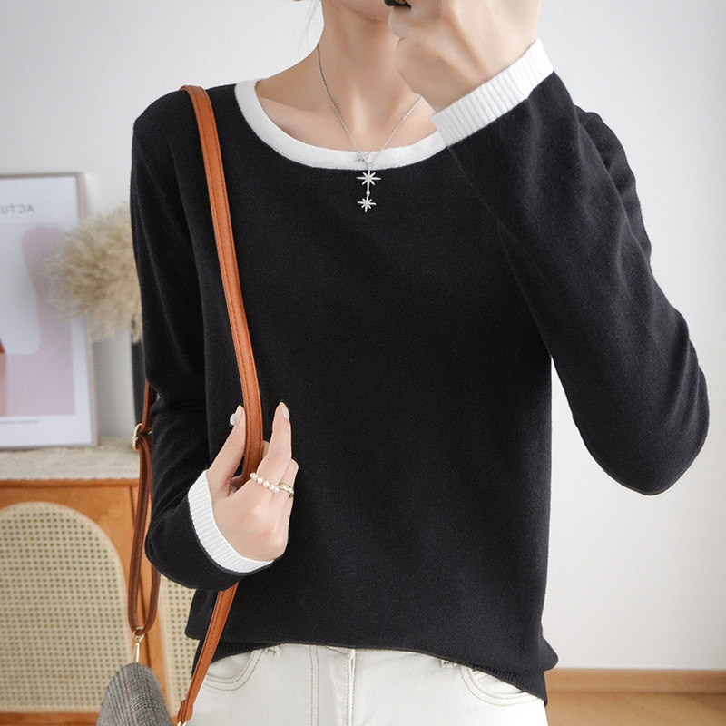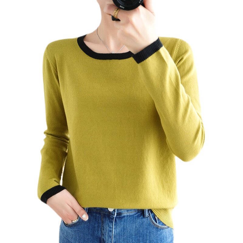 Демисезонный шерстяной свитер с круглым воротником, короткий базовый приятный телу лонгслив