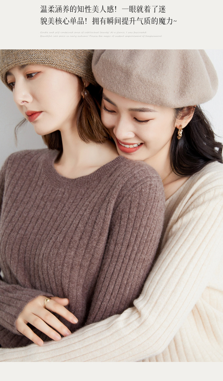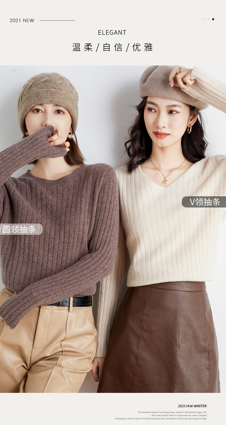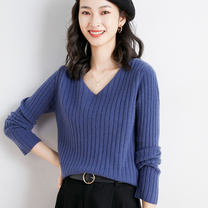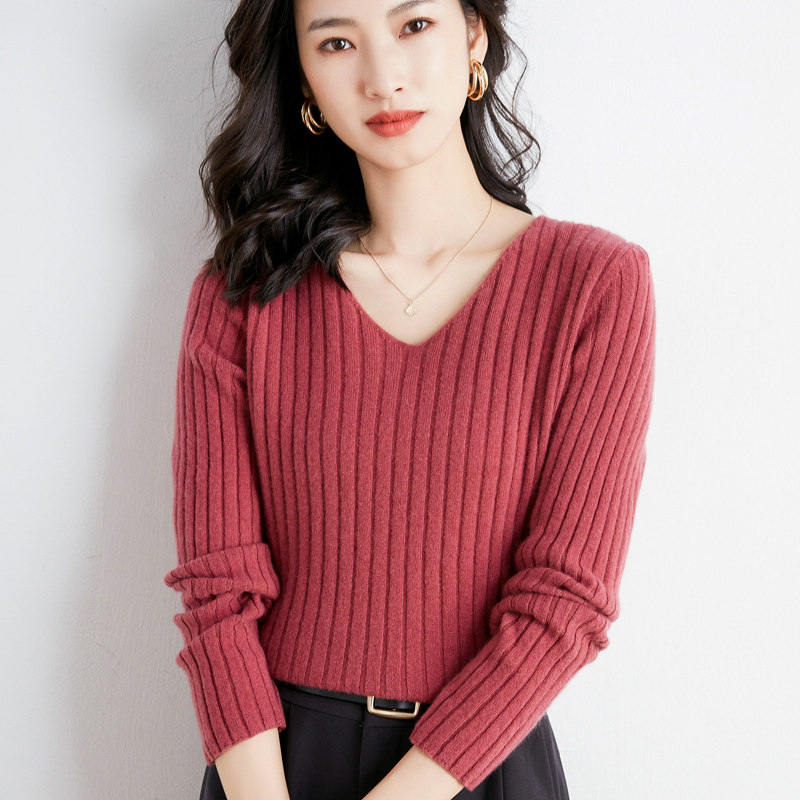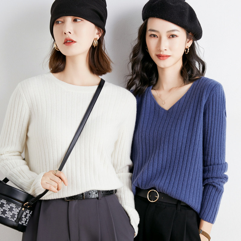 Демисезонный комплект, шерстяной трикотажный свитер, V-образный вырез
