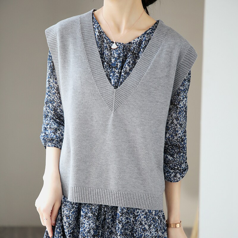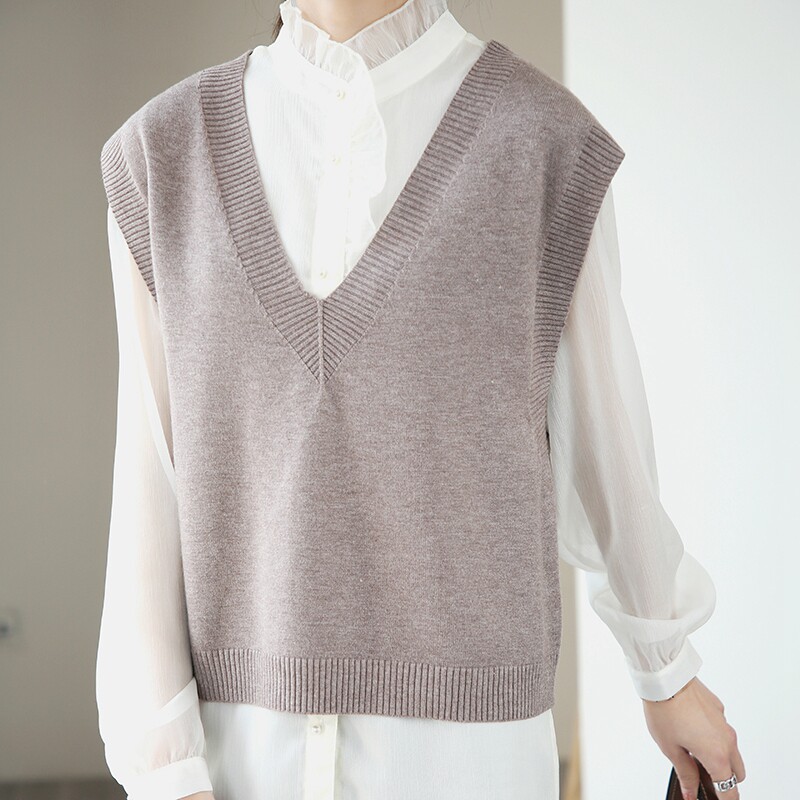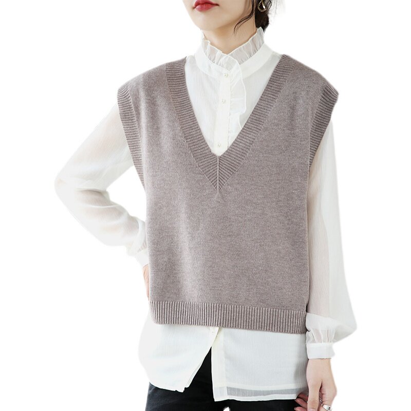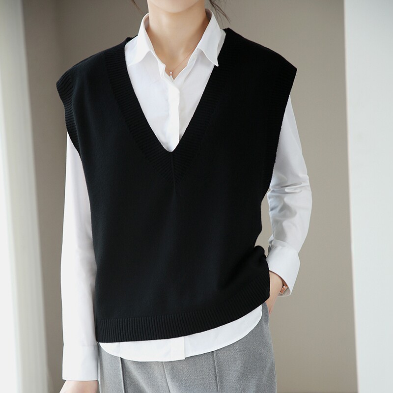Шерстяной жилет, короткая майка топ, черный свитер без рукавов, V-образный вырез, оверсайз