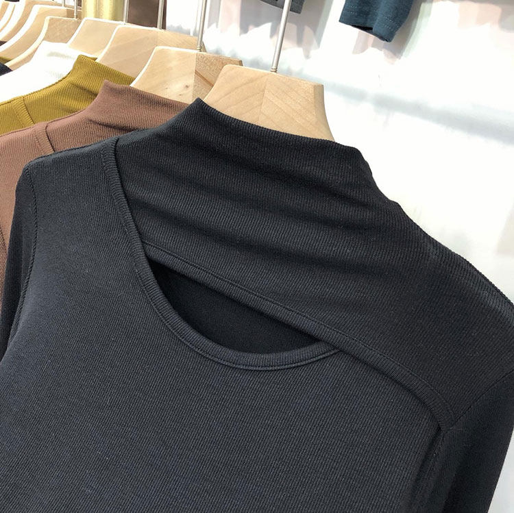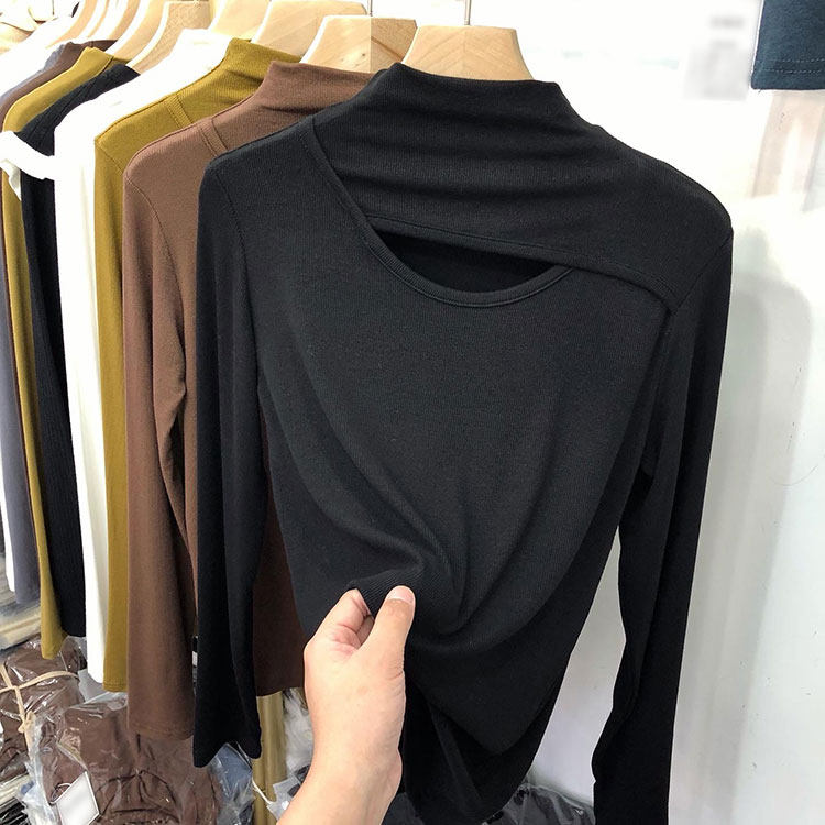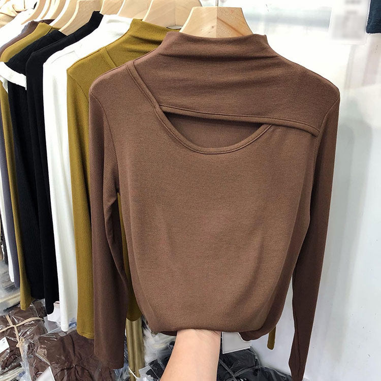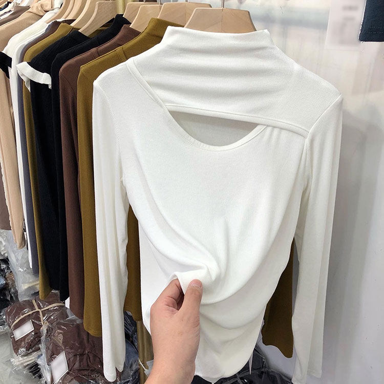 Трикотажный свитер, осенний приталенный базовый приятный телу лонгслив, высокий воротник