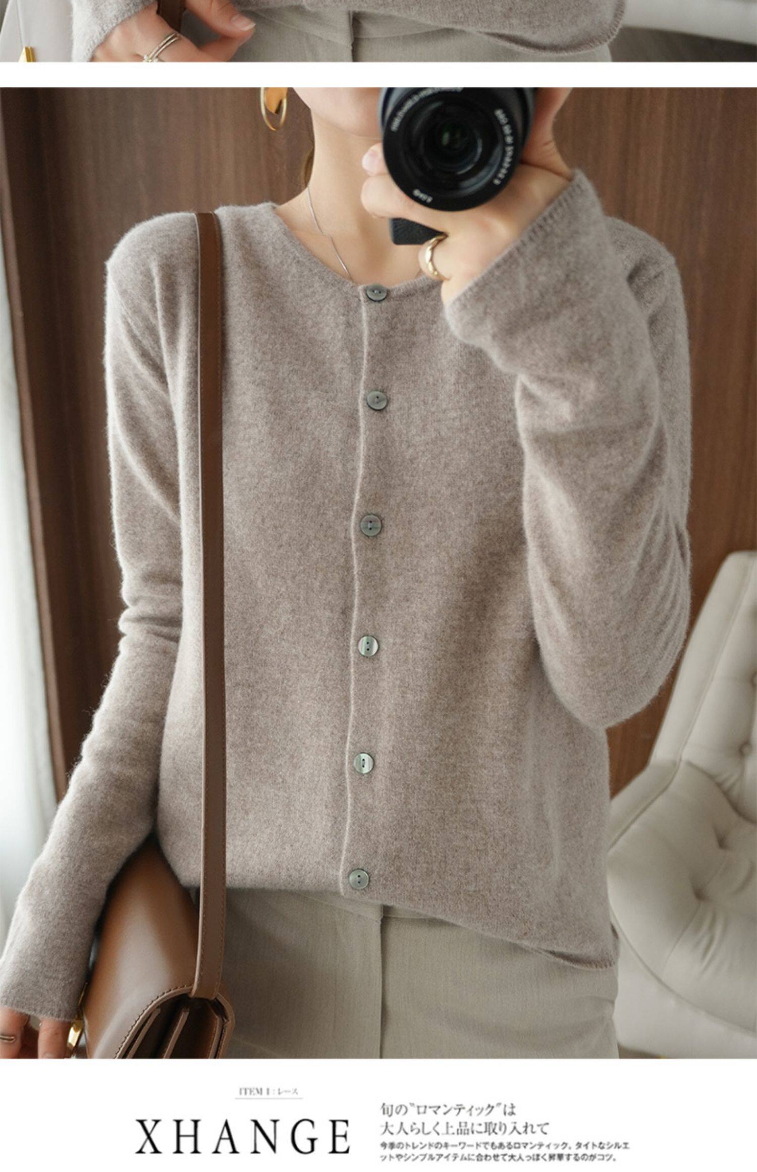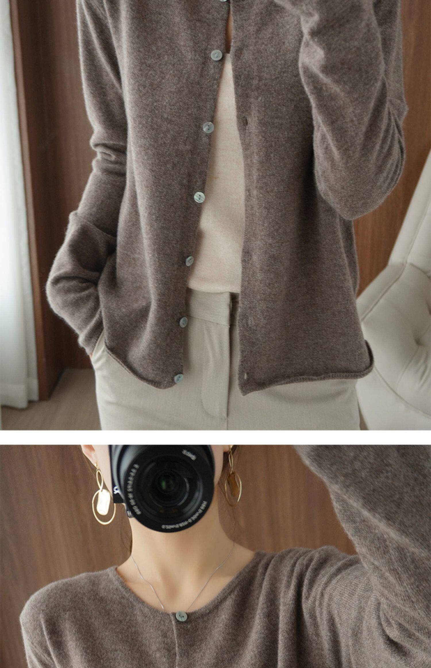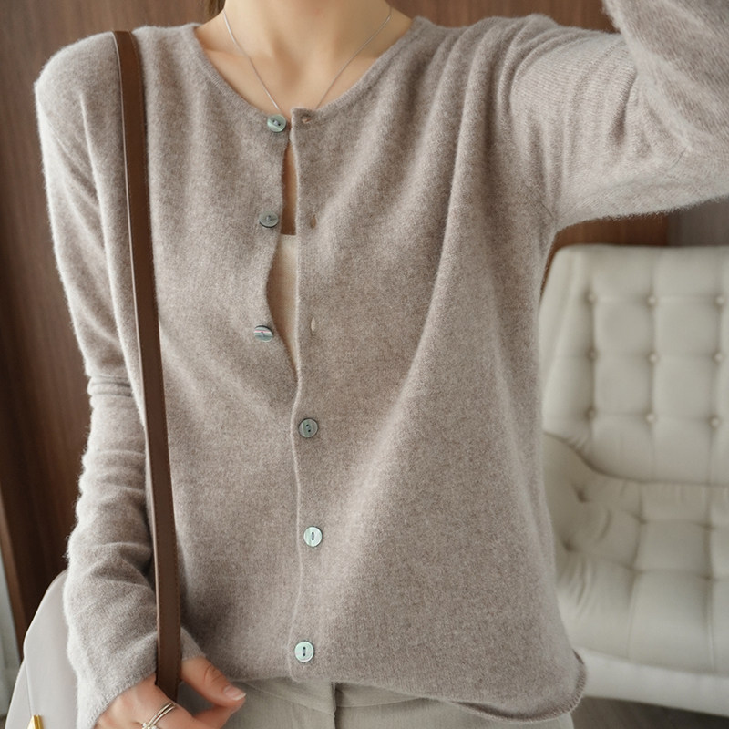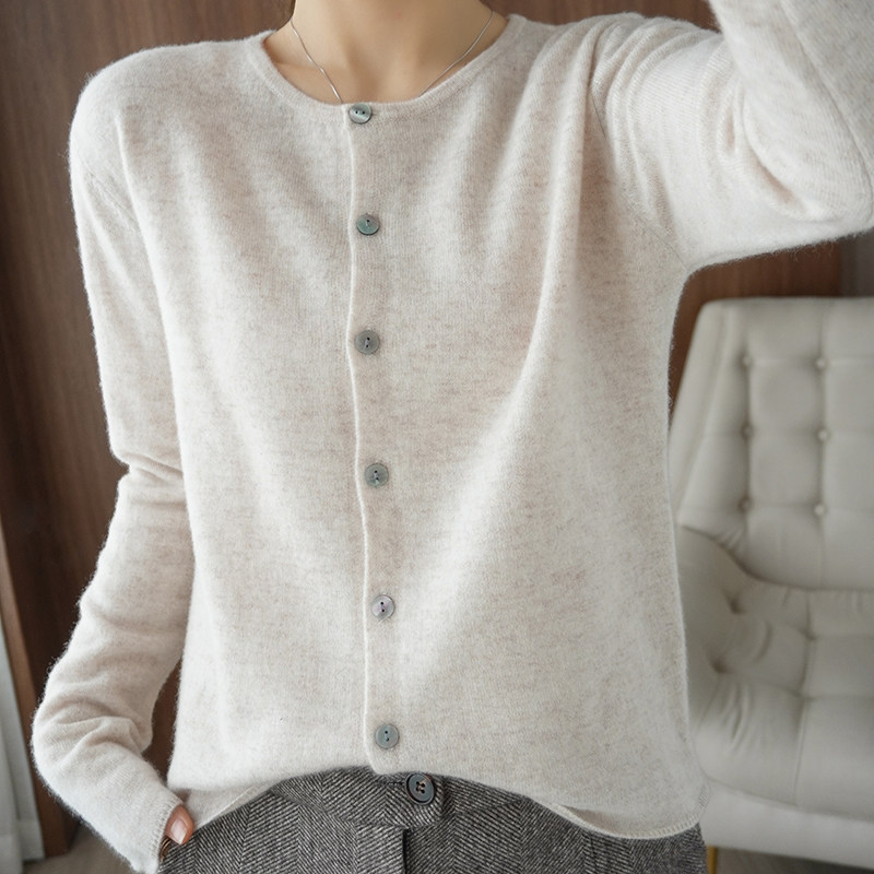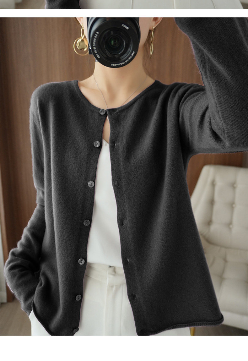 Кардиган, шерстяной осенний свитер, короткая куртка с круглым воротником, коллекция 2021