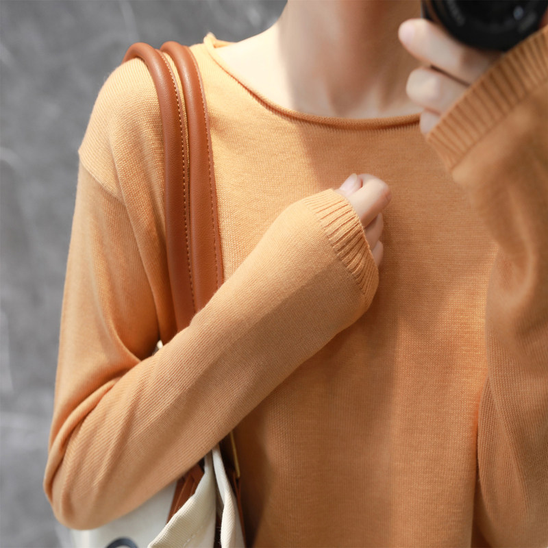 Лонгслив с круглым воротником, осенний демисезонный короткий приталенный трикотажный свитер, свободный крой, в корейском стиле