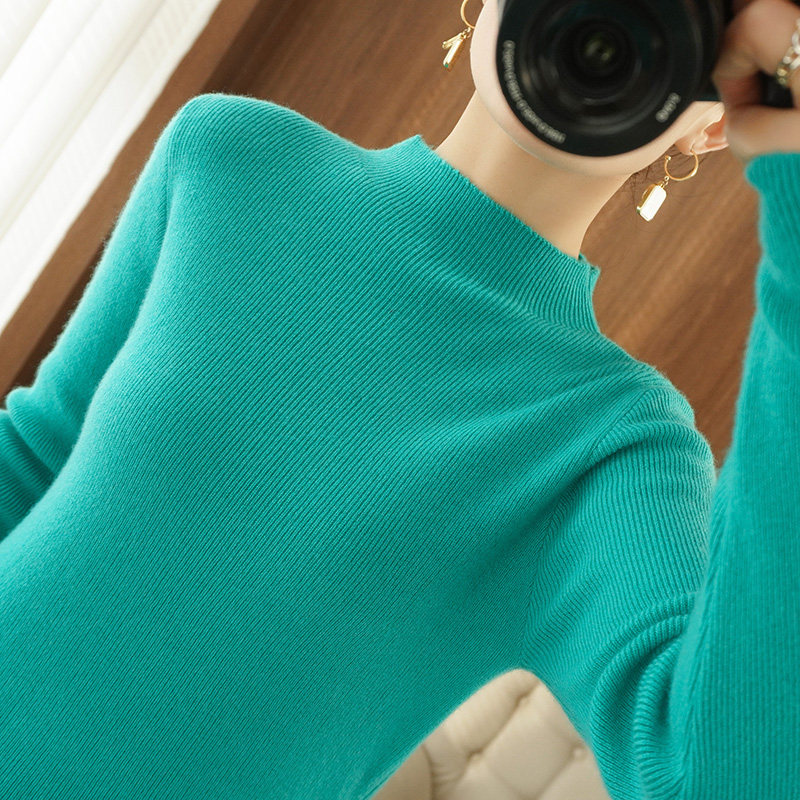 Демисезонный шерстяной свитер, трикотажный короткий лонгслив, коллекция 2021, высокий воротник, с рукавом