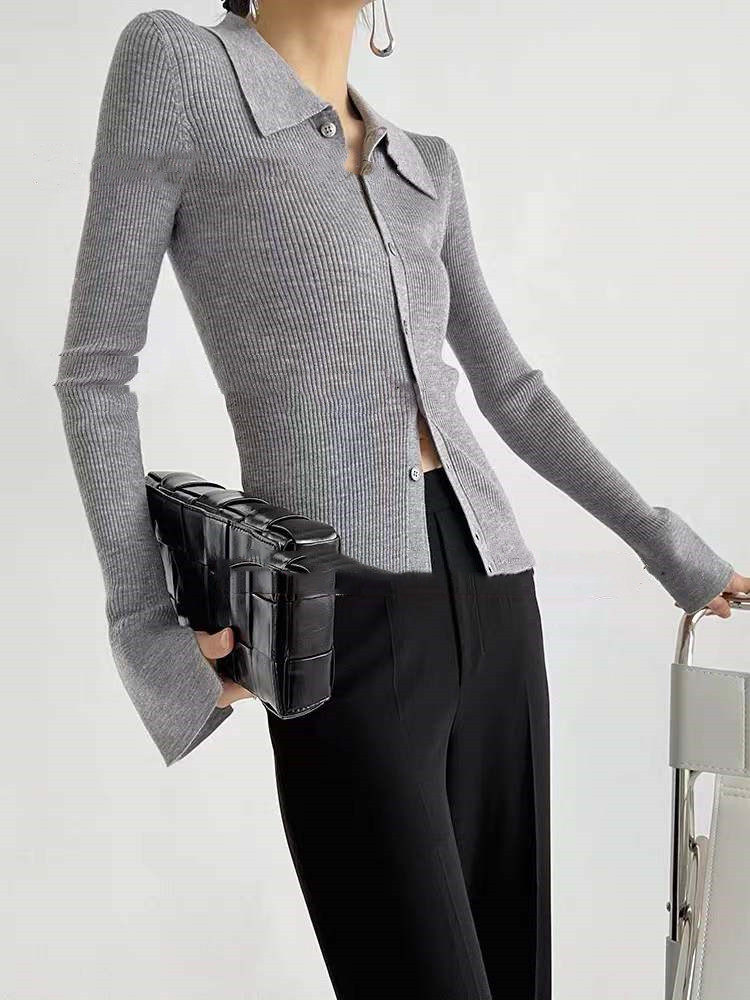Ретро шерстяной трикотажный приталенный кардиган, базовый свитер, яркий броский стиль