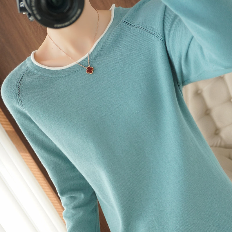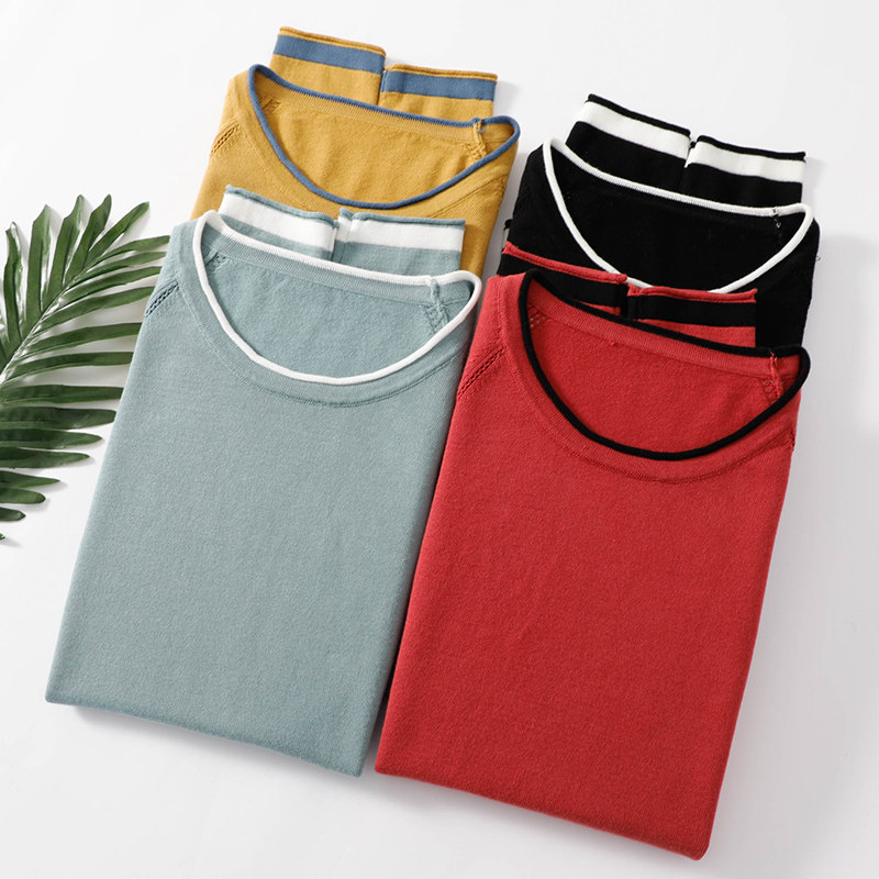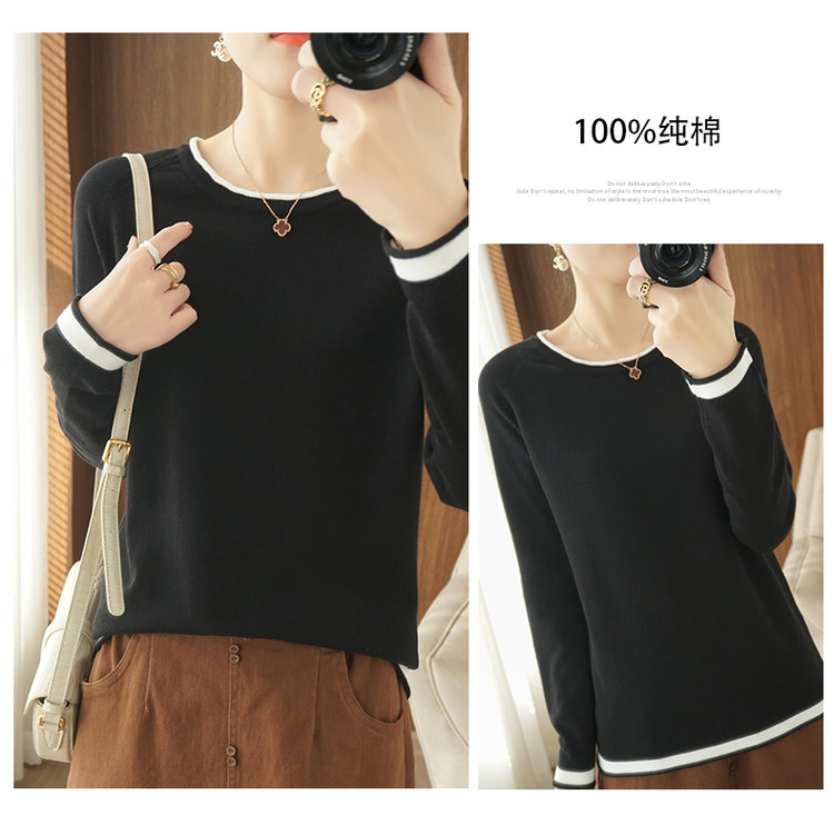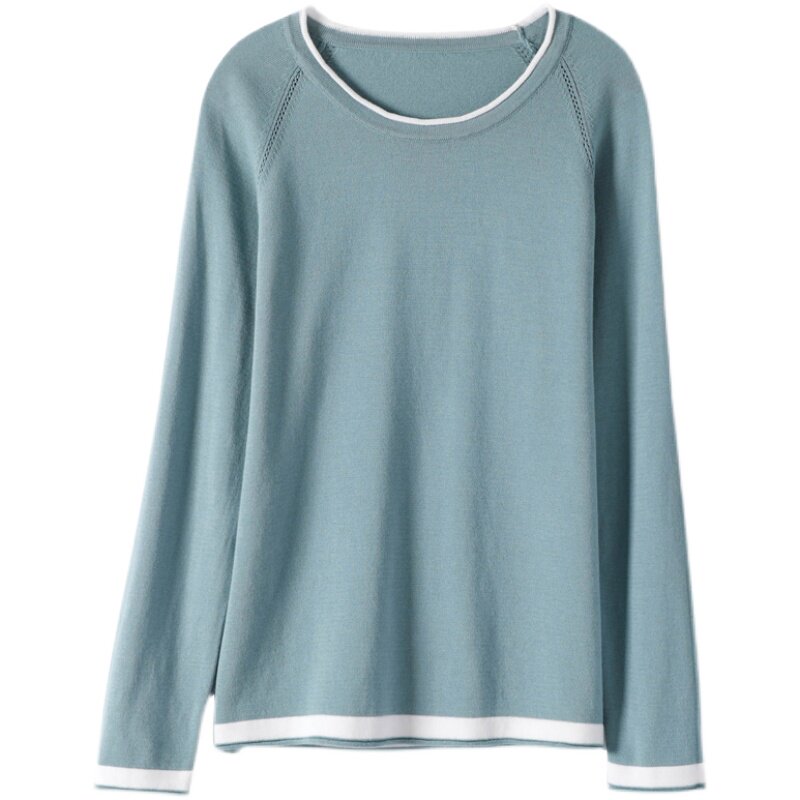 Хлопковый трикотажный весенний свитер с круглым воротником, оверсайз, коллекция 2021