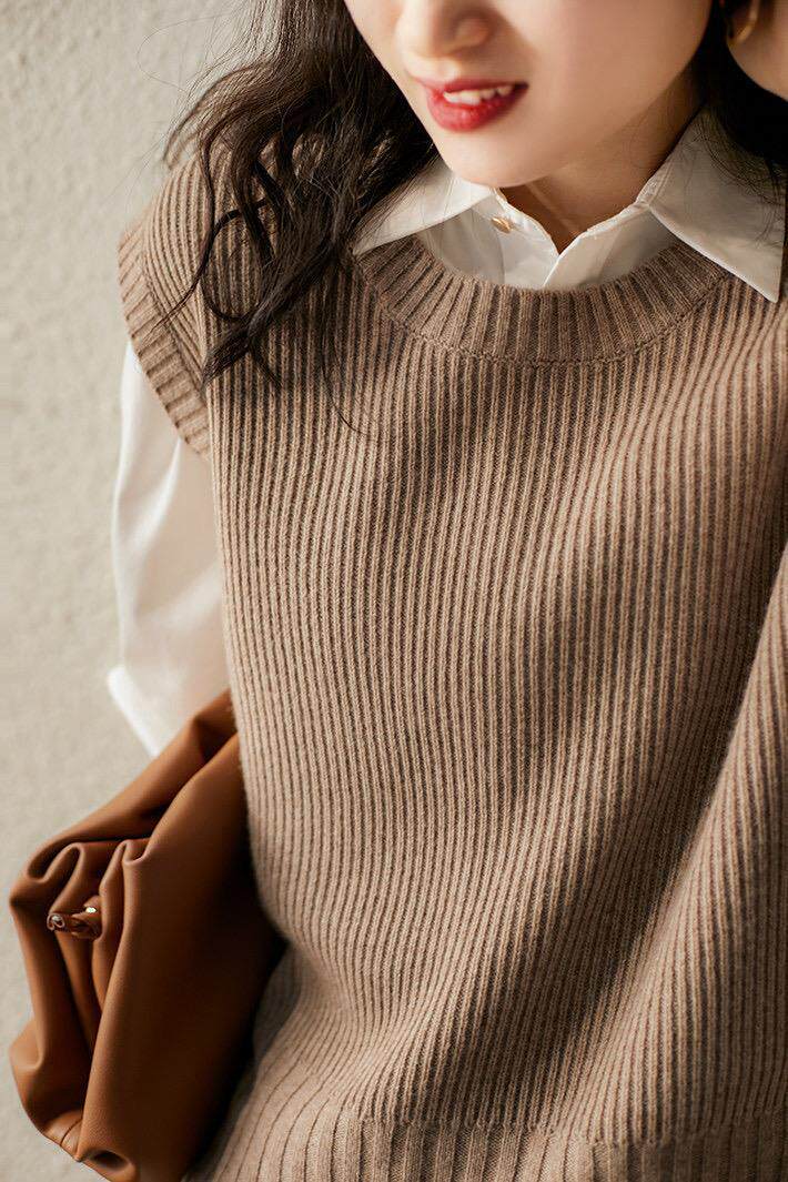 Жилет, осенний короткий шерстяной свитер для отдыха без рукавов, коллекция 2021