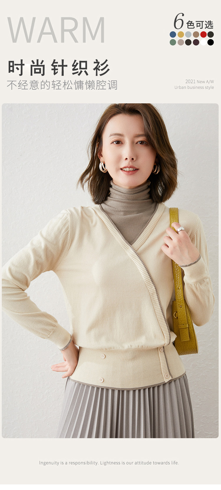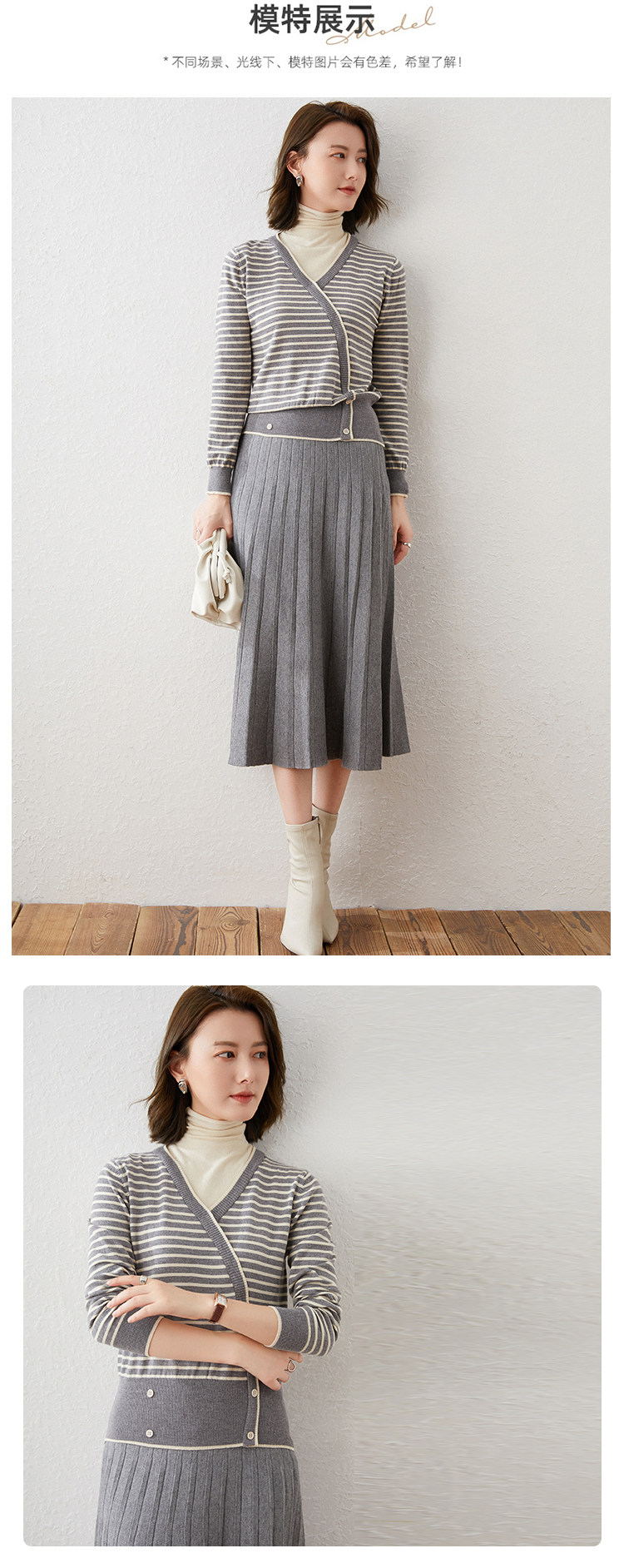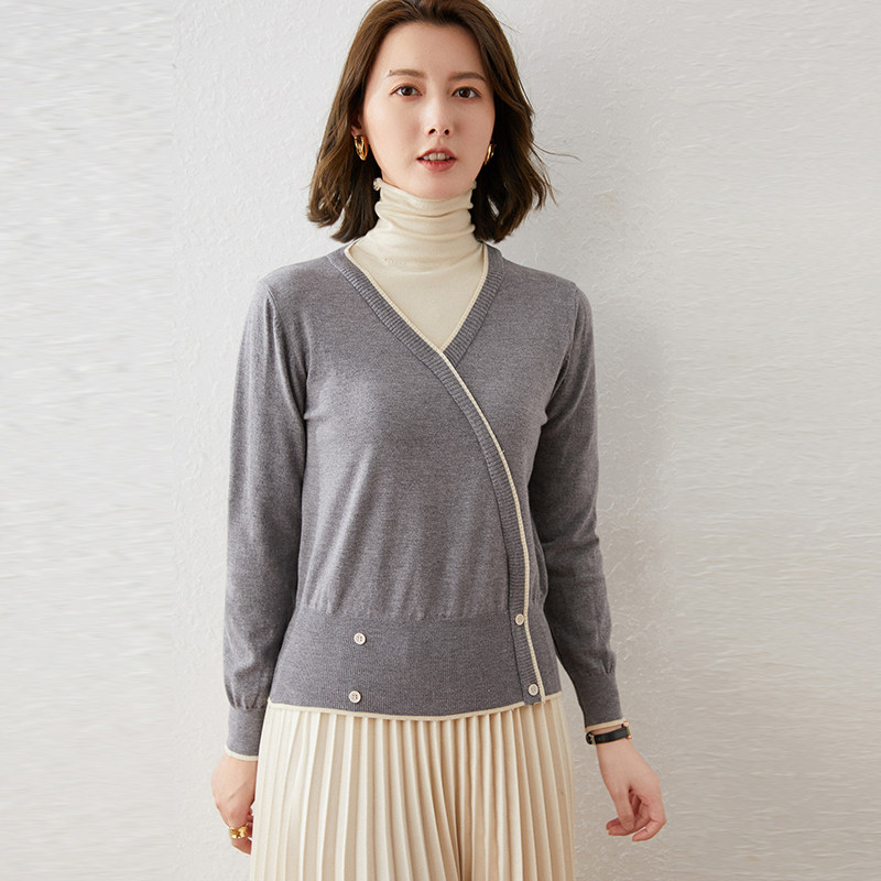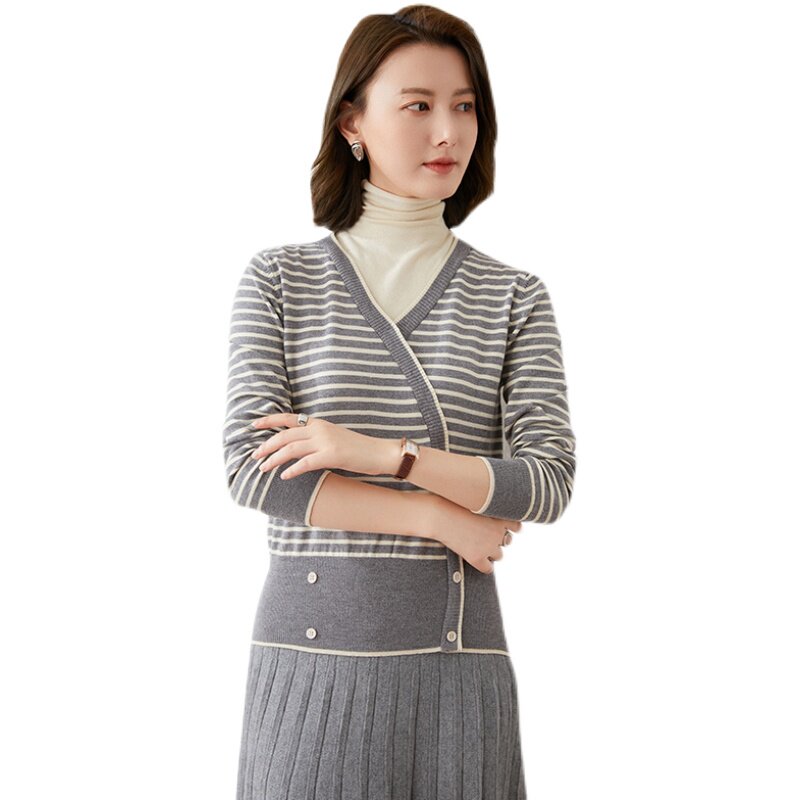 Трикотажный демисезонный шерстяной свитер, комплект, европейский стиль