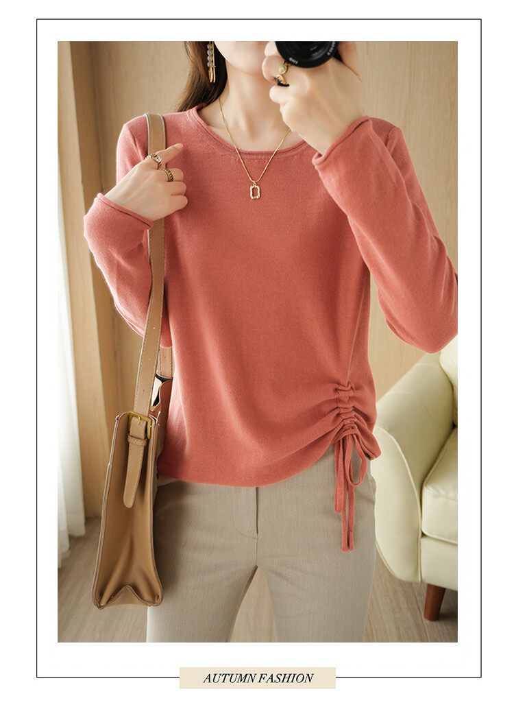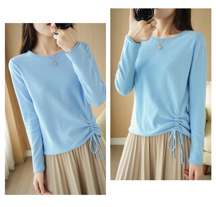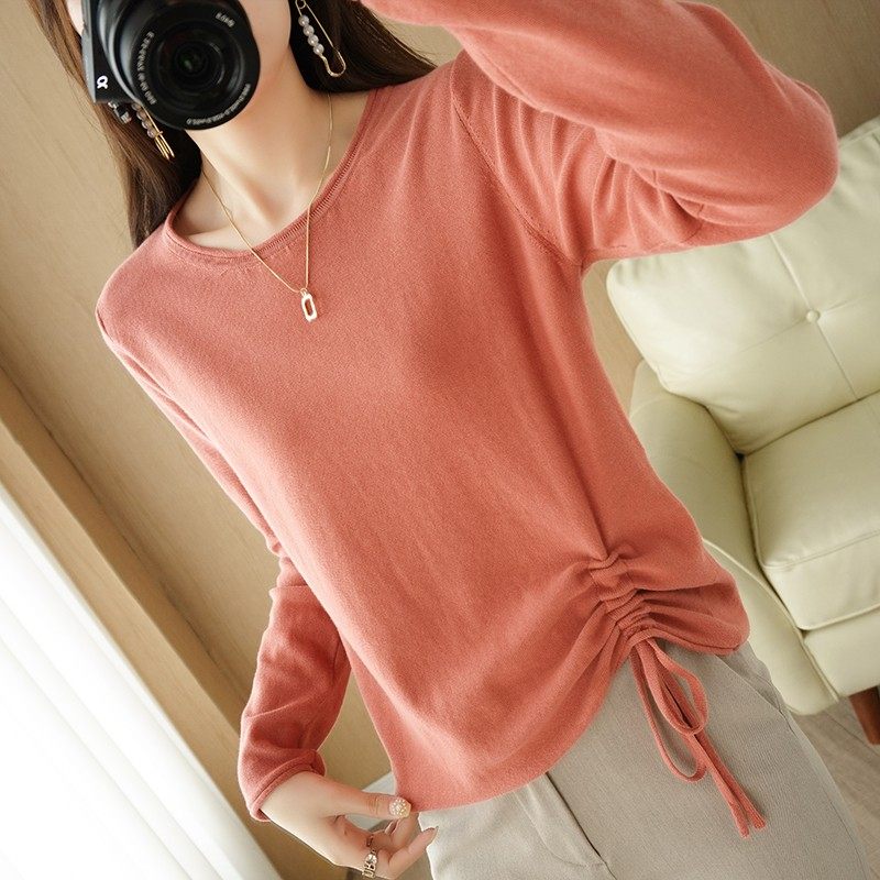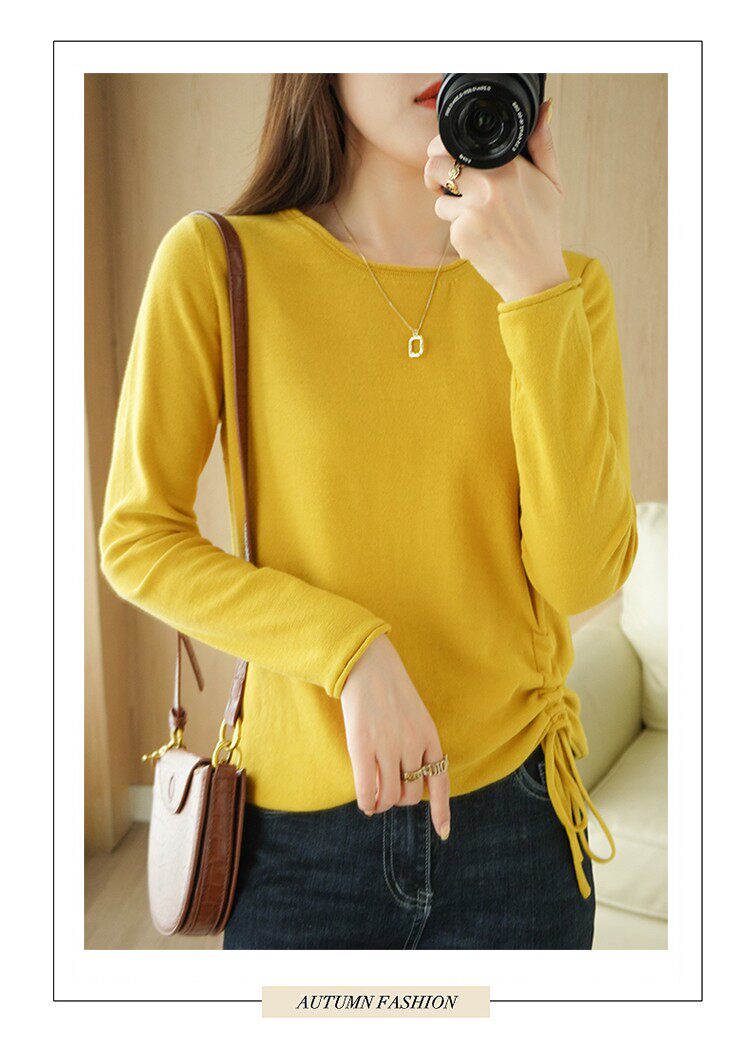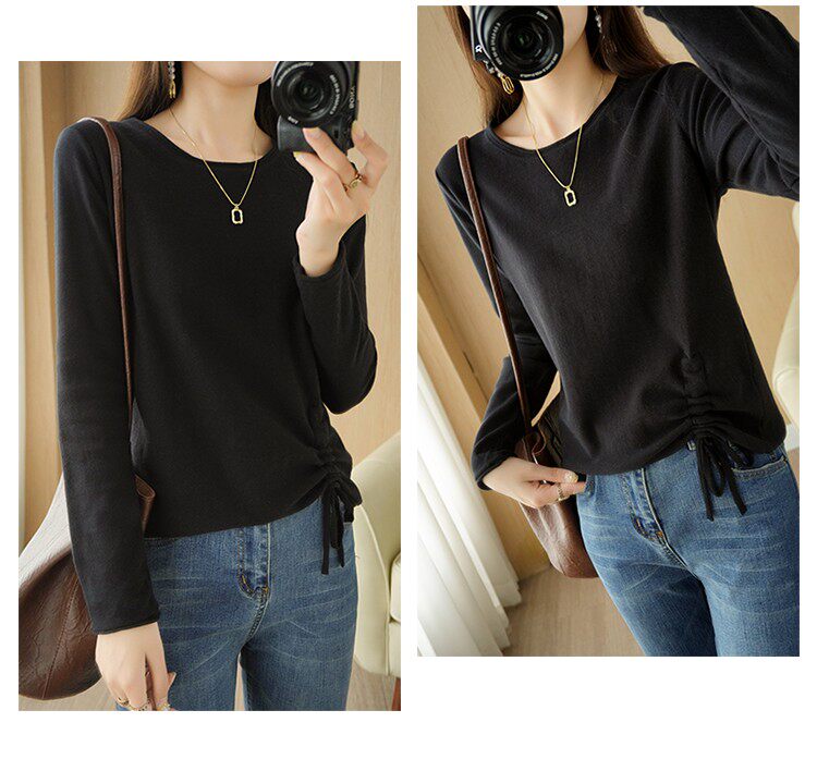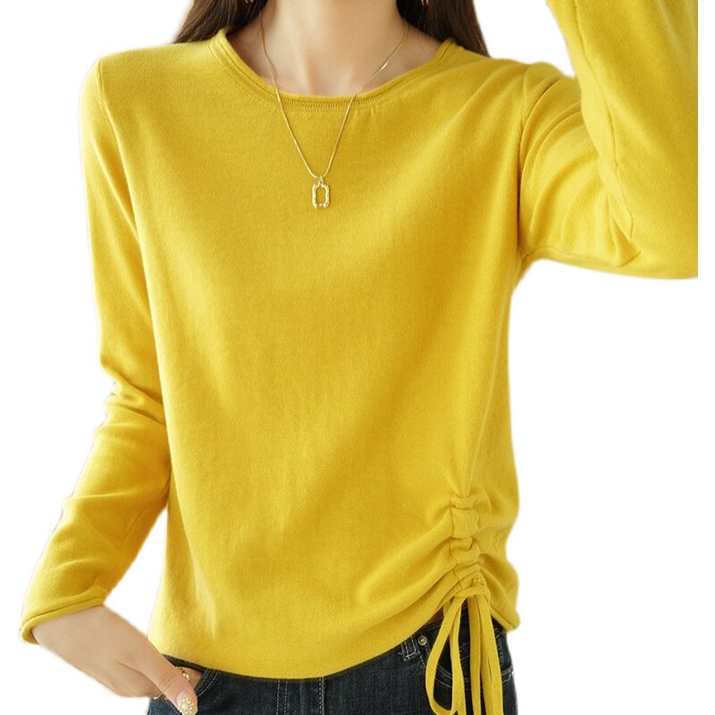 Хлопковый осенний свитер, дизайнерский лонгслив, 100% хлопок, на шнурках, в корейском стиле, тренд сезона