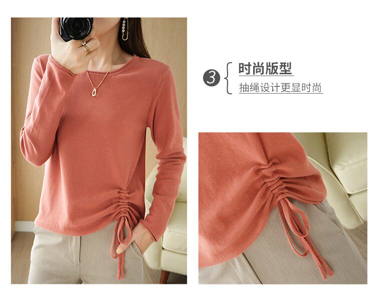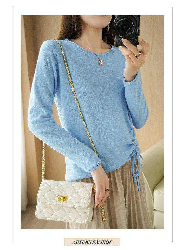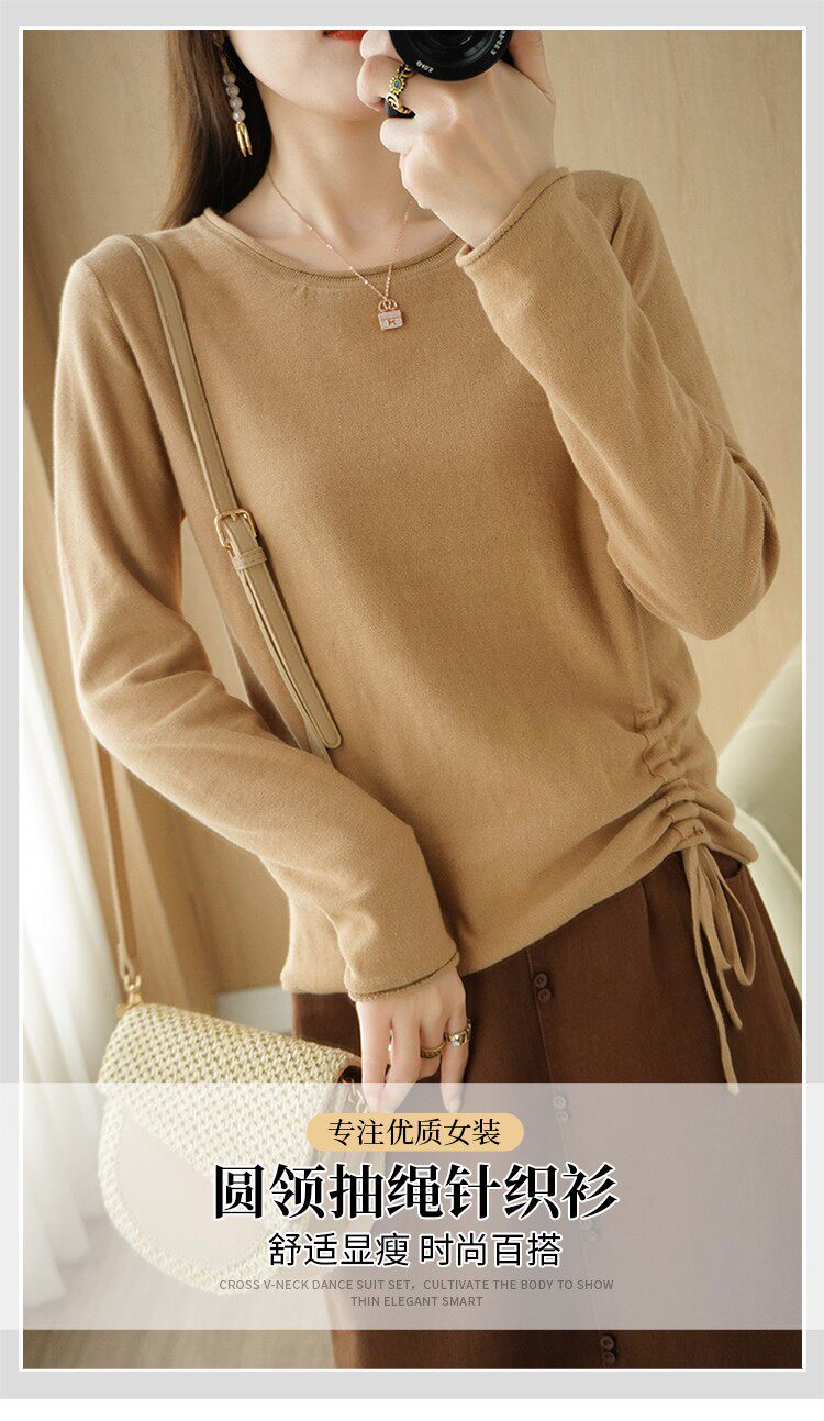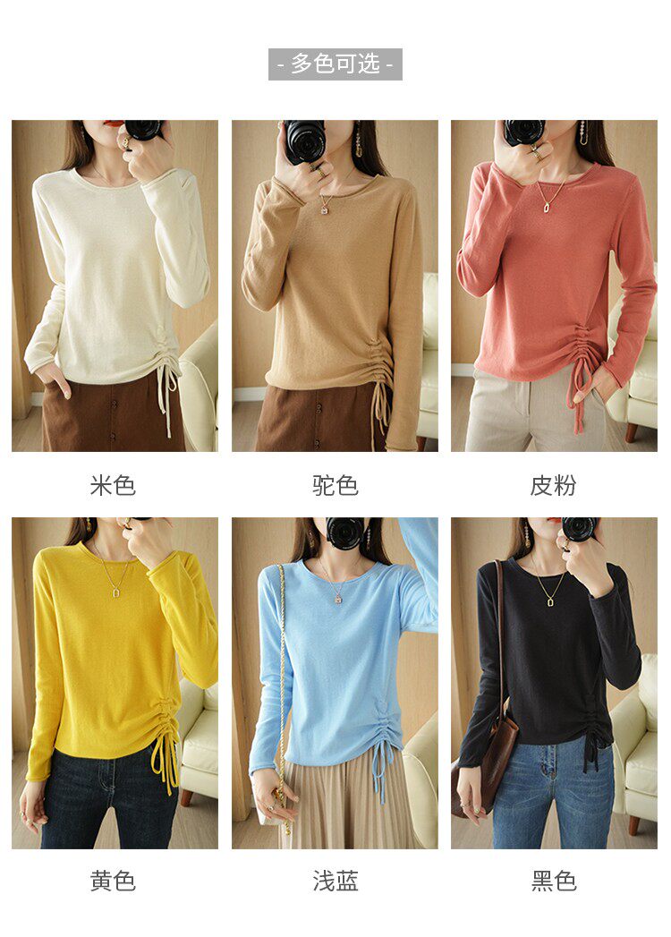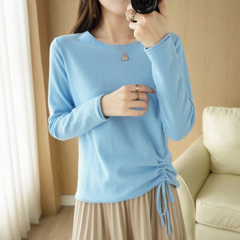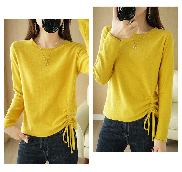 Хлопковый осенний свитер, дизайнерский лонгслив, 100% хлопок, на шнурках, в корейском стиле, тренд сезона