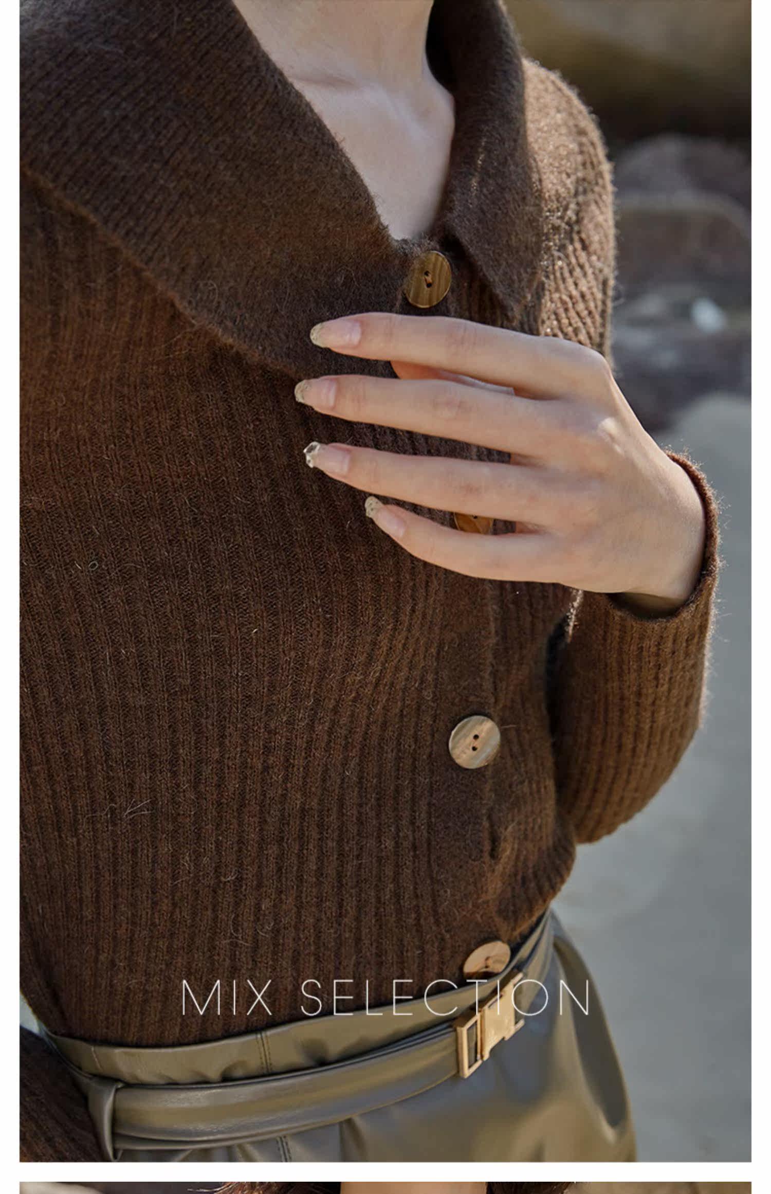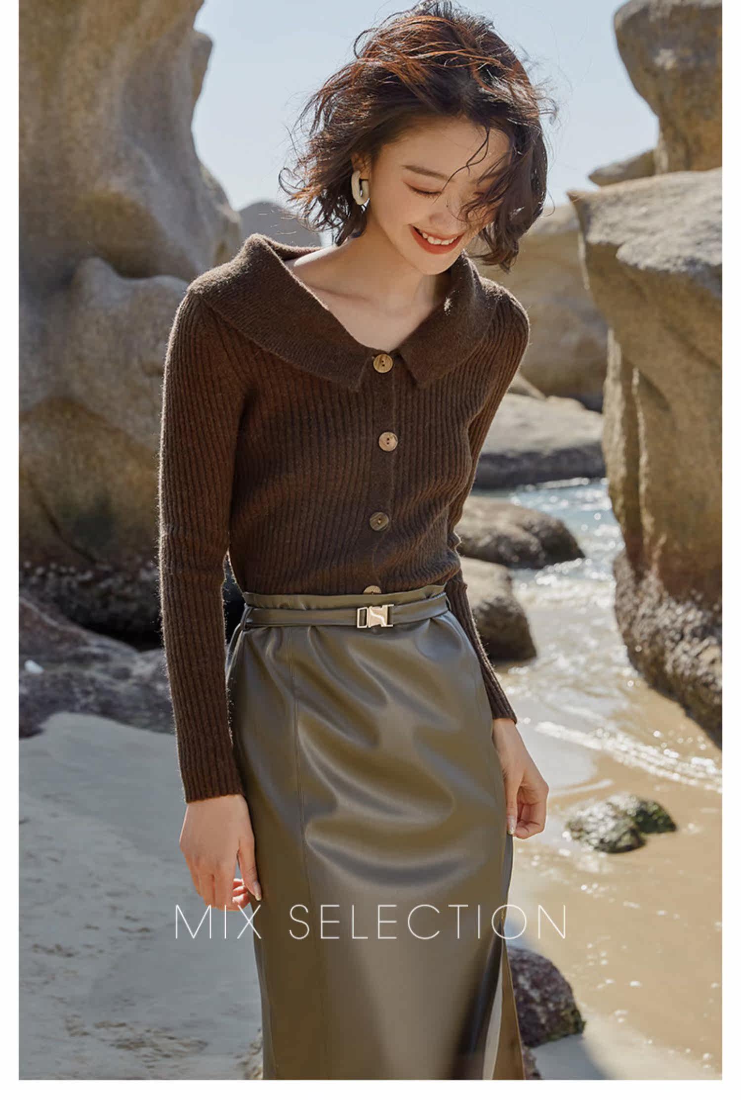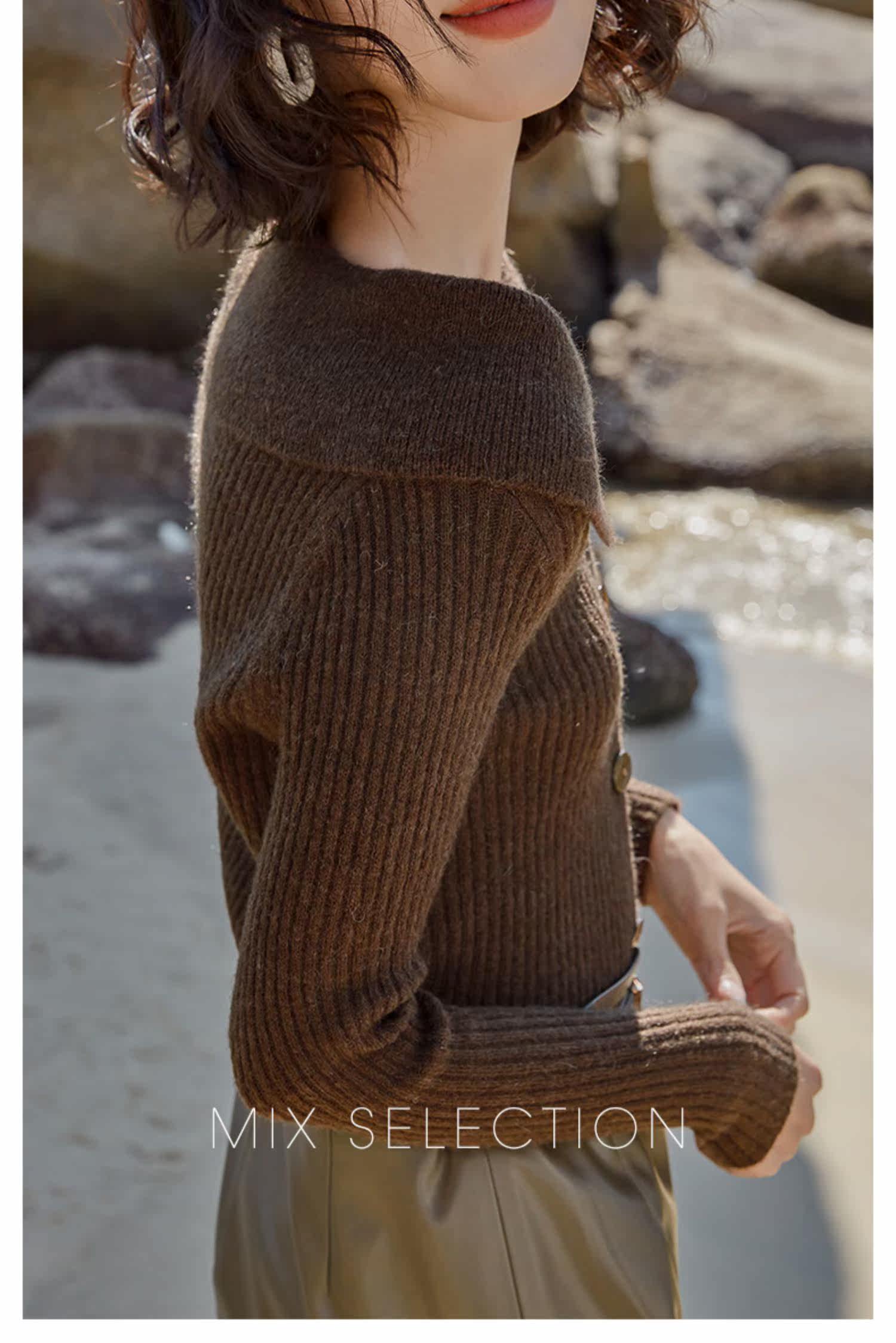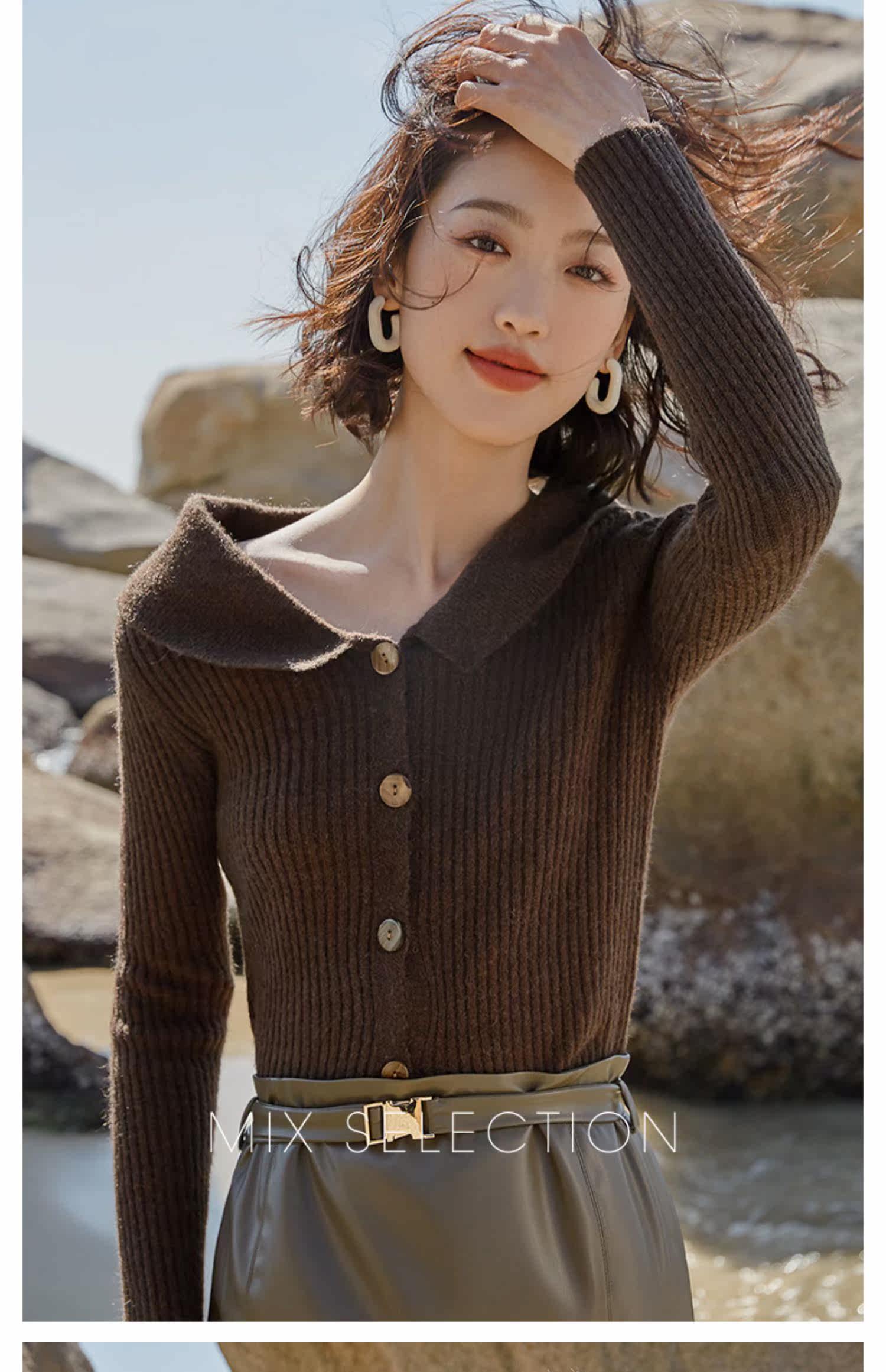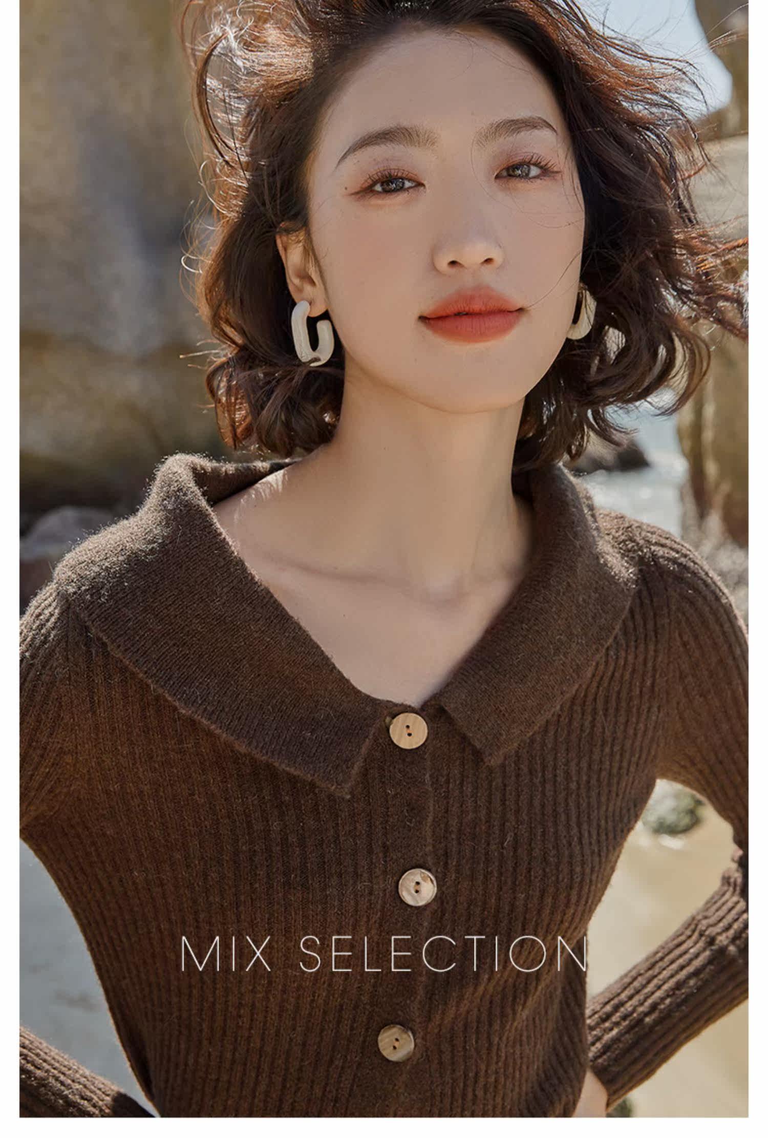 Выбор смешивания | Retro Rettude Lititude Girl Girl Brown Temperament носит свитер