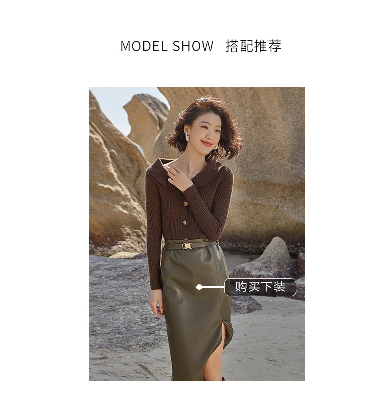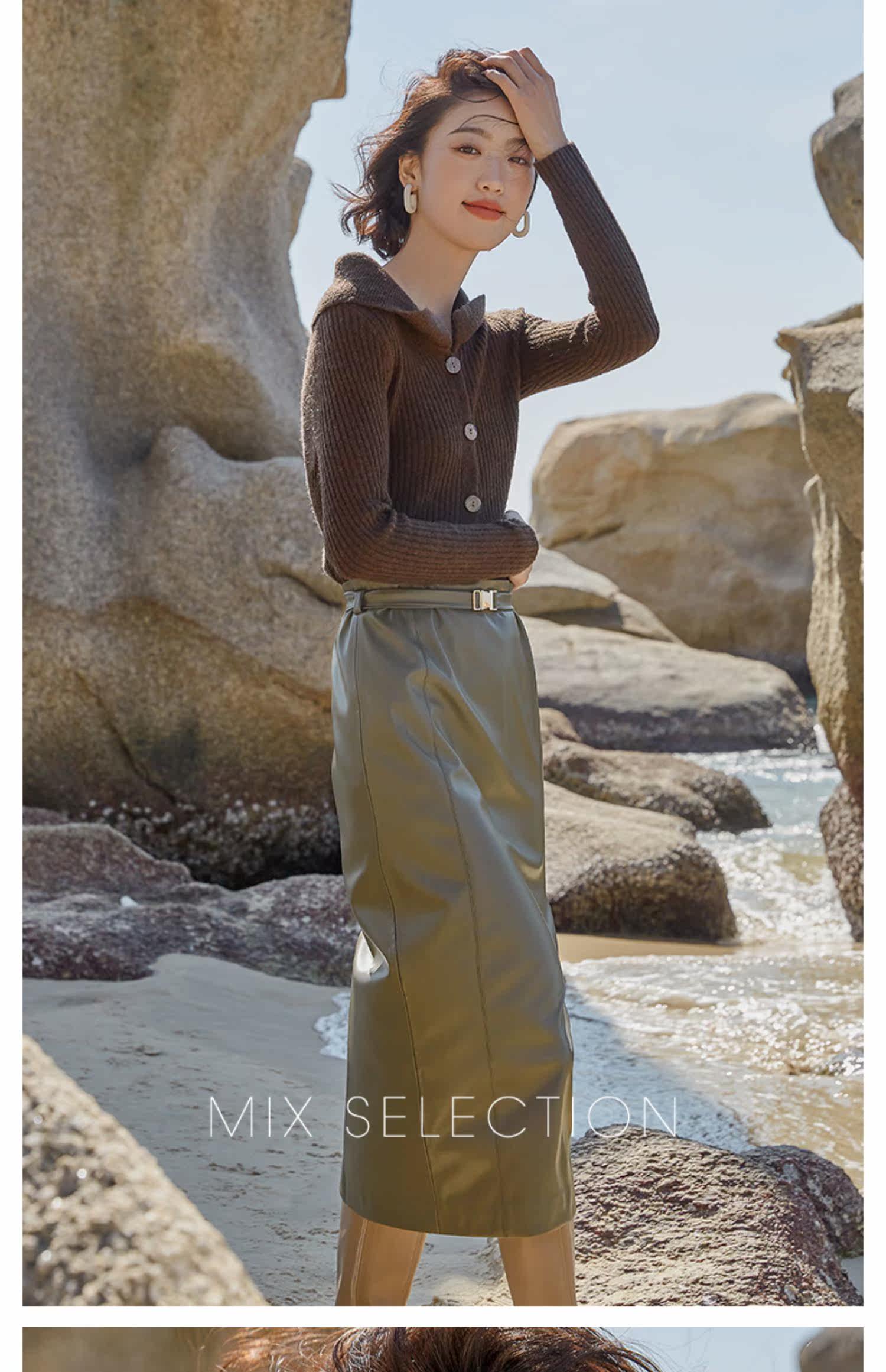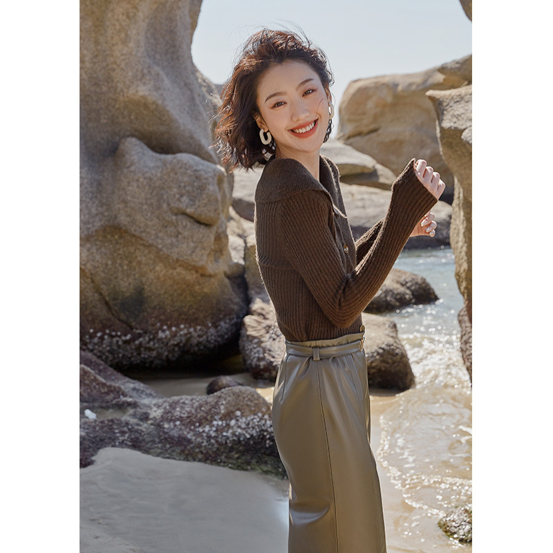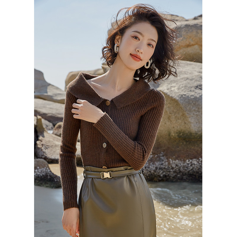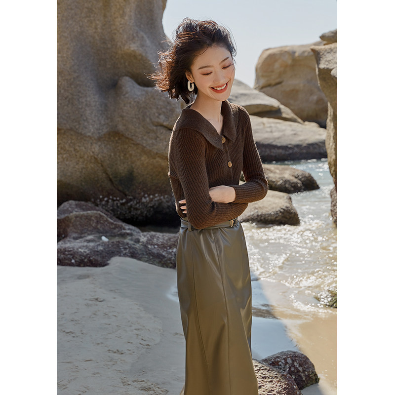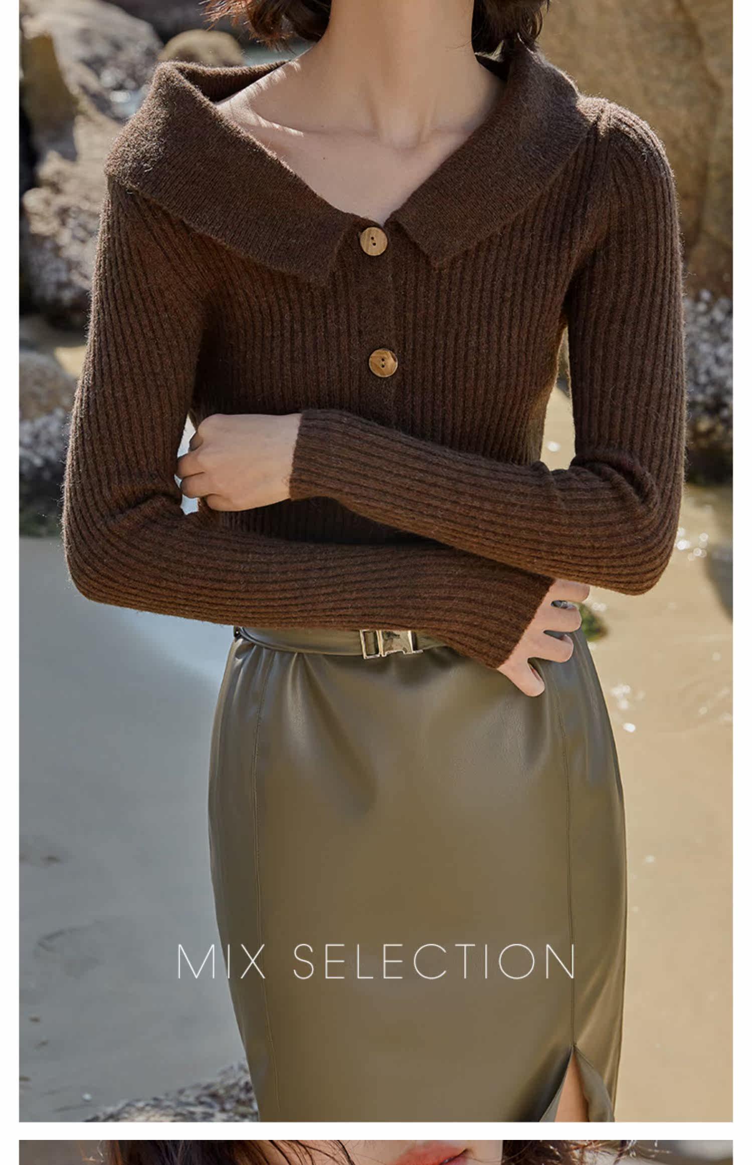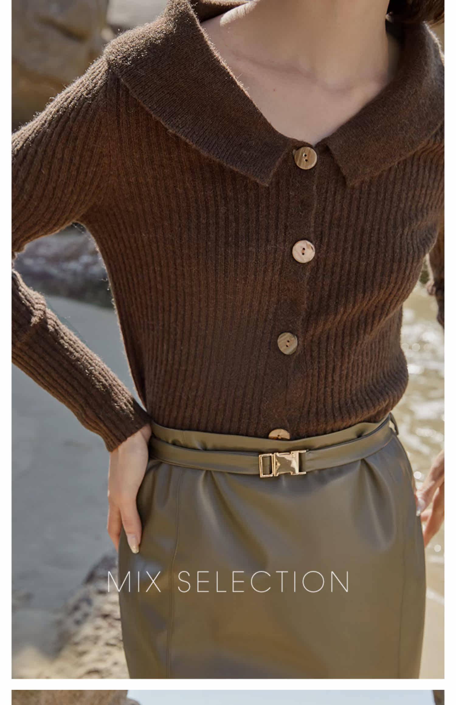 Выбор смешивания | Retro Rettude Lititude Girl Girl Brown Temperament носит свитер