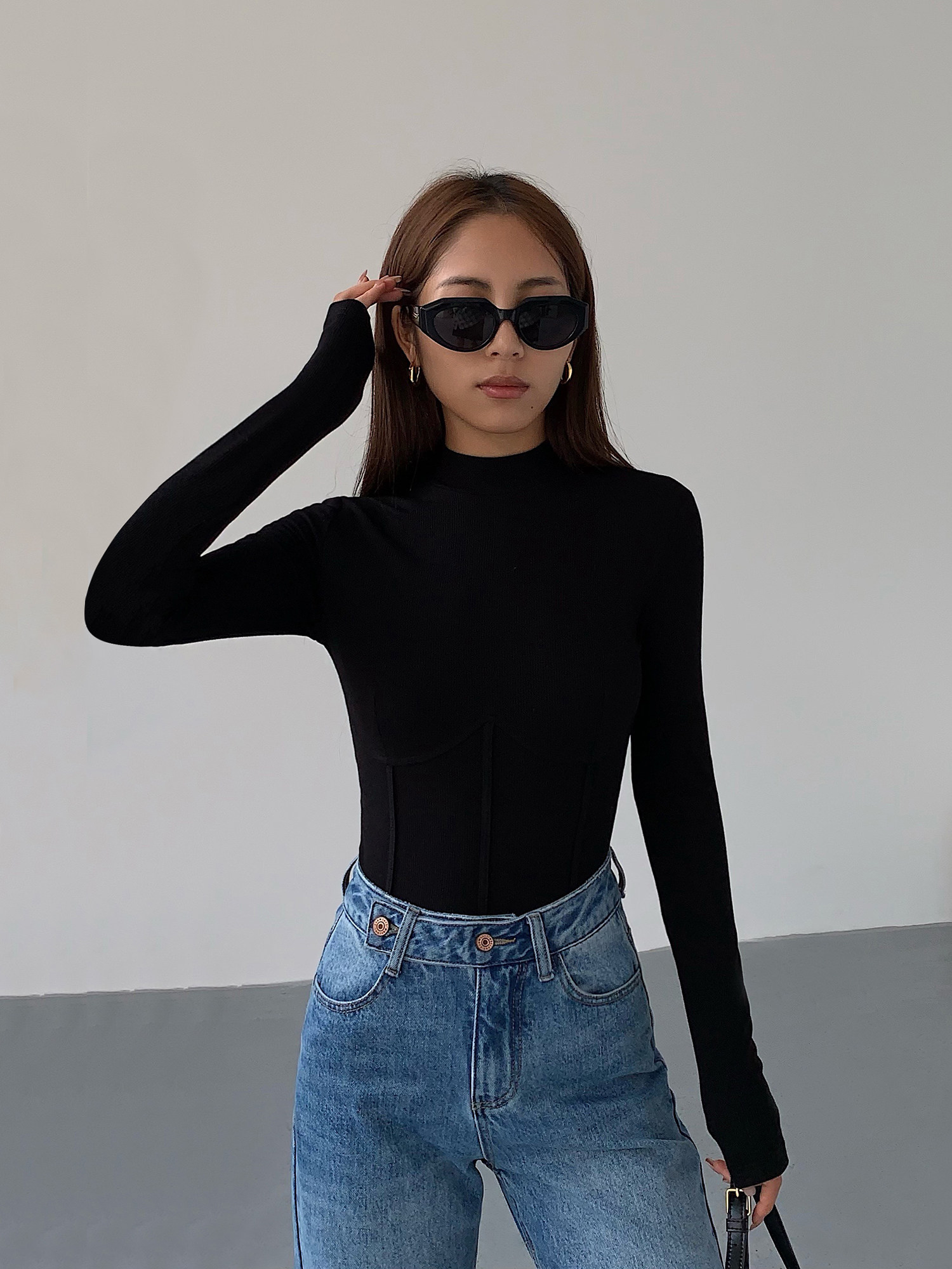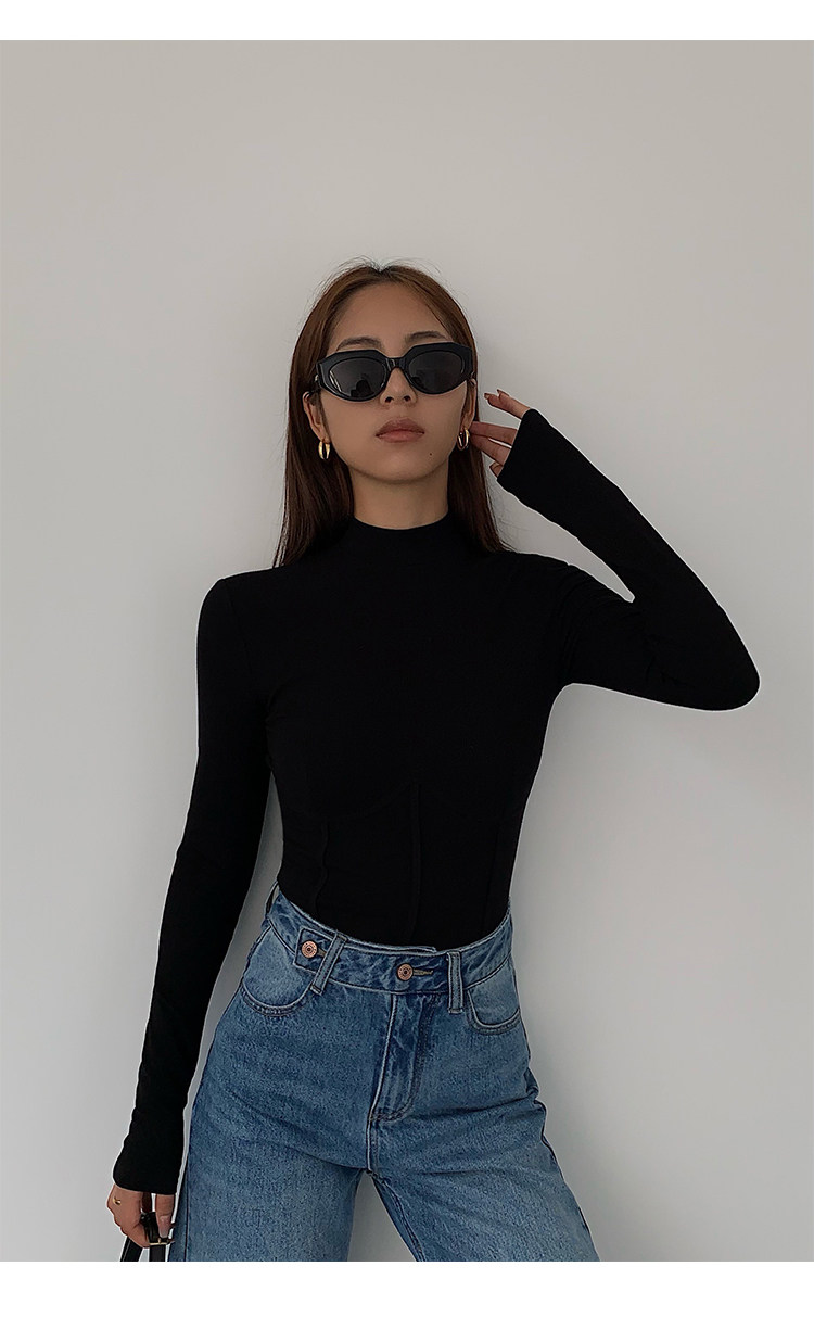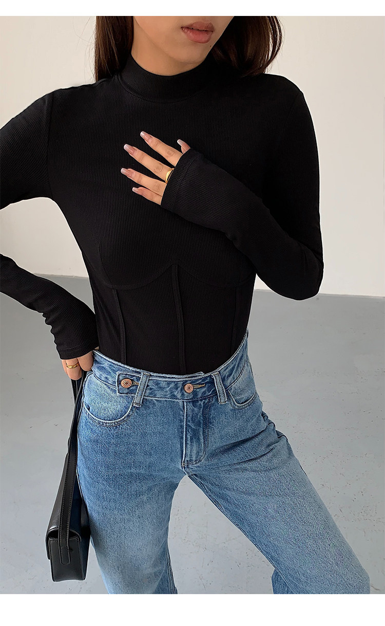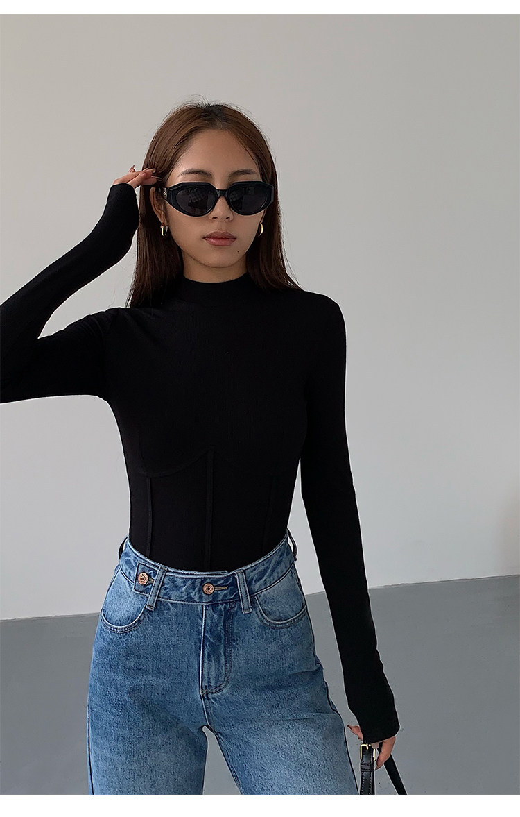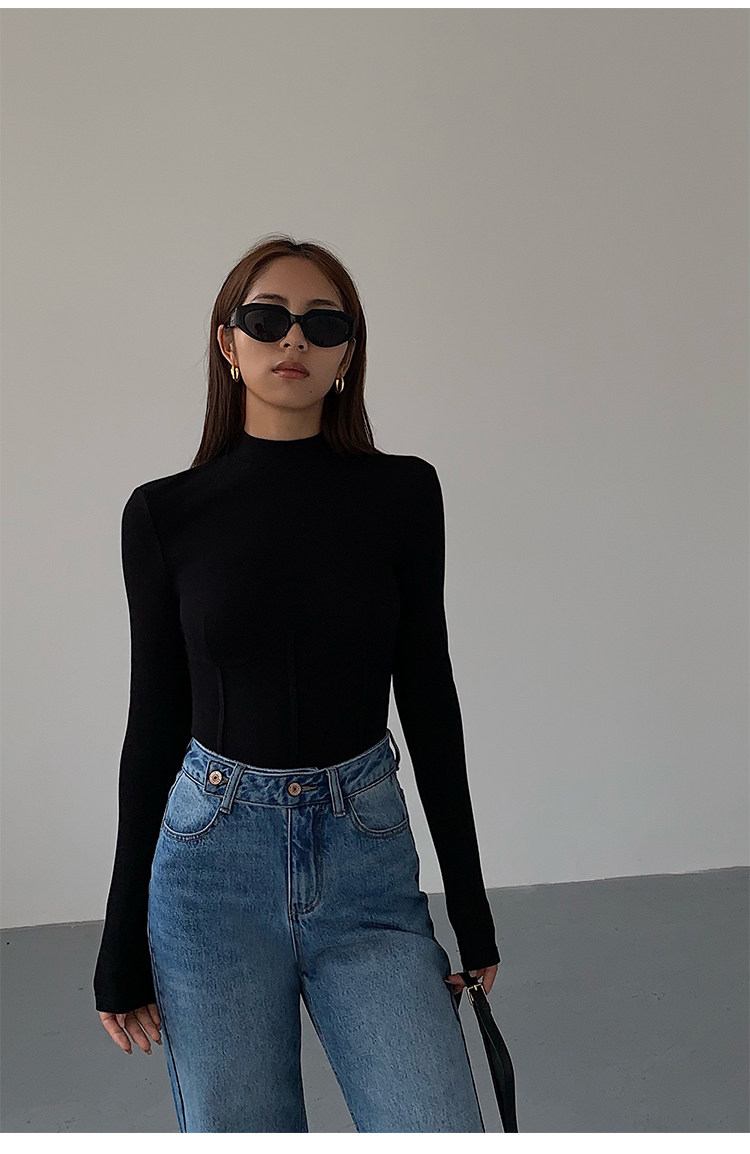 Нева Ху Половина водолазки Черная вязаная базовая рубашка для женщин 2022 Новый тонкий вариант.