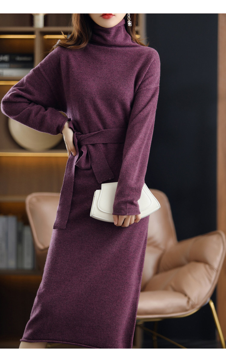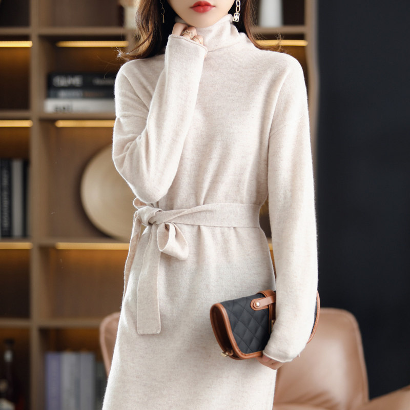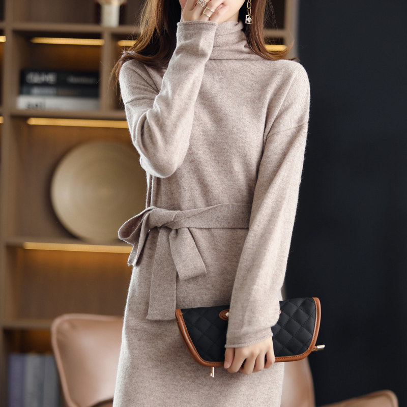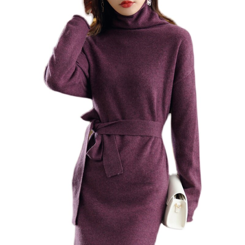 Демисезонное шерстяное платье, длинный трикотажный свитер, шерстяная длинная юбка, коллекция 2021, свободный крой