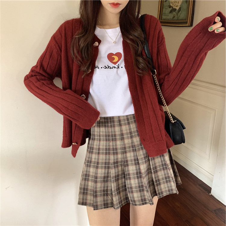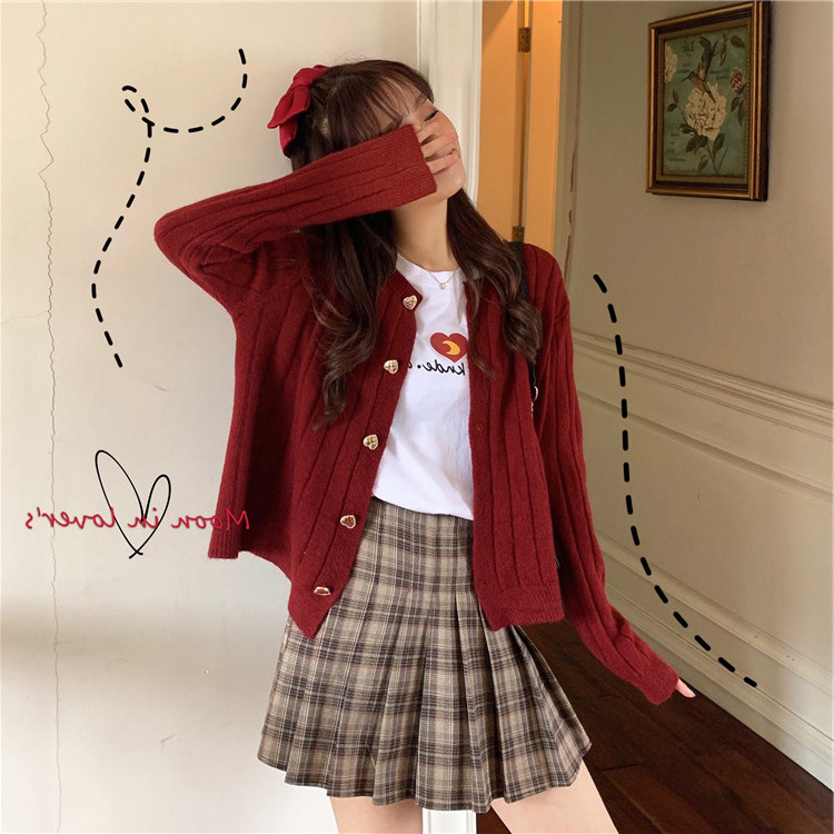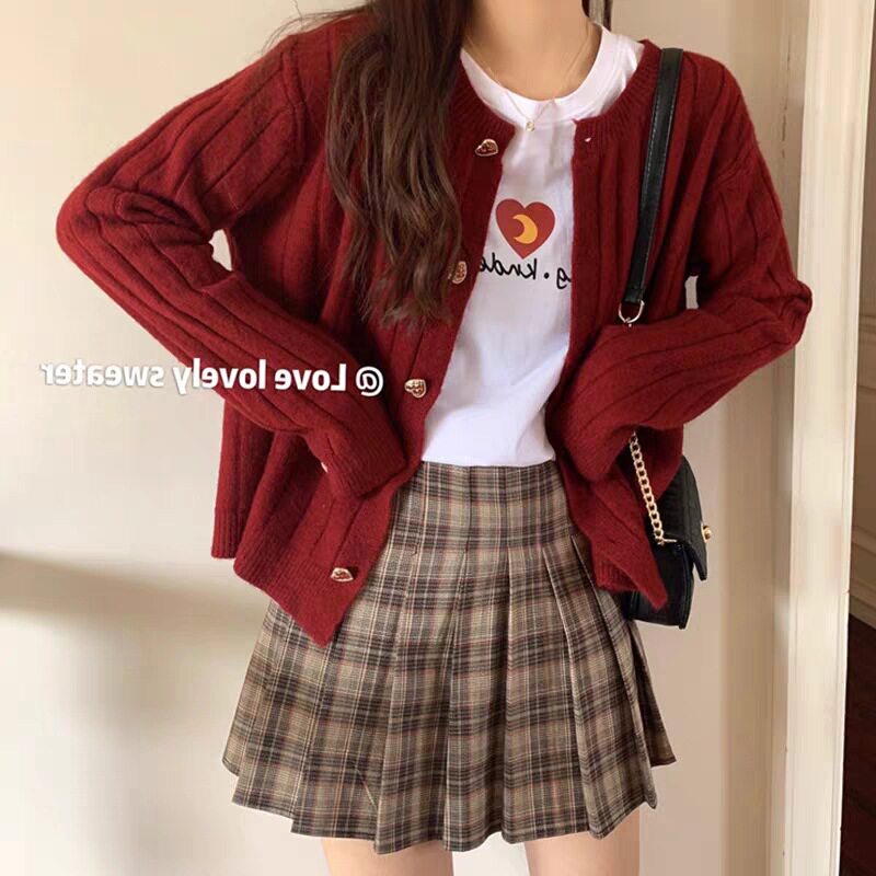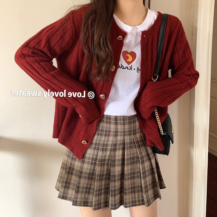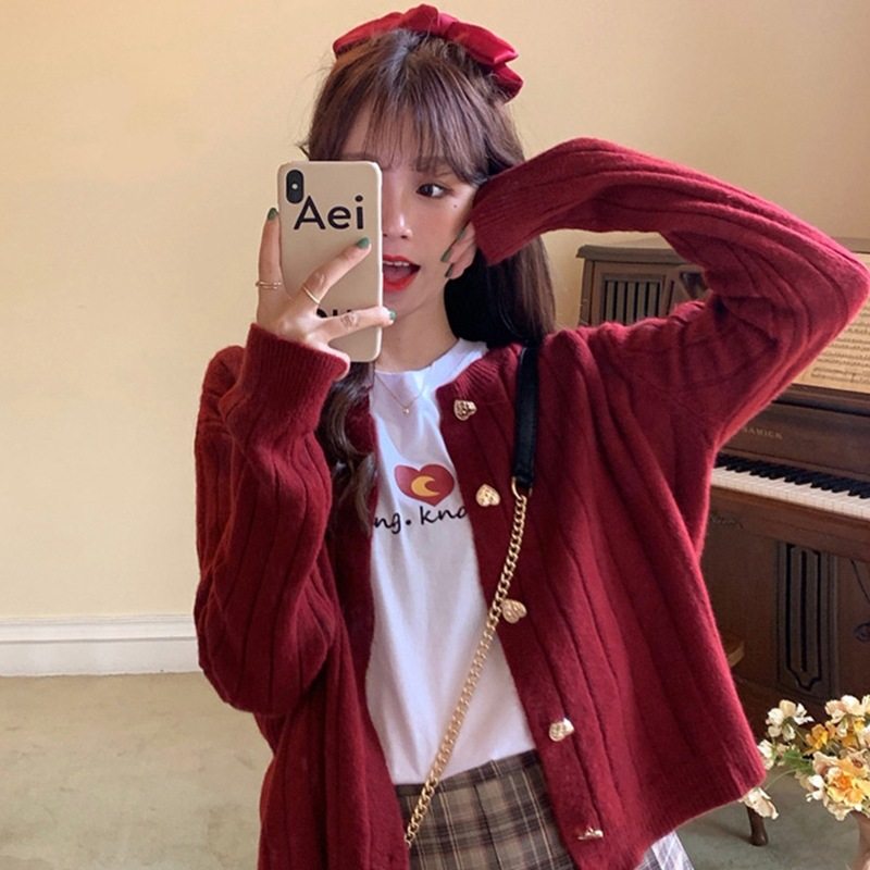 Красный свитер, осенний трикотажный кардиган, оверсайз, в стиле Шанель