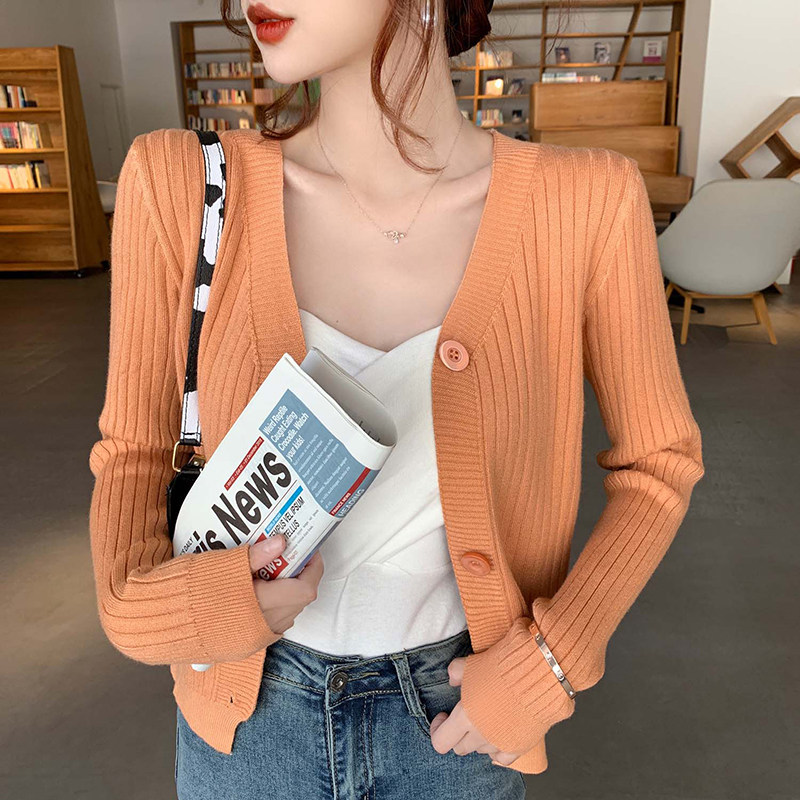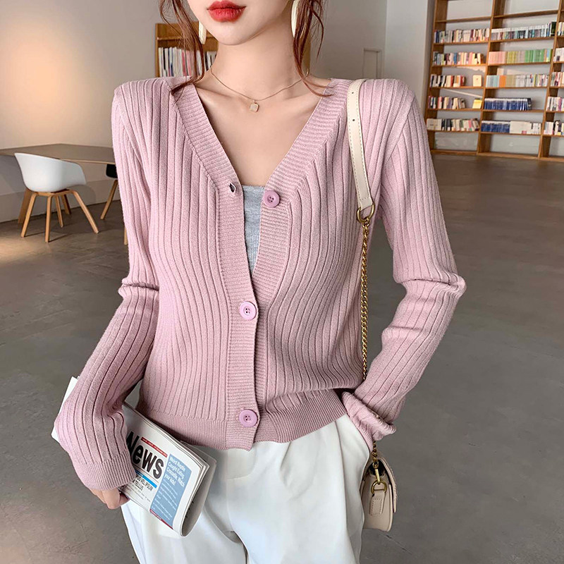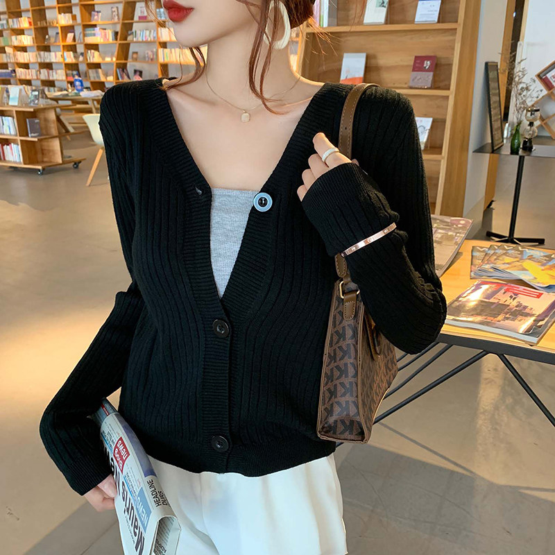 Весенний демисезонный кардиган, свитер, куртка, 2023, V-образный вырез, по фигуре, облегающий крой, популярно в интернете, в корейском стиле