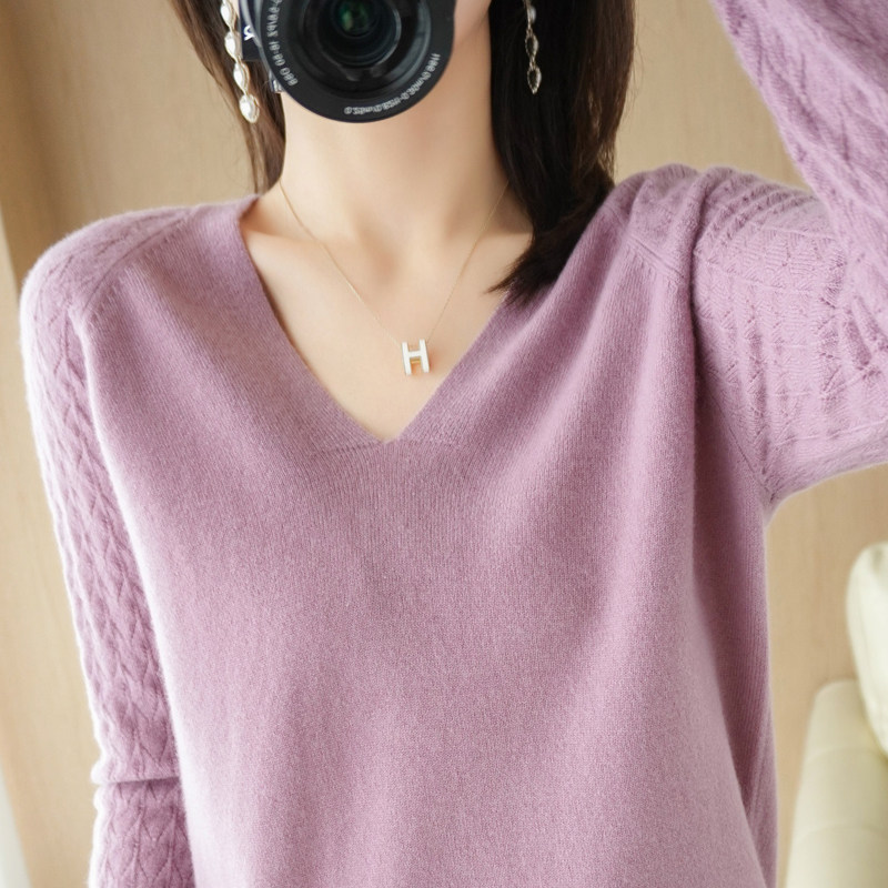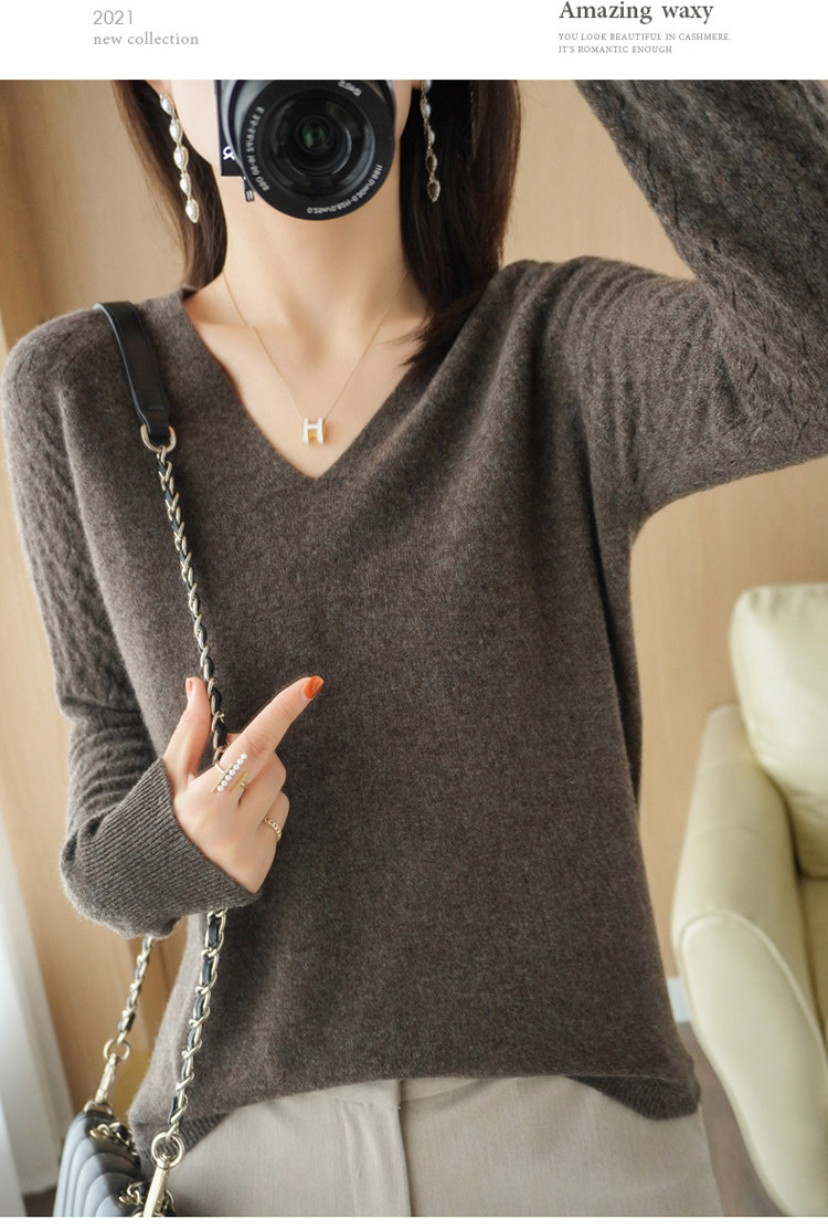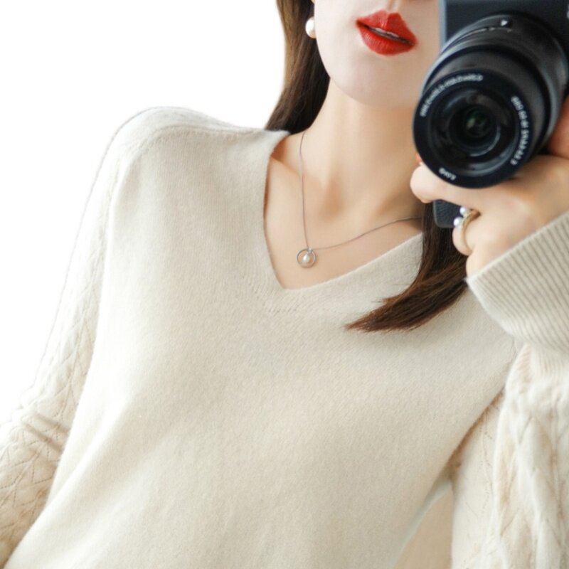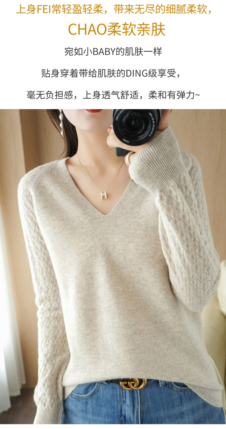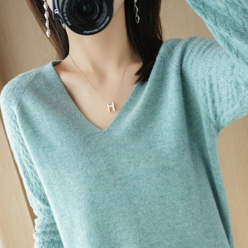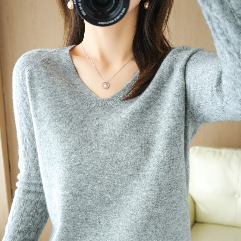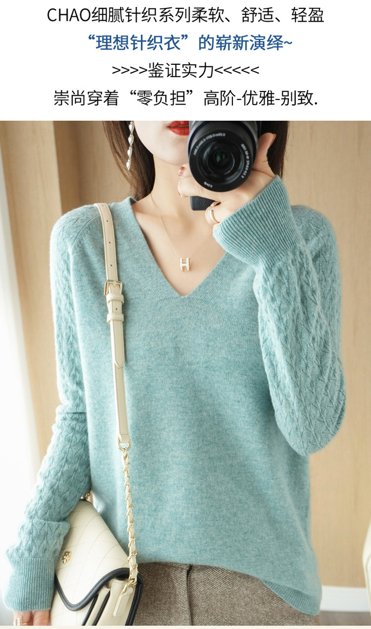 Демисезонный шерстяной свитер, короткий трикотажный бархатный комплект, V-образный вырез