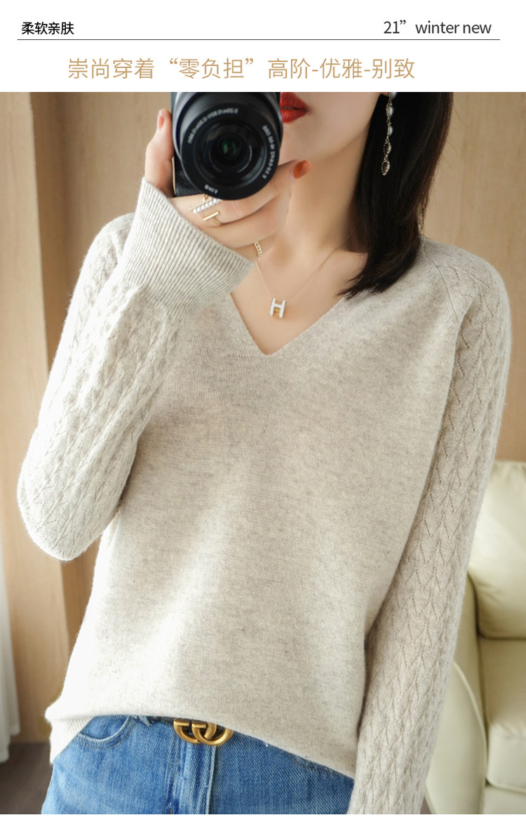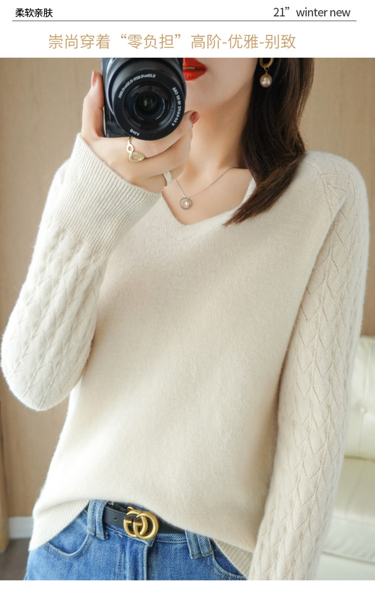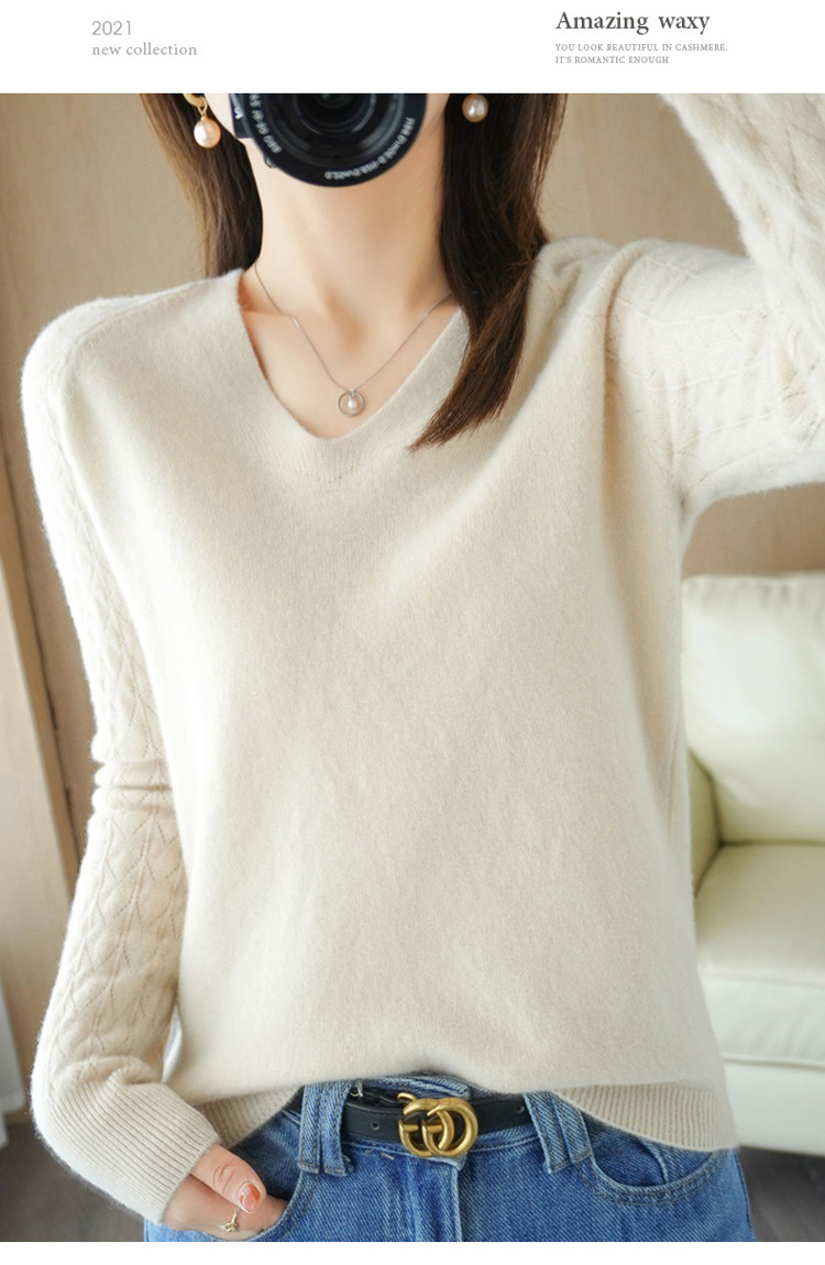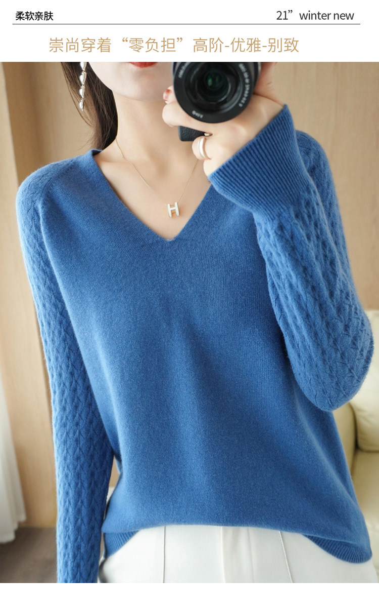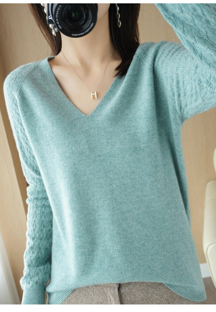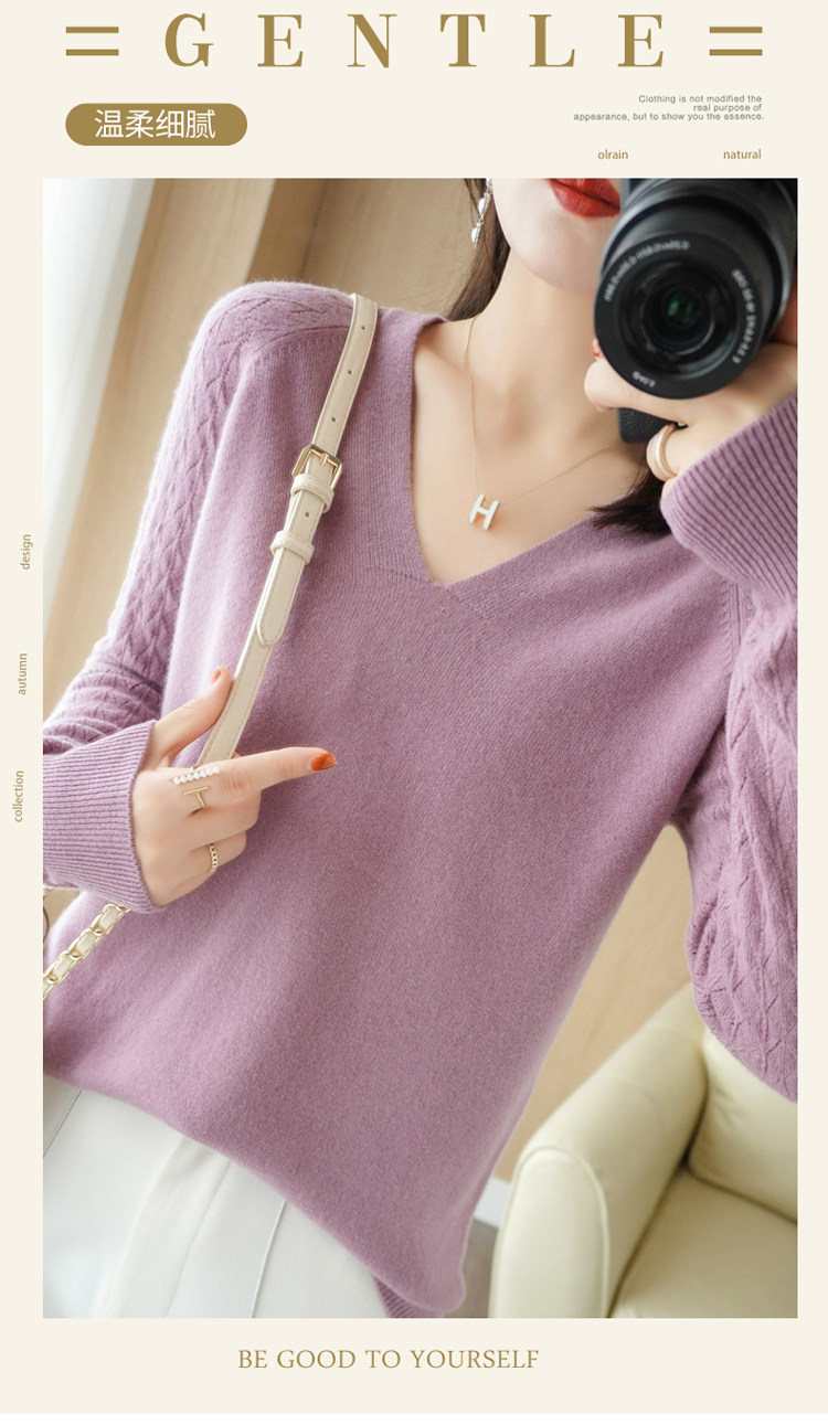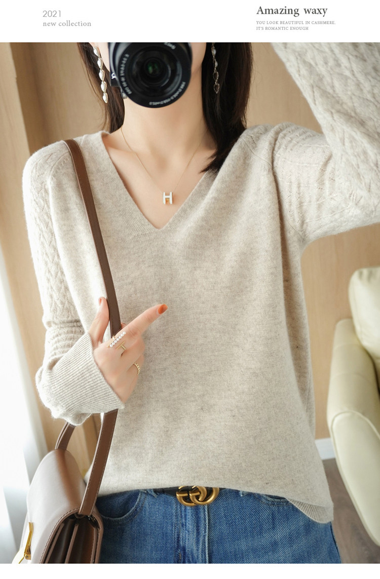 Демисезонный шерстяной свитер, короткий трикотажный бархатный комплект, V-образный вырез
