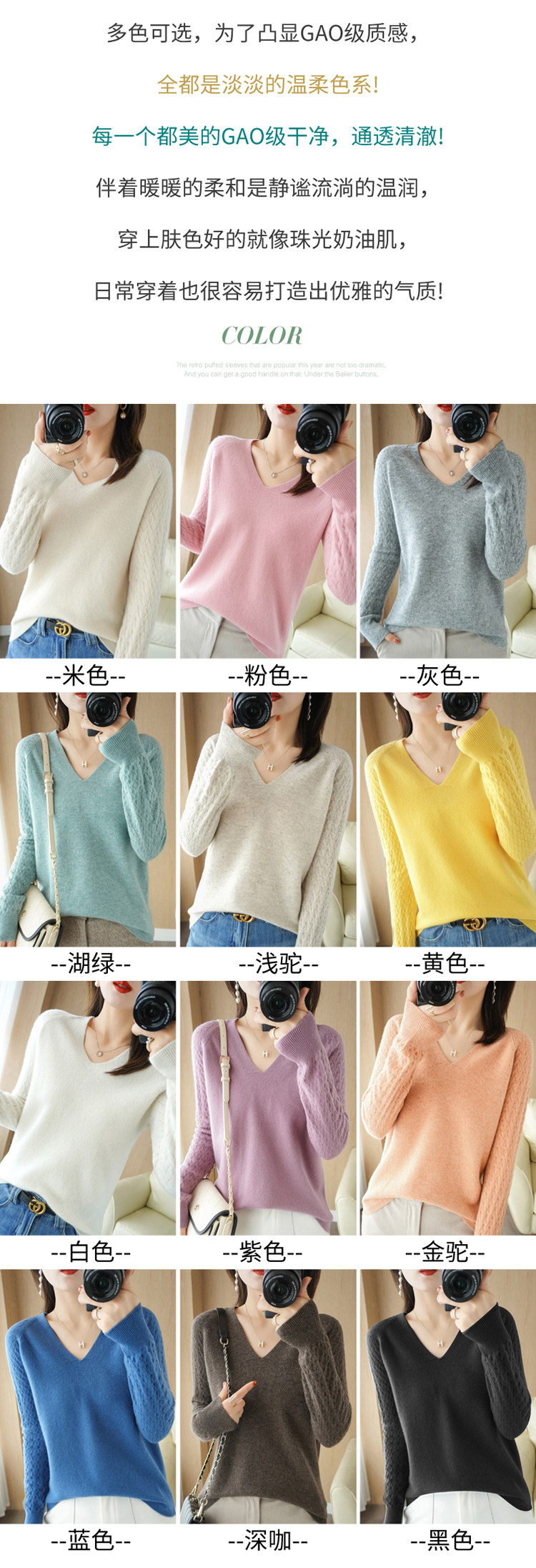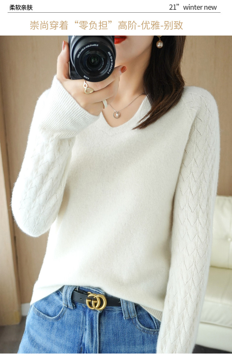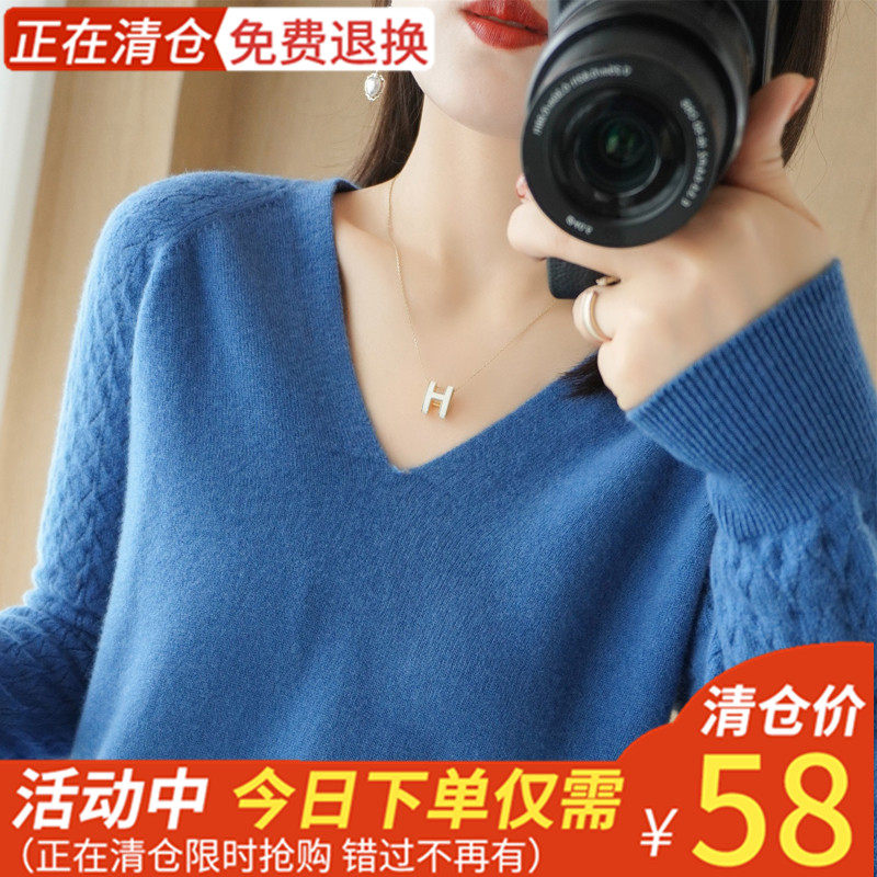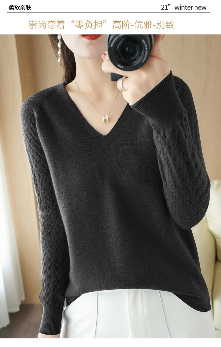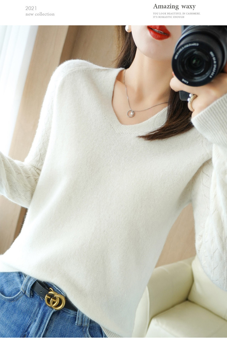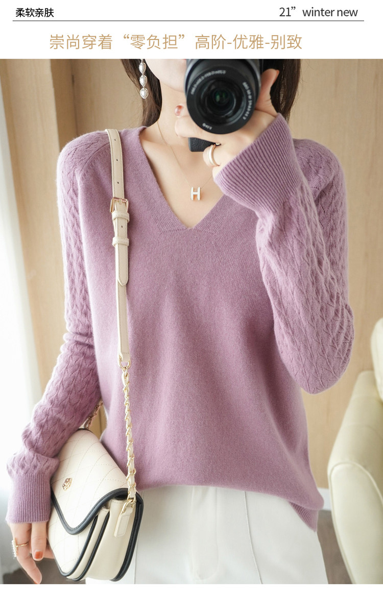 Демисезонный шерстяной свитер, короткий трикотажный бархатный комплект, V-образный вырез