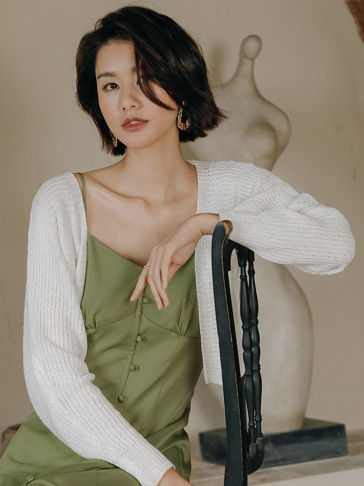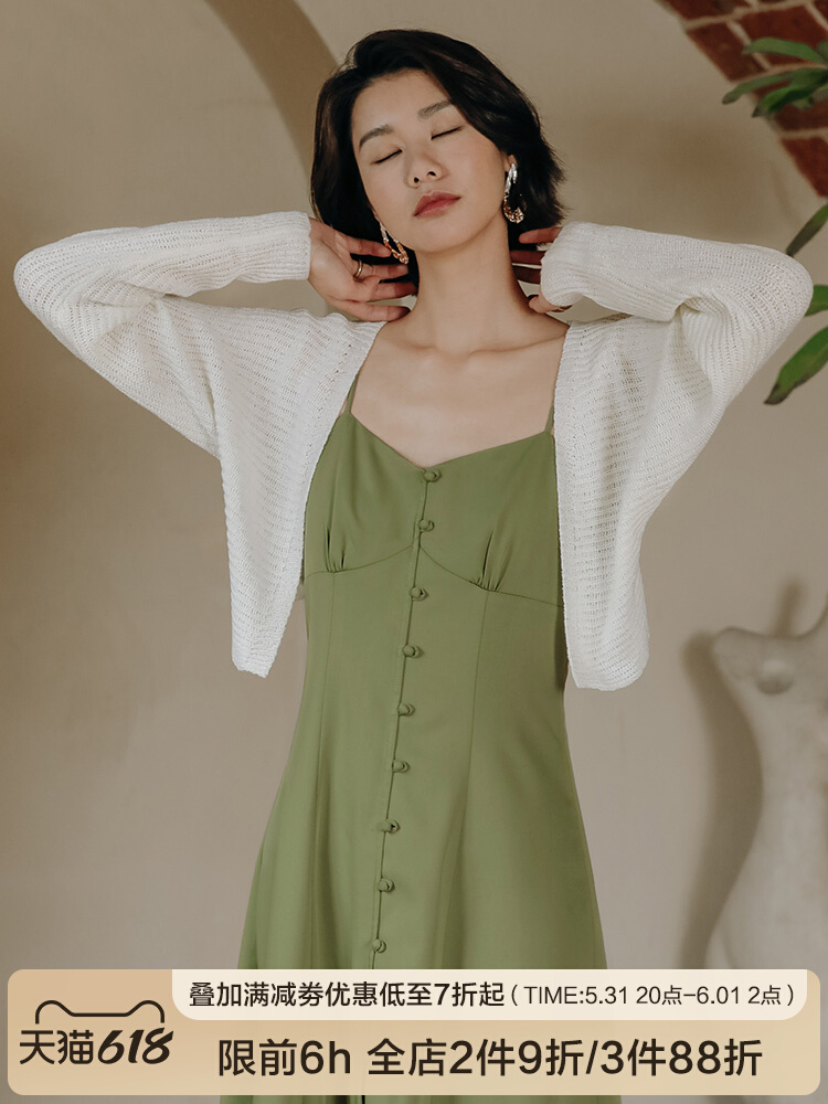 弥古 Белый летний кардиган, куртка, платье-комбинация, трикотажный вязаный жилет, изысканный стиль