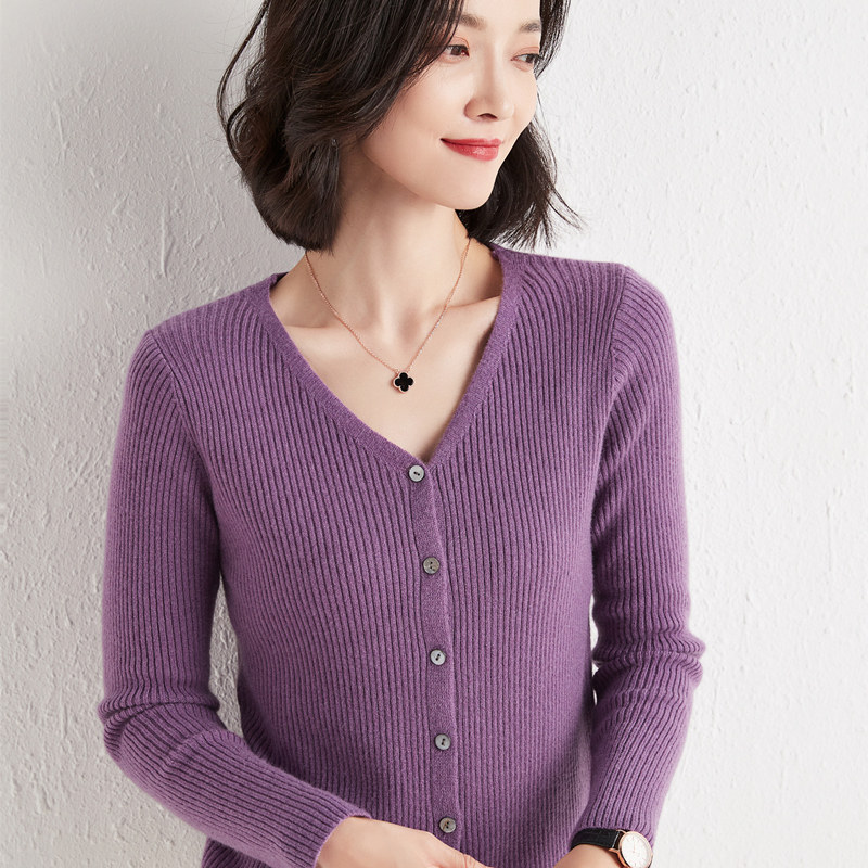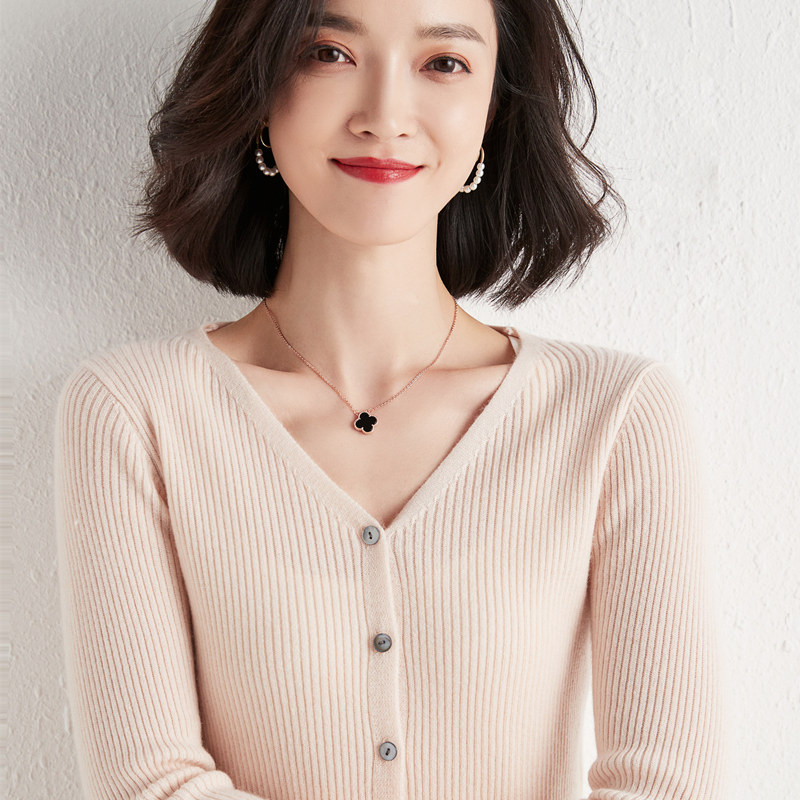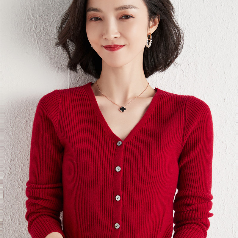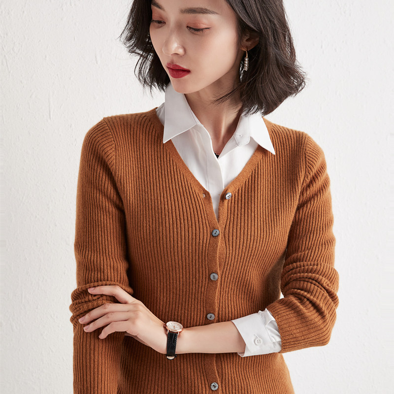 Трикотажный осенний кардиган, приталенный лонгслив, базовый шерстяной свитер, в корейском стиле