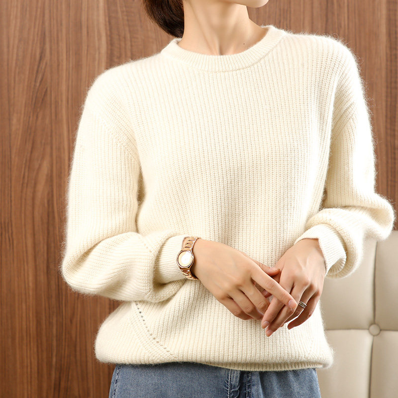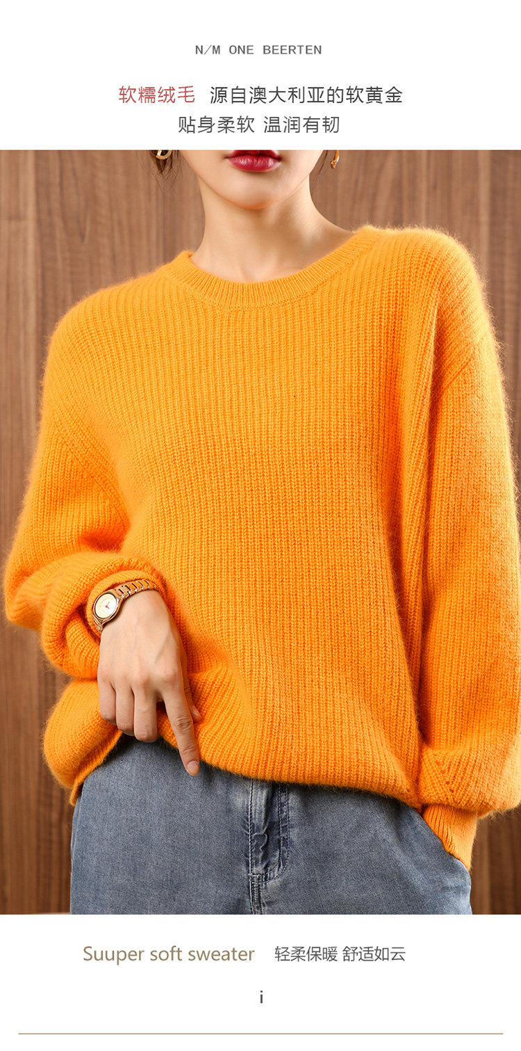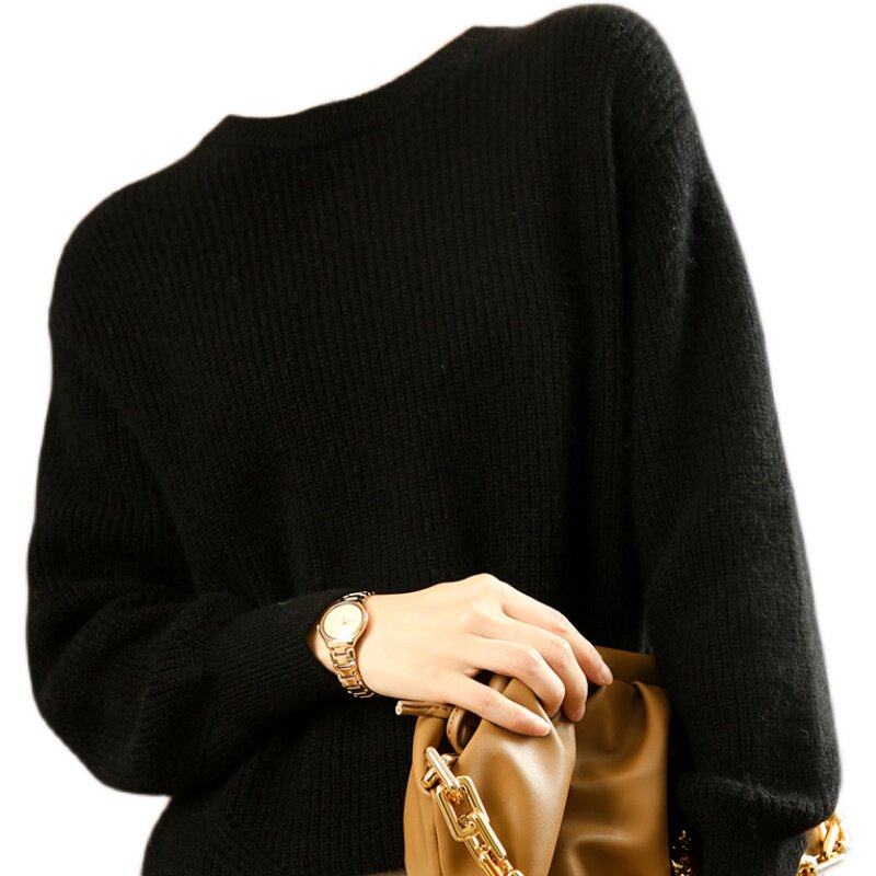 Кашемировый демисезонный шерстяной свитер, рубашка, термобелье с круглым воротником, коллекция 2021, оверсайз, увеличенная толщина, в корейском стиле