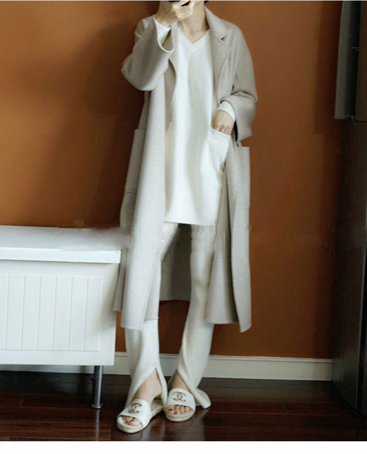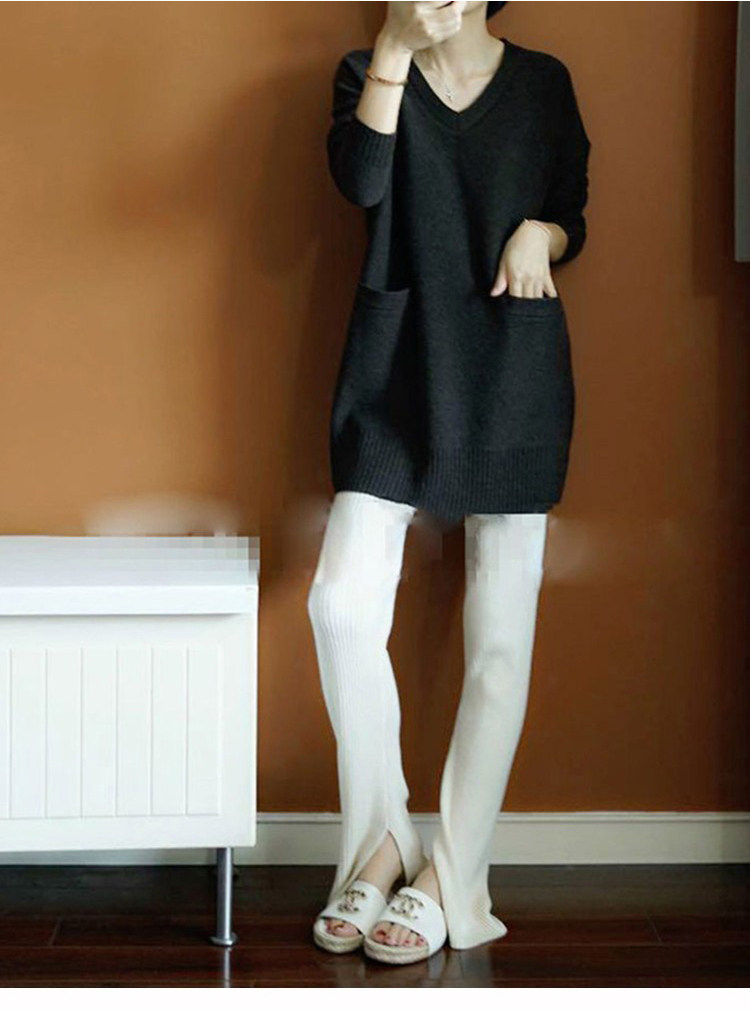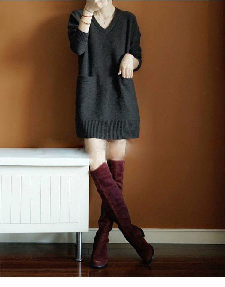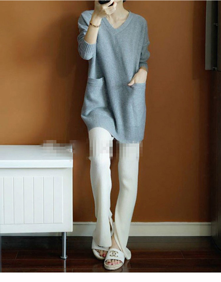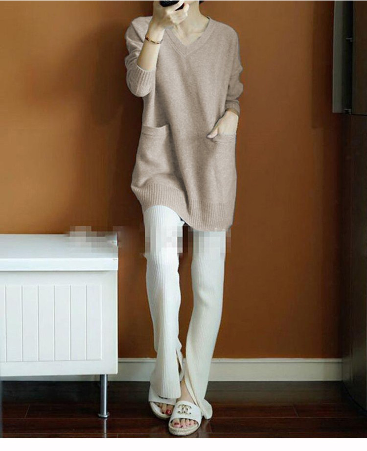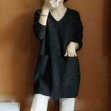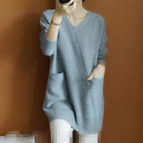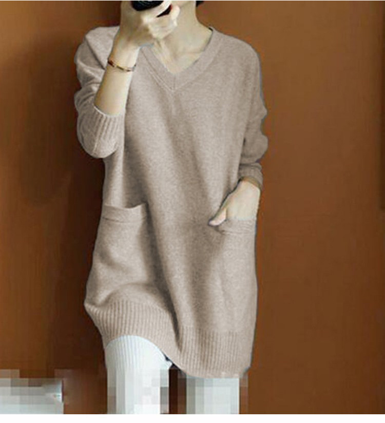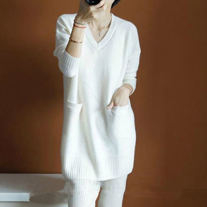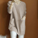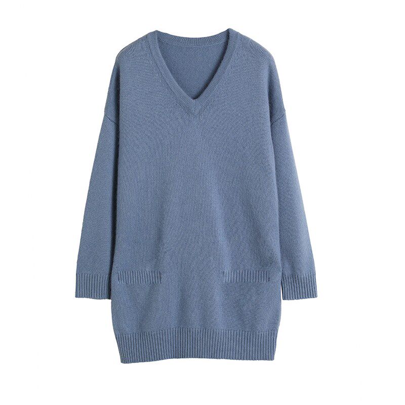 Кашемировый длинный базовый шерстяной свитер, средней длины, V-образный вырез, оверсайз, увеличенная толщина, по фигуре