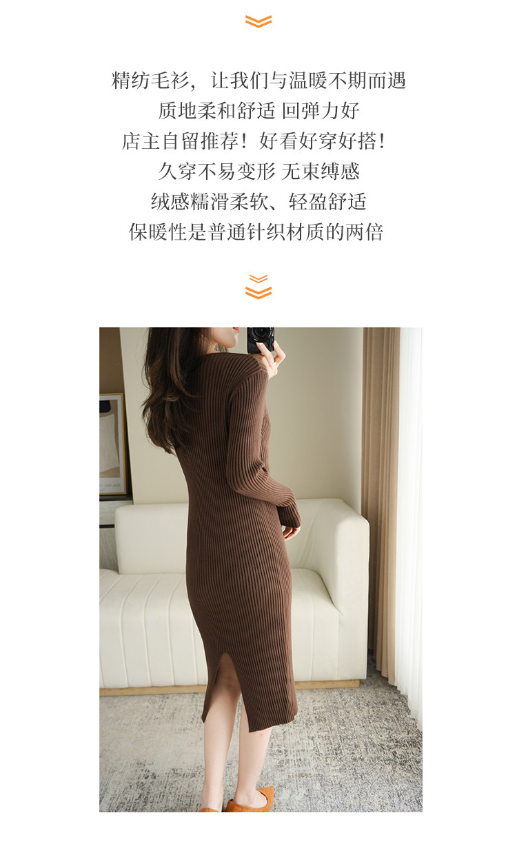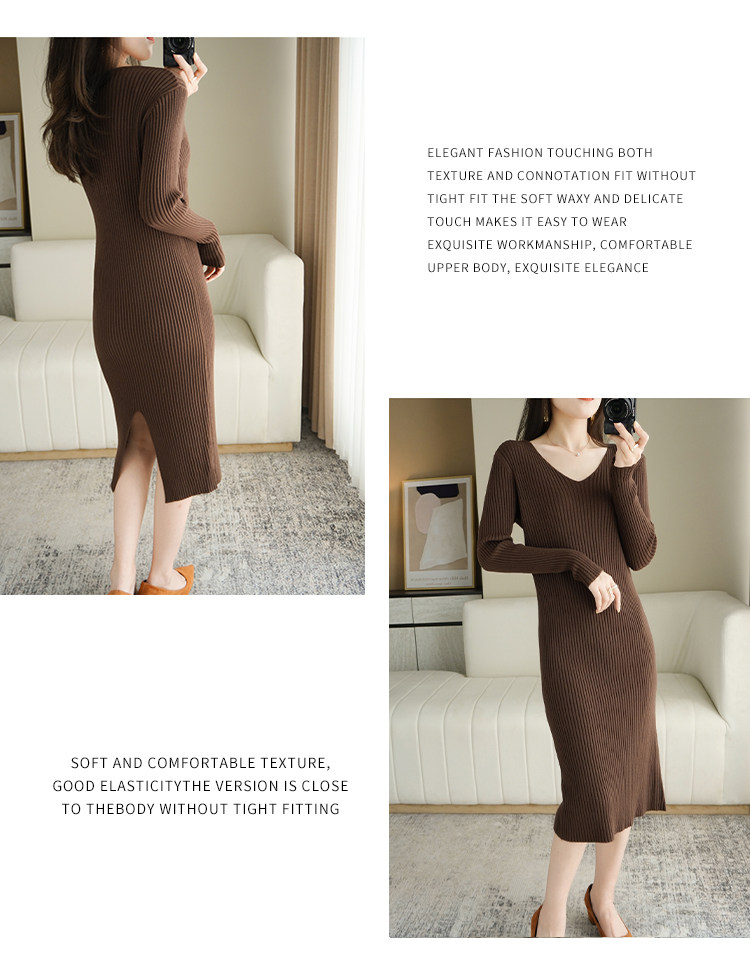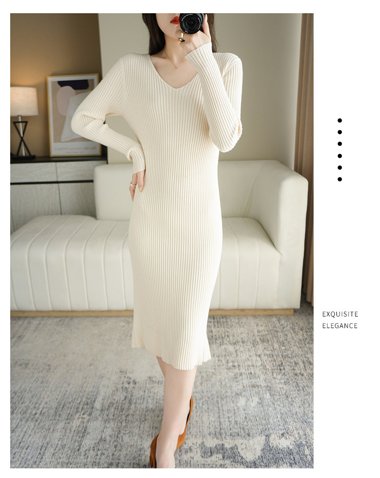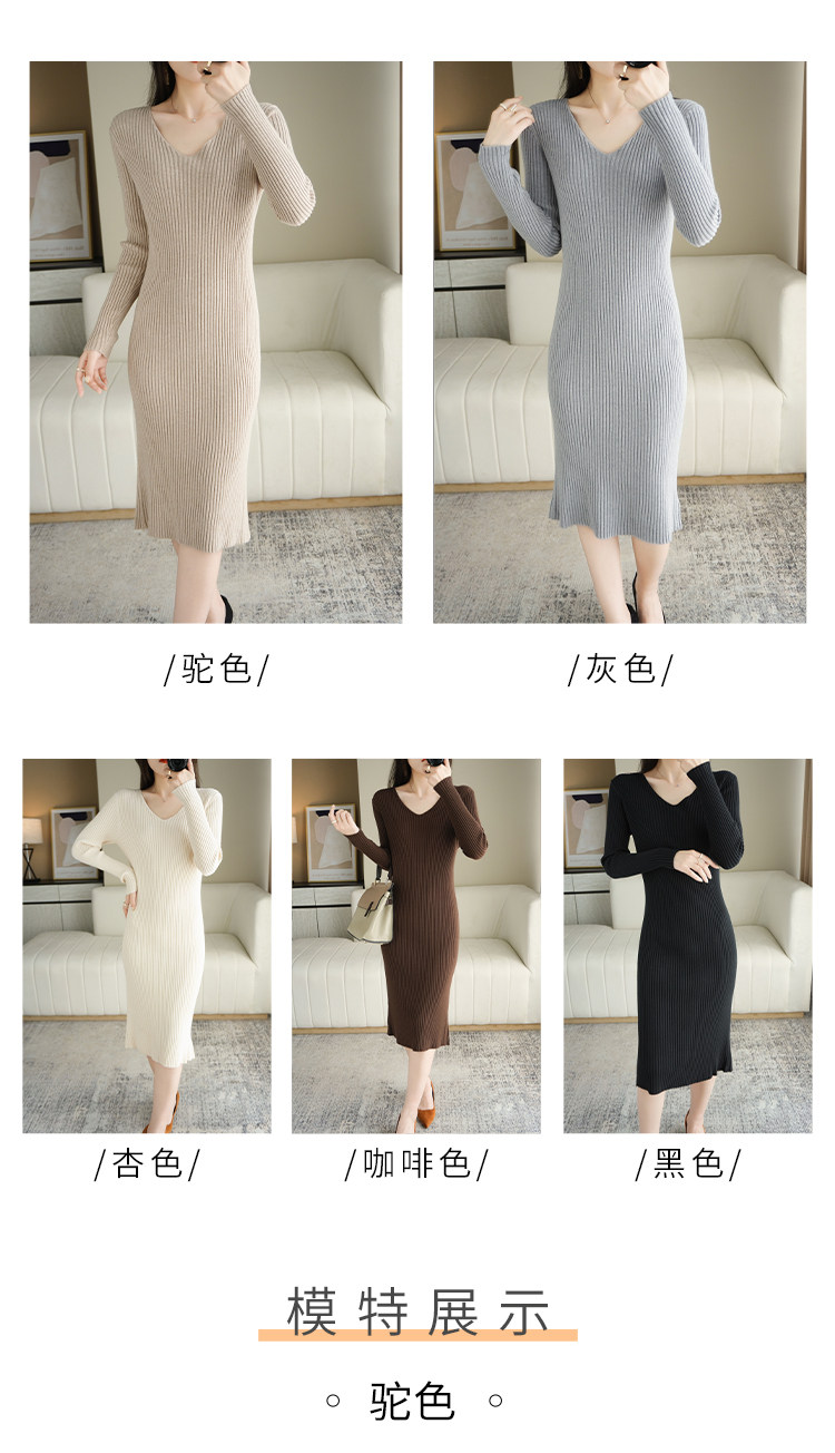Длинное шерстяное приталенное базовое приятное телу трикотажное платье, V-образный вырез, средней длины