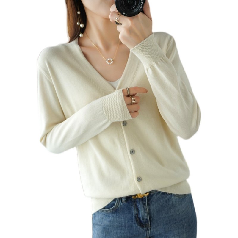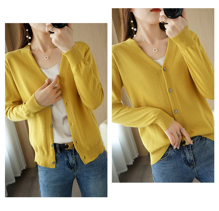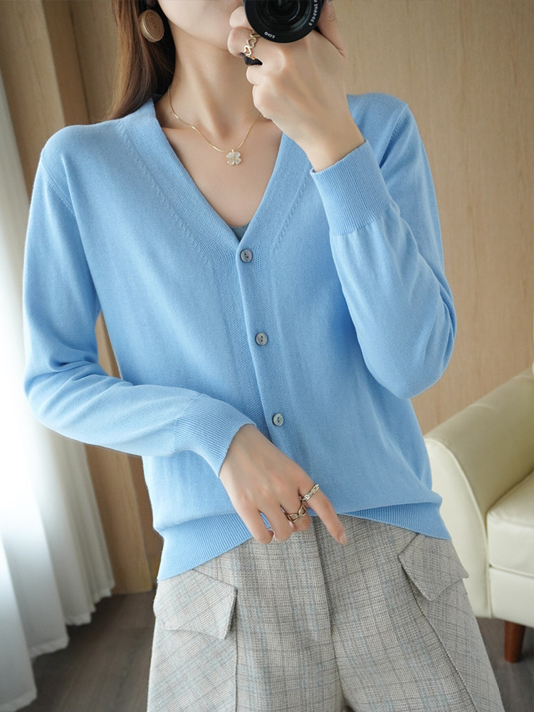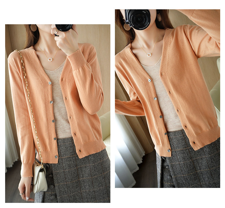 Хлопковый короткий лонгслив, кардиган, 100% хлопок, V-образный вырез, городской стиль