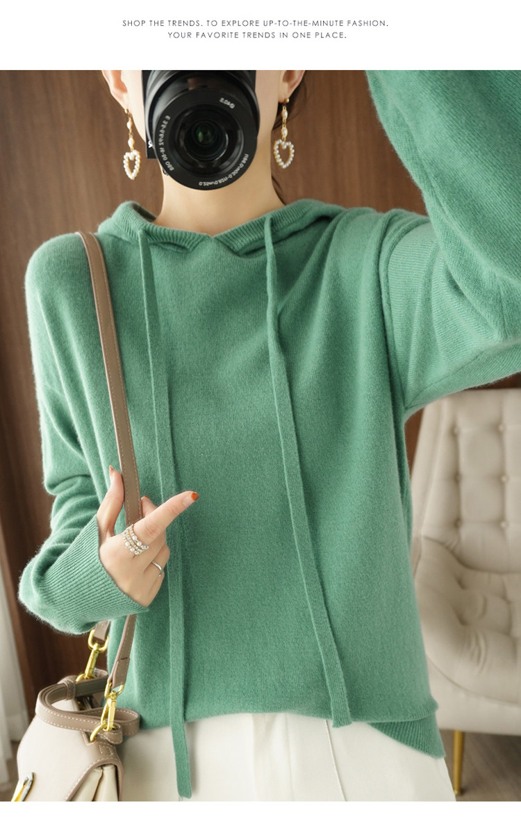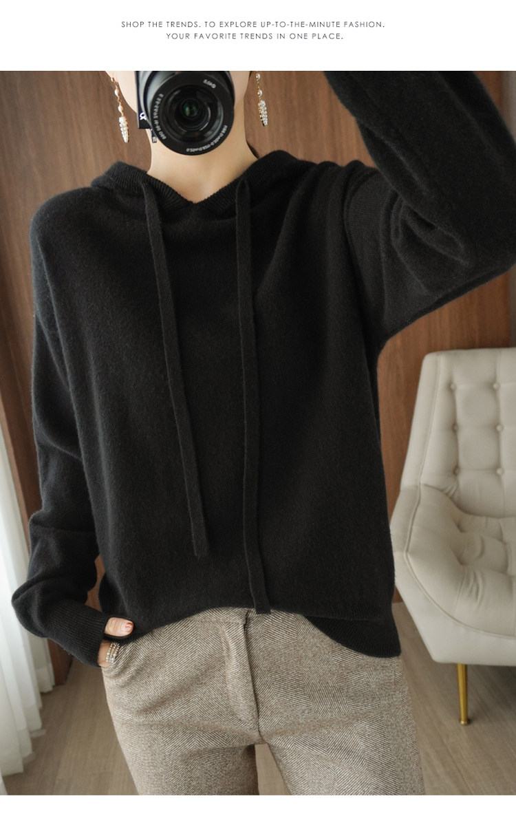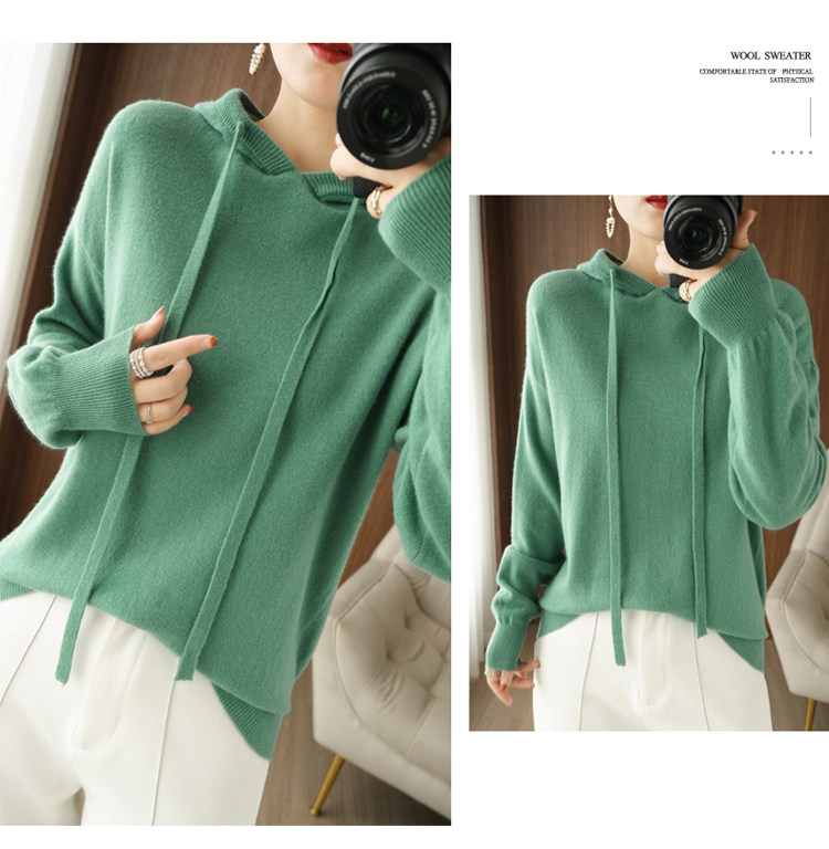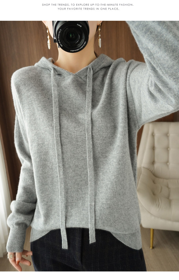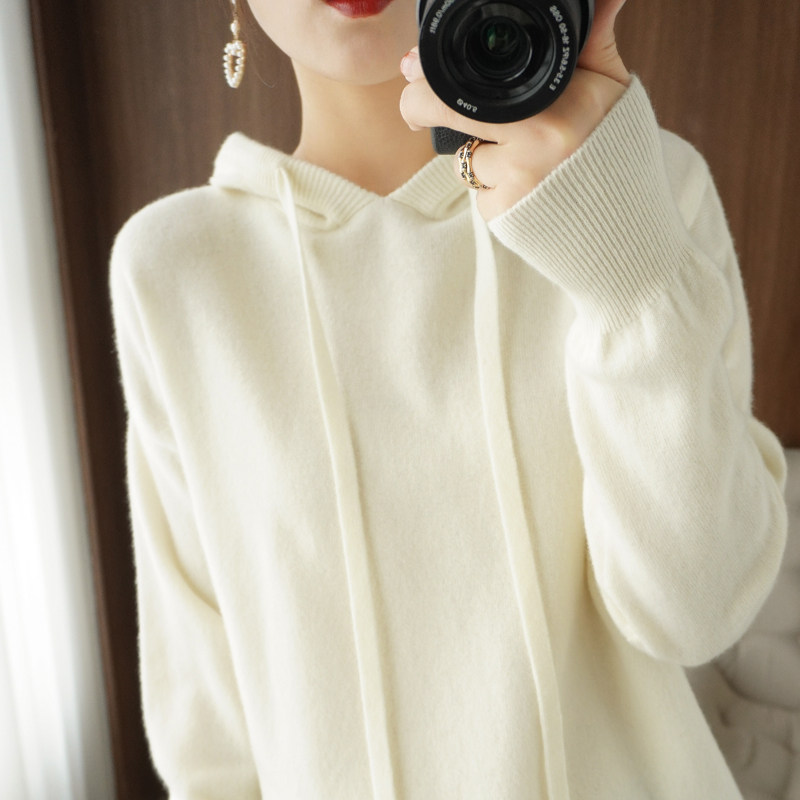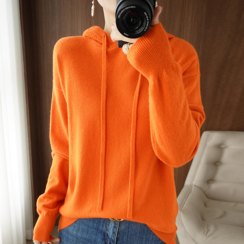 Демисезонная трикотажная толстовка с капюшоном, шерстяной модный свитер, свободный прямой крой, в корейском стиле
