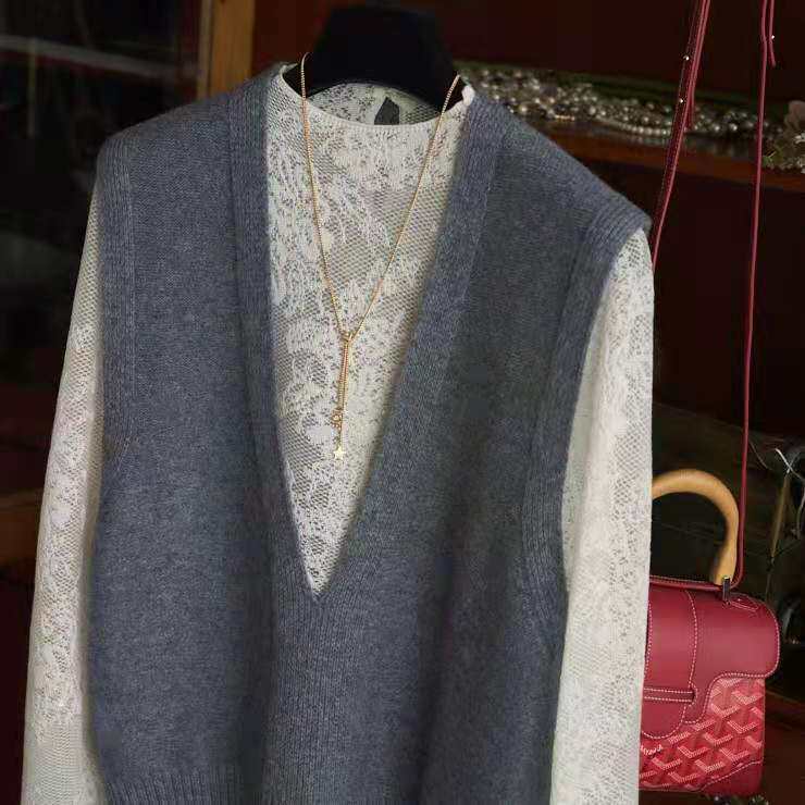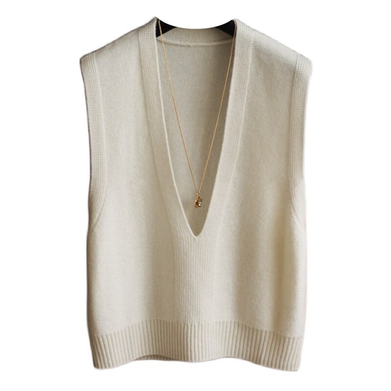 Демисезонный шерстяной трикотажный кашемировый жилет без рукавов, V-образный вырез, в корейском стиле