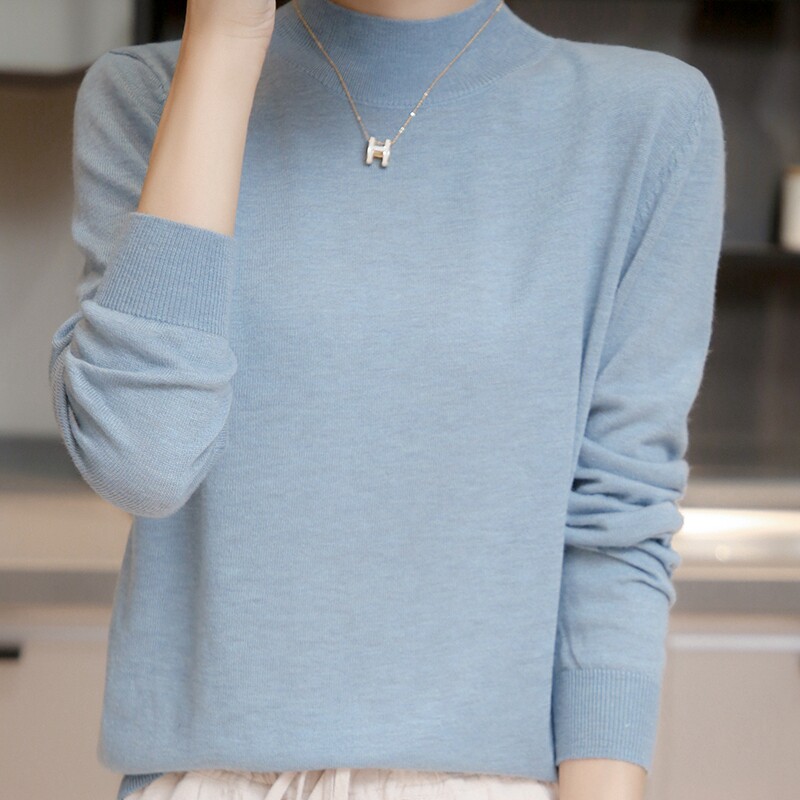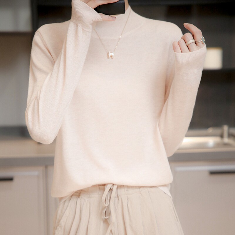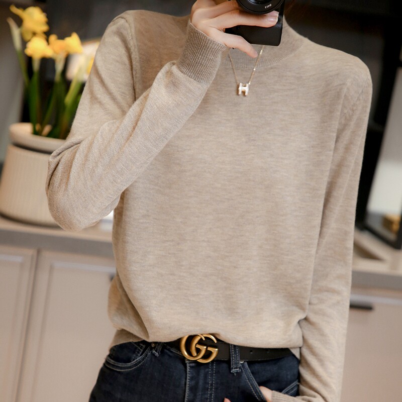 Базовый приятный телу тонкий трикотажный лонгслив, демисезонный шерстяной свитер, высокий воротник, коллекция 2021