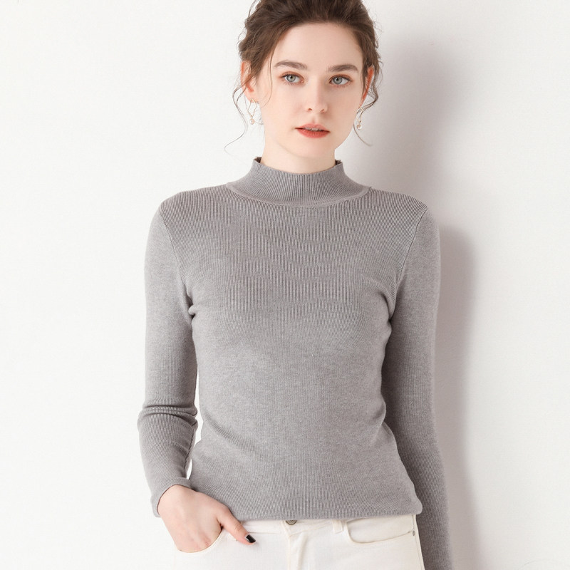 Базовый приятный телу демисезонный кашемировый трикотажный шерстяной свитер, в западном стиле, высокий воротник, увеличенная толщина