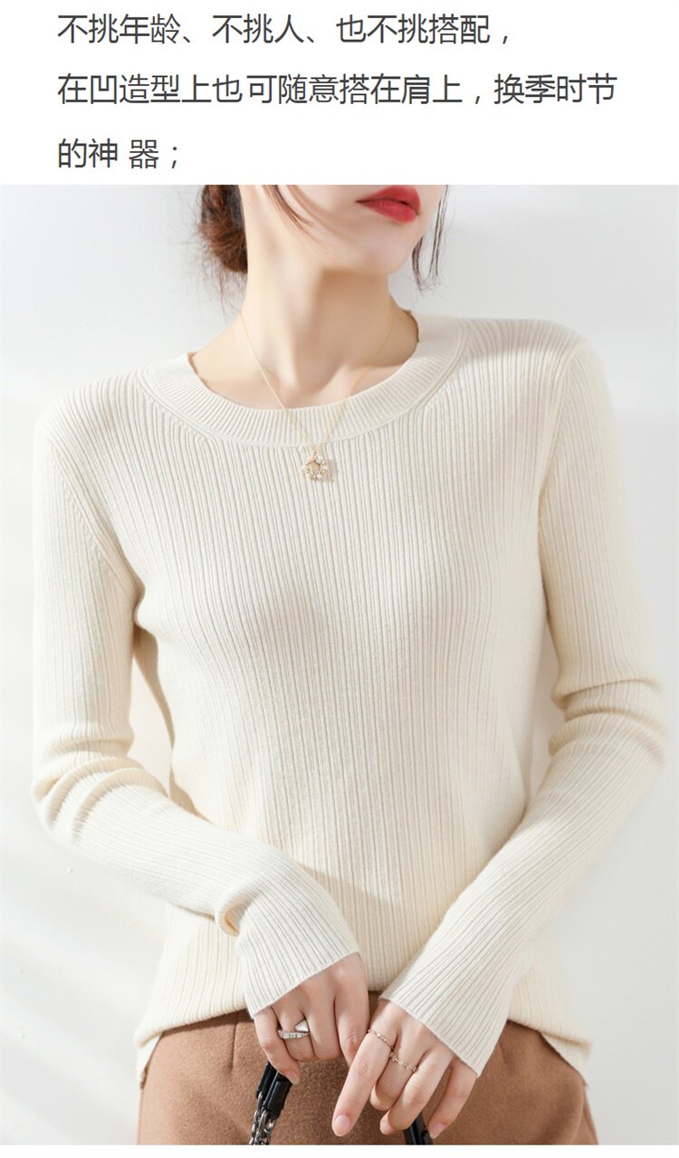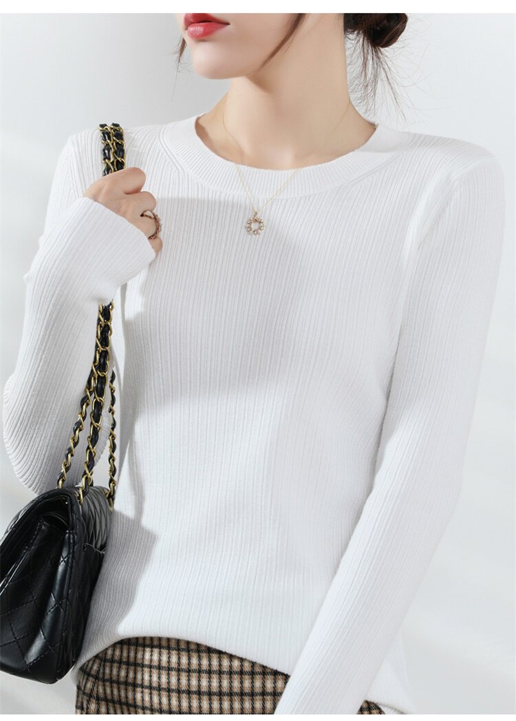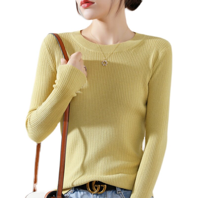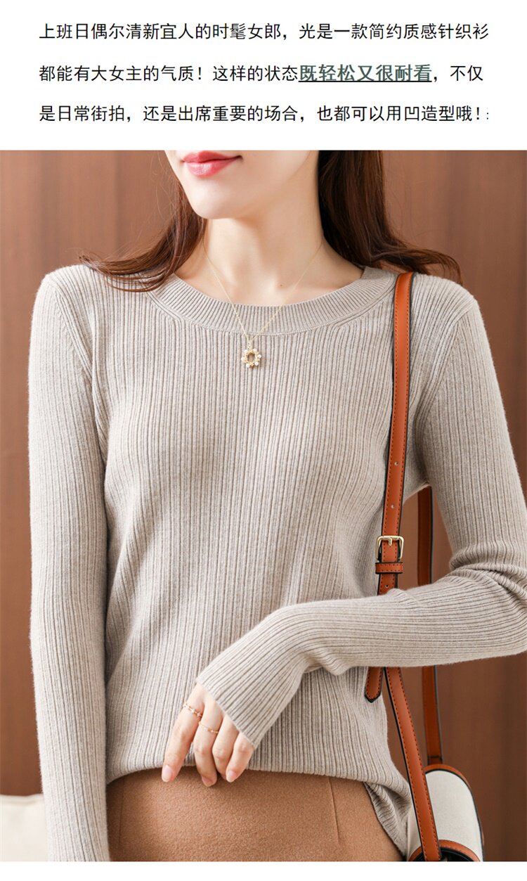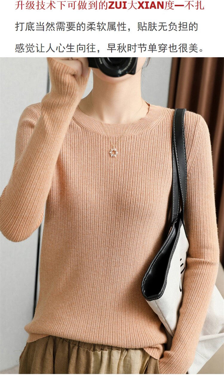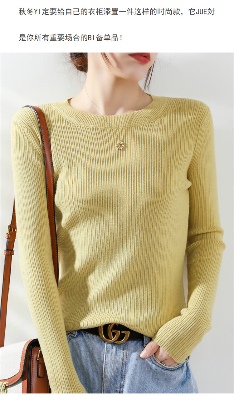 Кашемировый демисезонный шерстяной свитер с круглым воротником, базовый трикотажный приталенный лонгслив