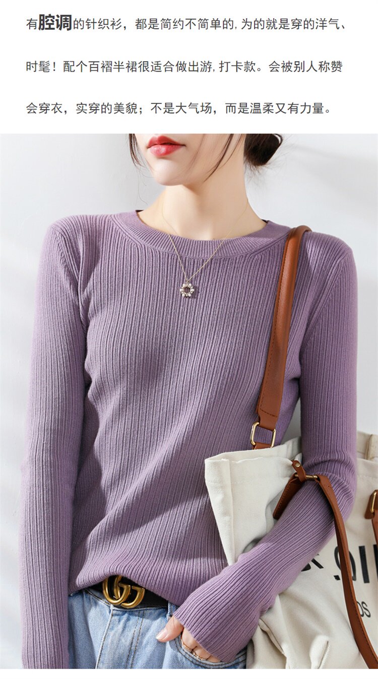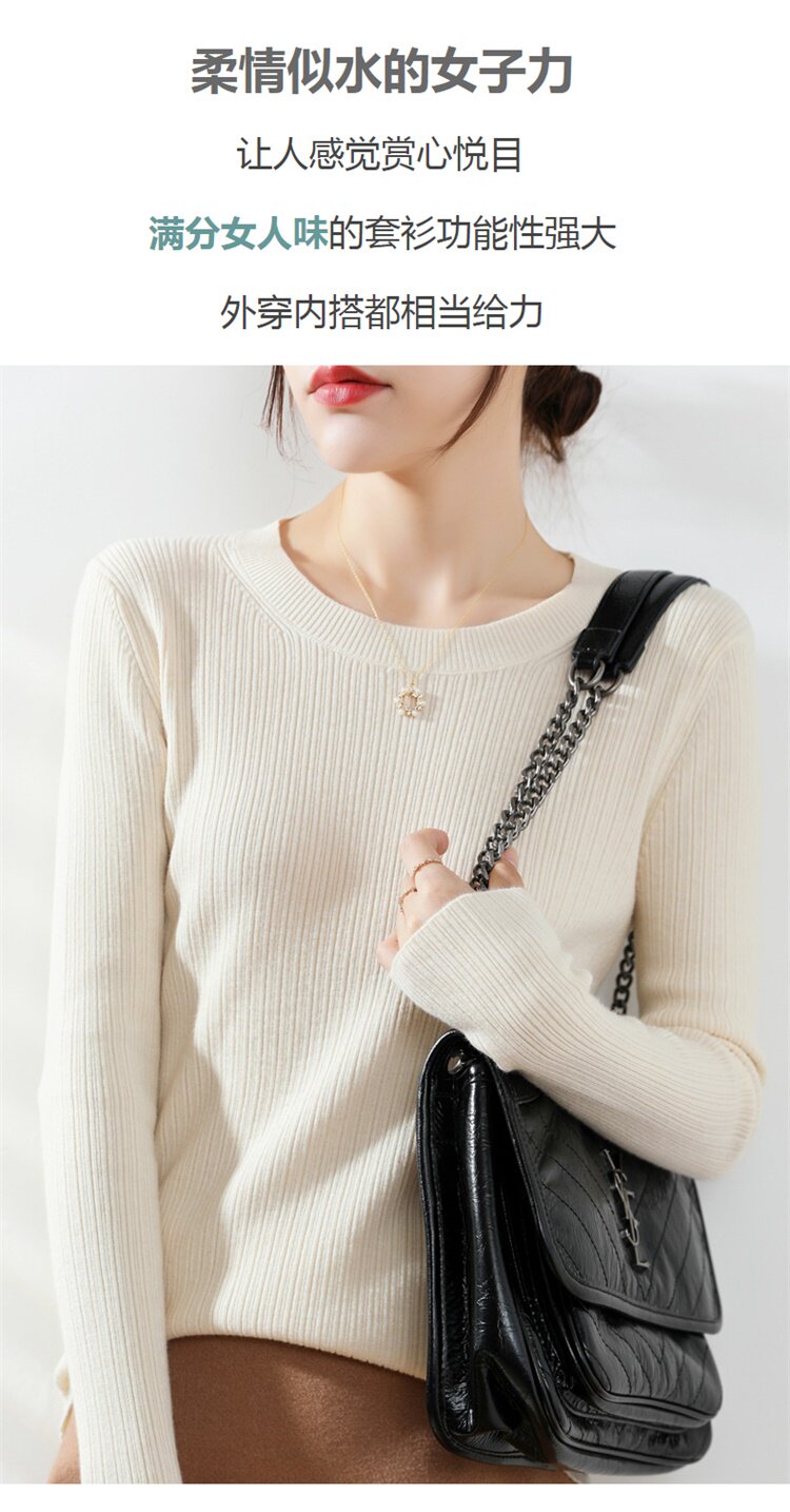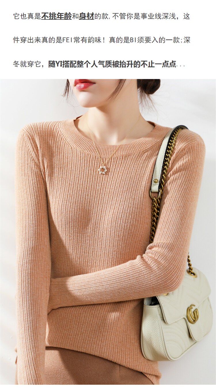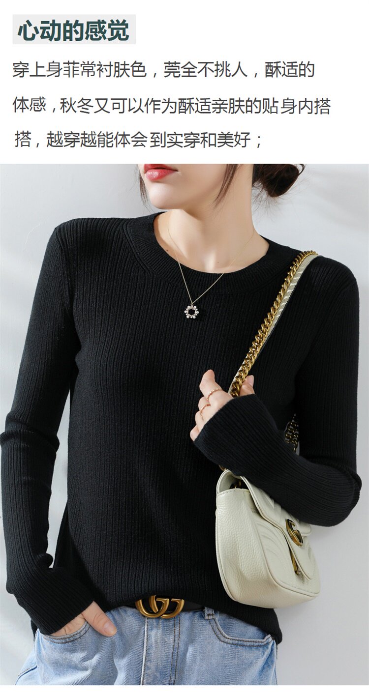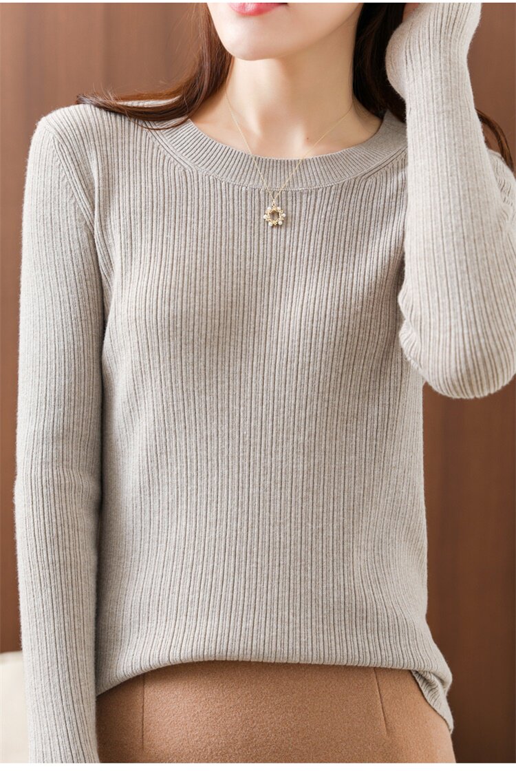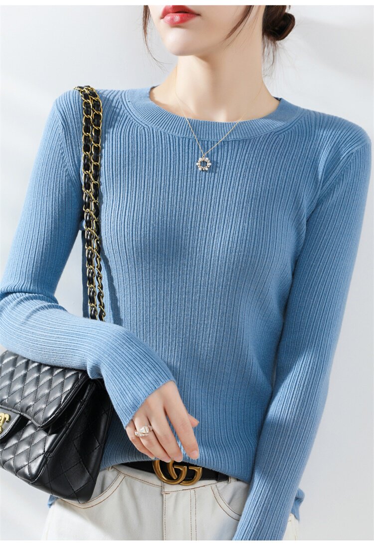 Кашемировый демисезонный шерстяной свитер с круглым воротником, базовый трикотажный приталенный лонгслив