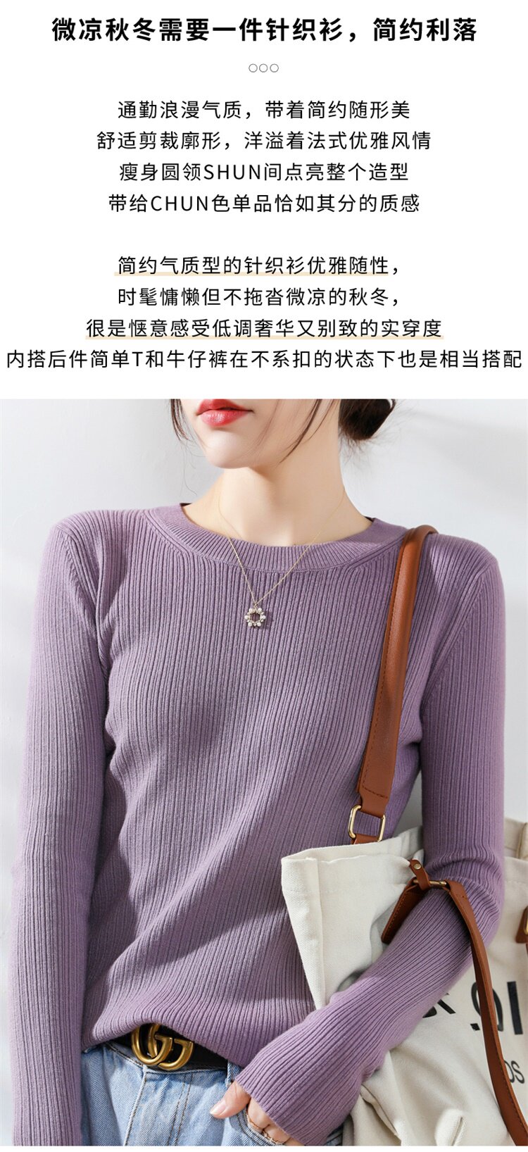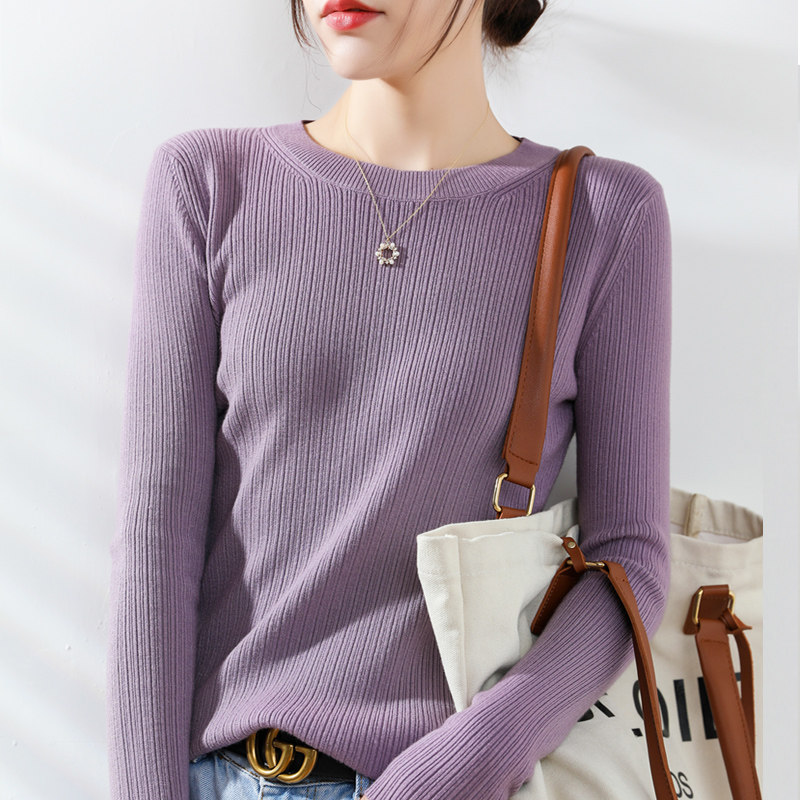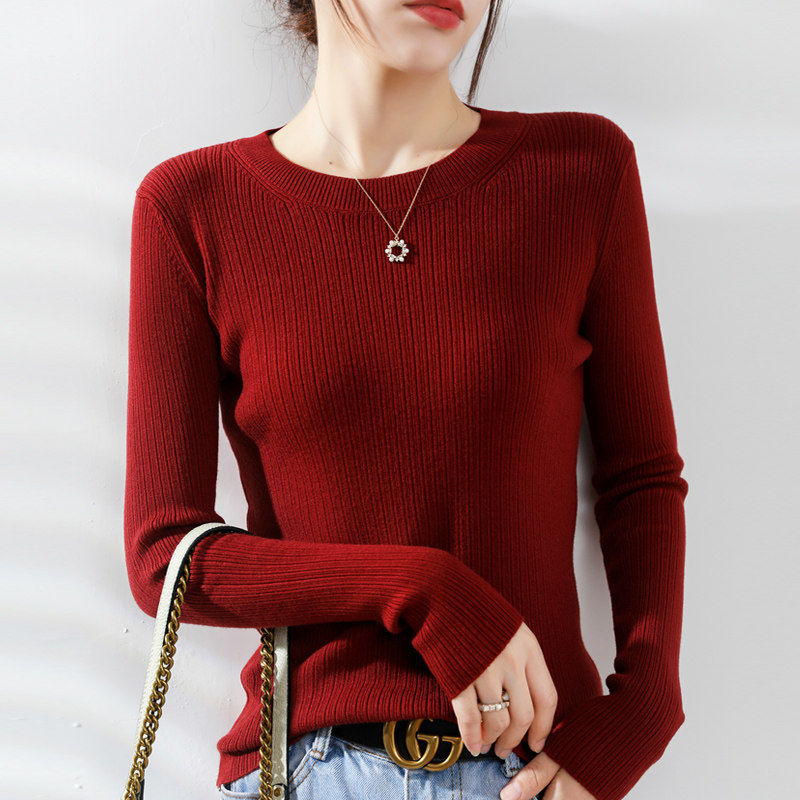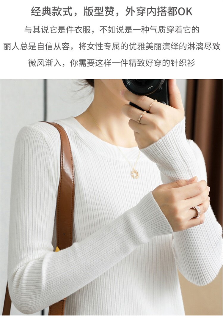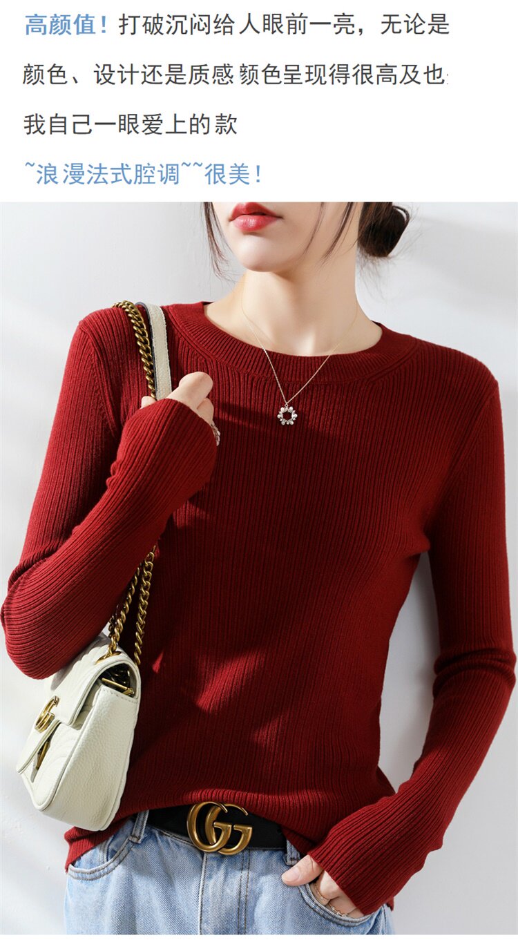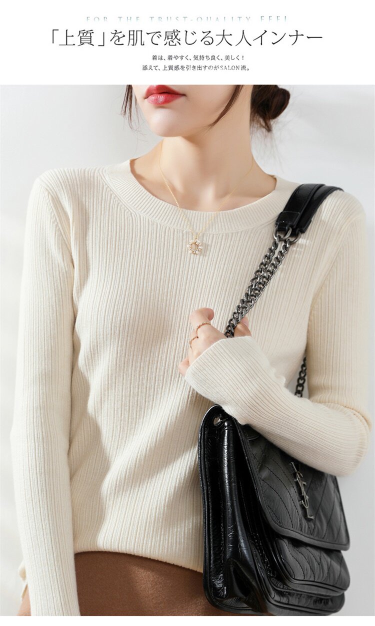 Кашемировый демисезонный шерстяной свитер с круглым воротником, базовый трикотажный приталенный лонгслив