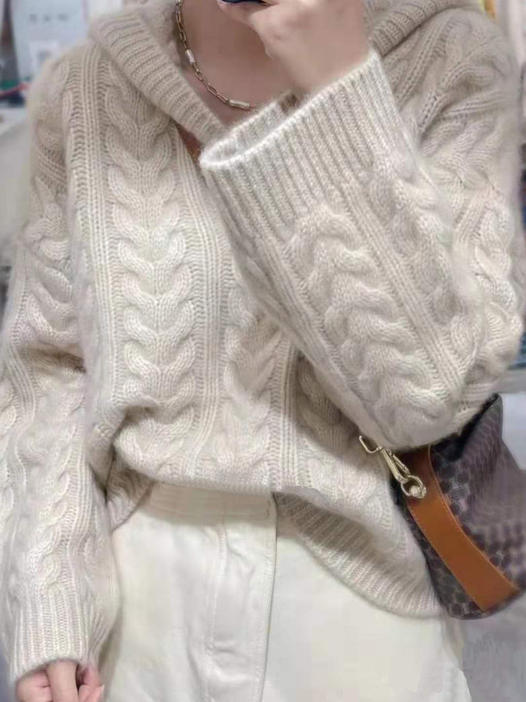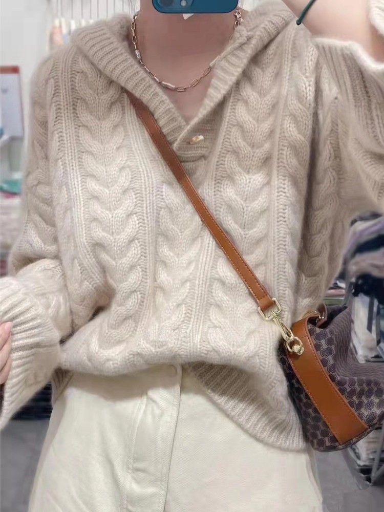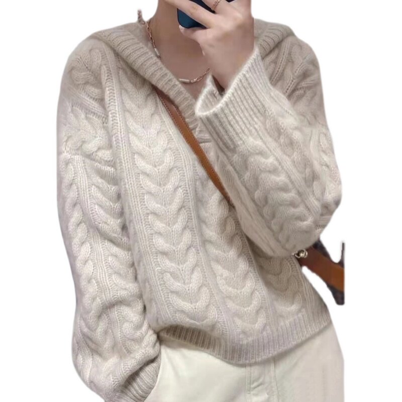 Демисезонная кашемировая толстовка с капюшоном, трикотажный шерстяной свитер, куртка, свободный крой, увеличенная толщина