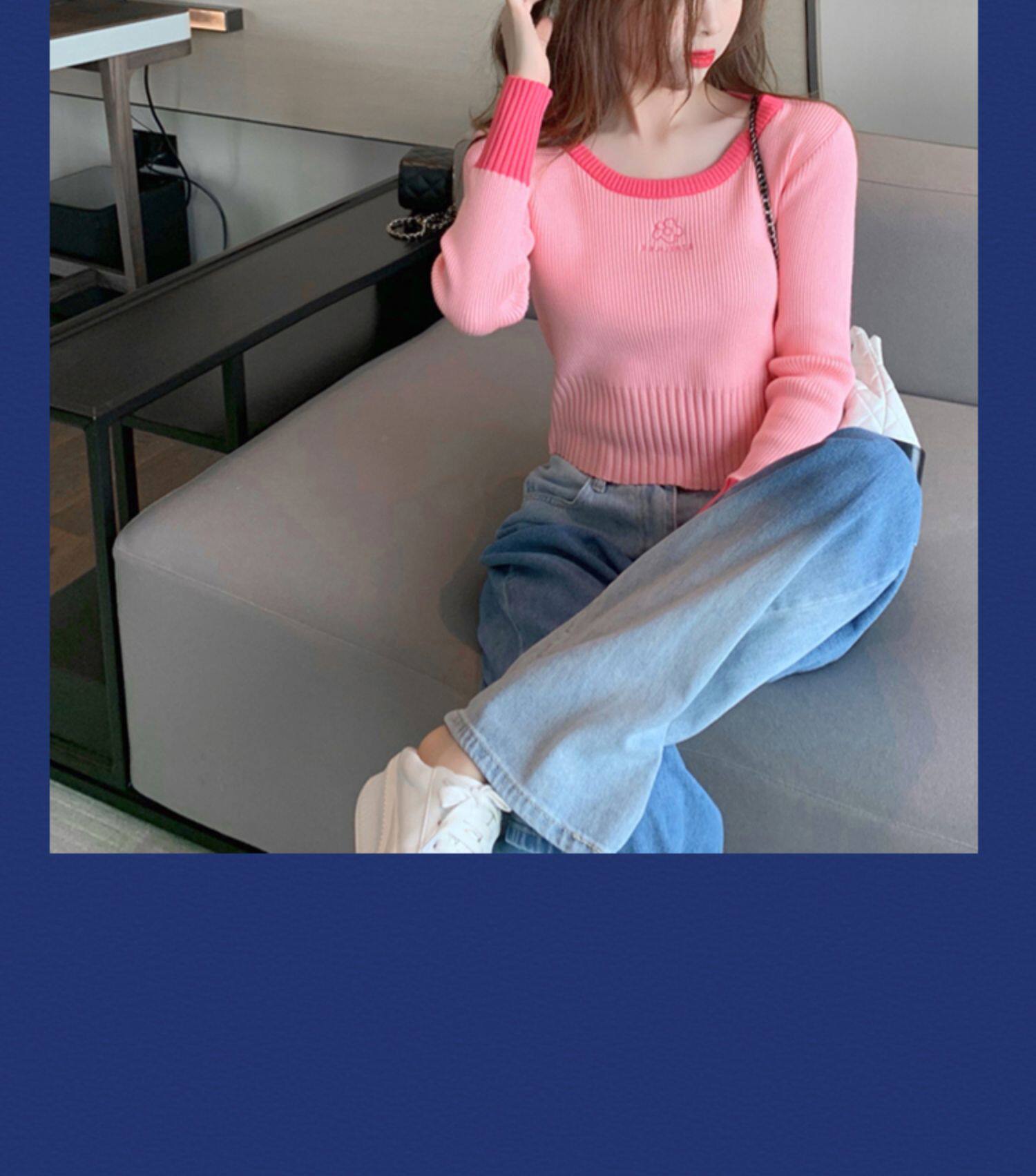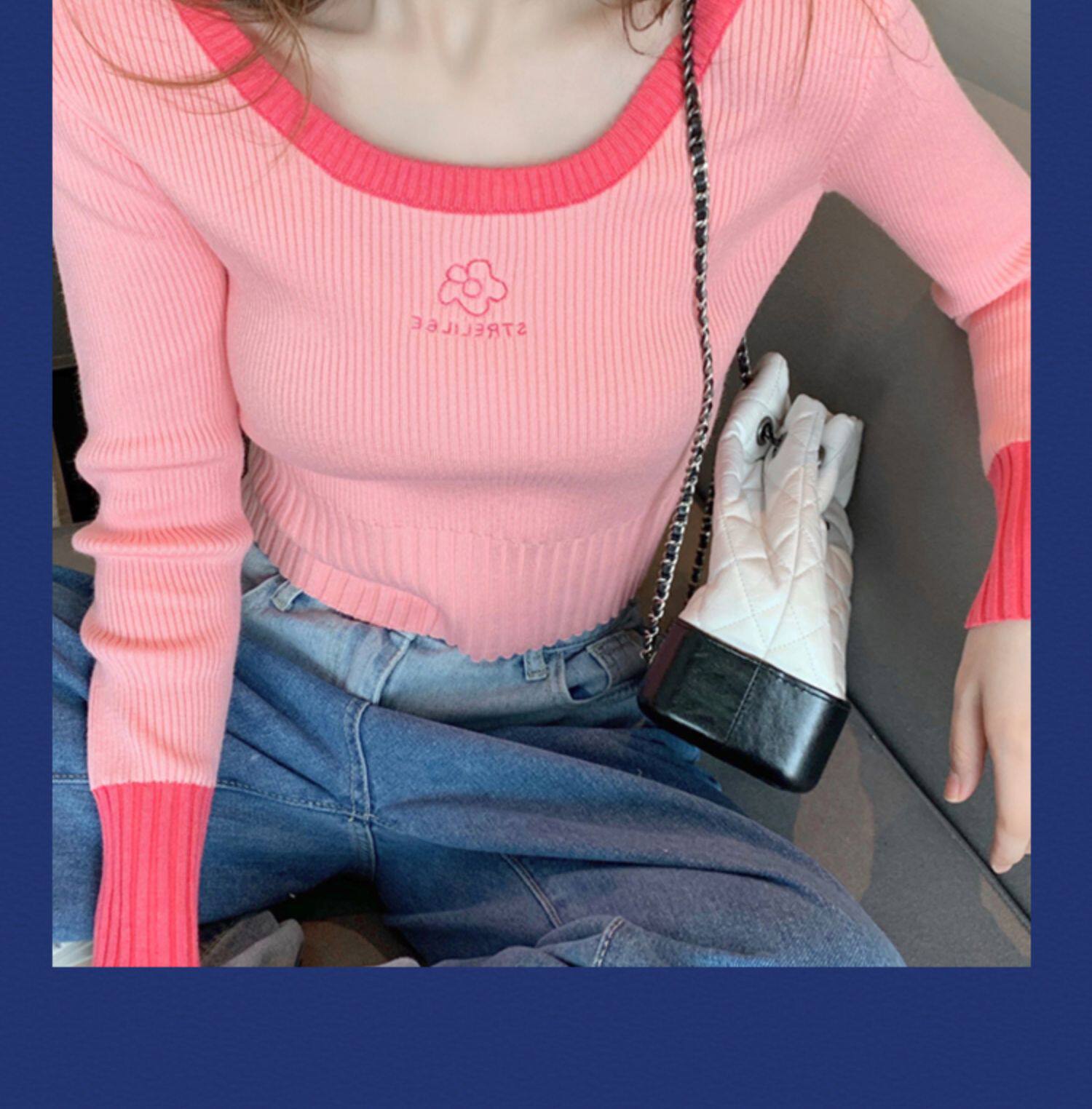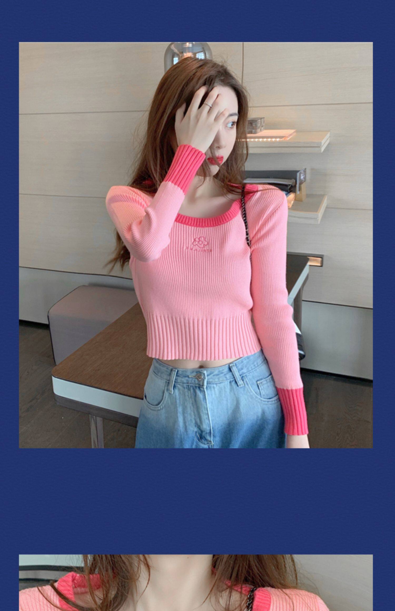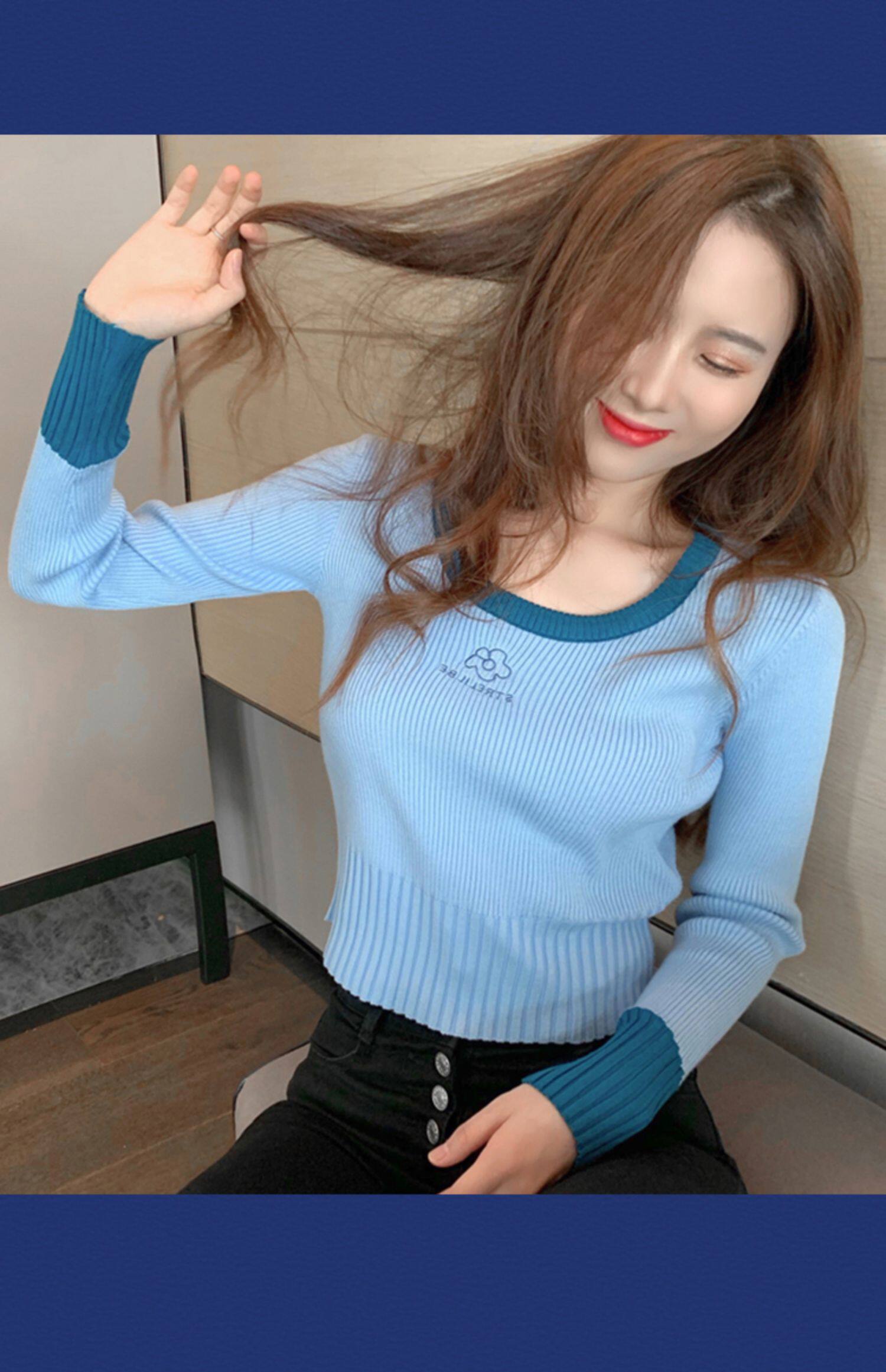 Демисезонный модный свитер, приталенный короткий трикотажный лонгслив, городской стиль, в западном стиле
