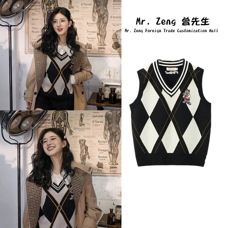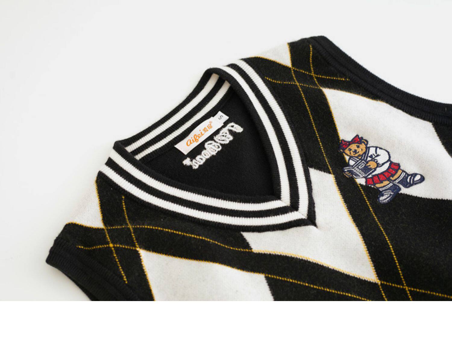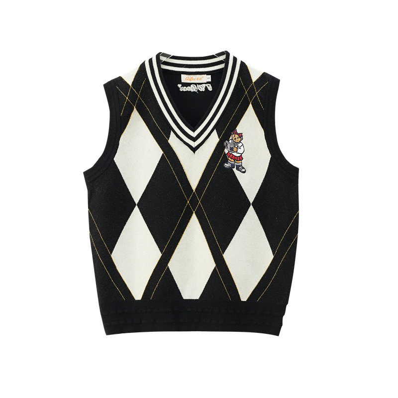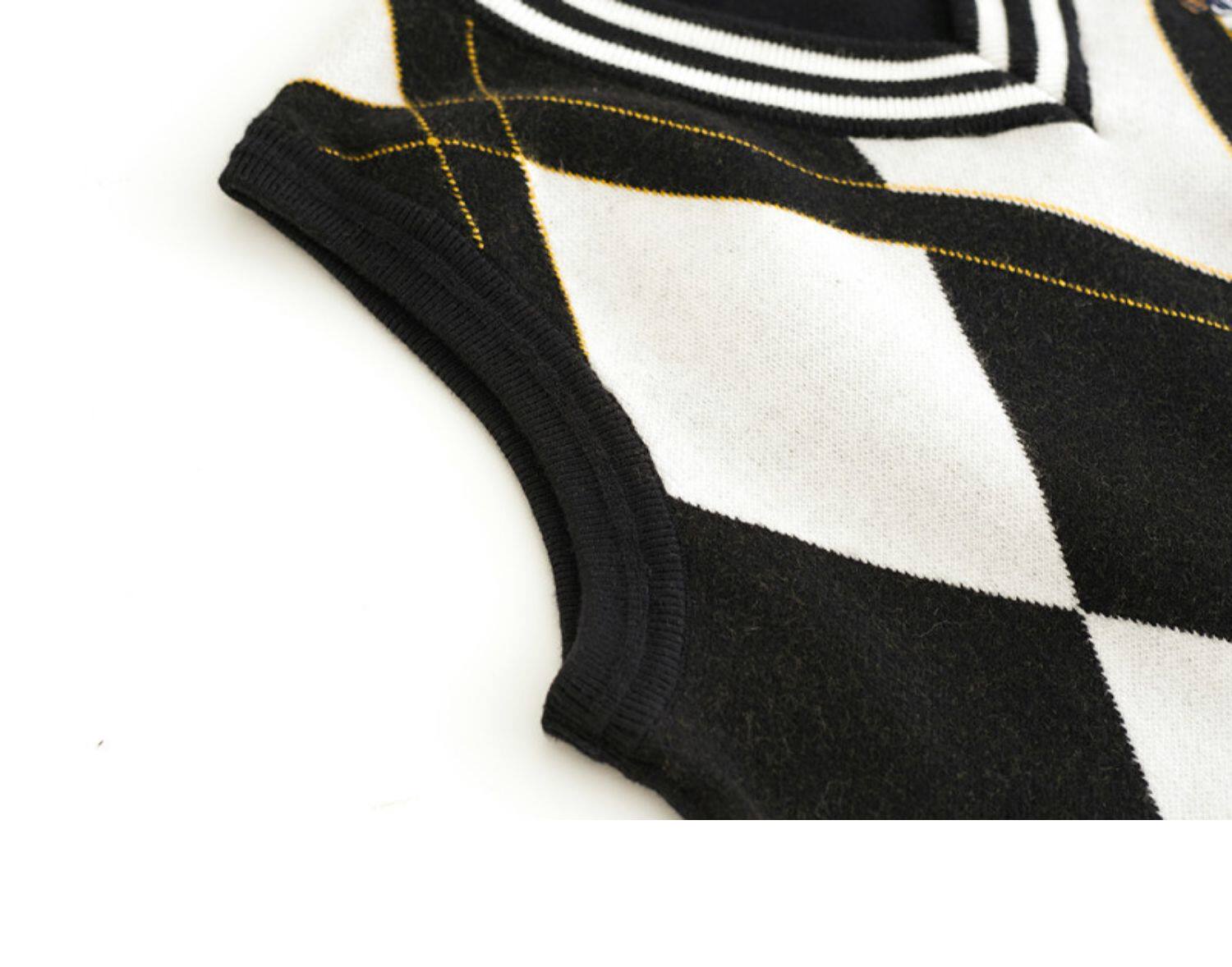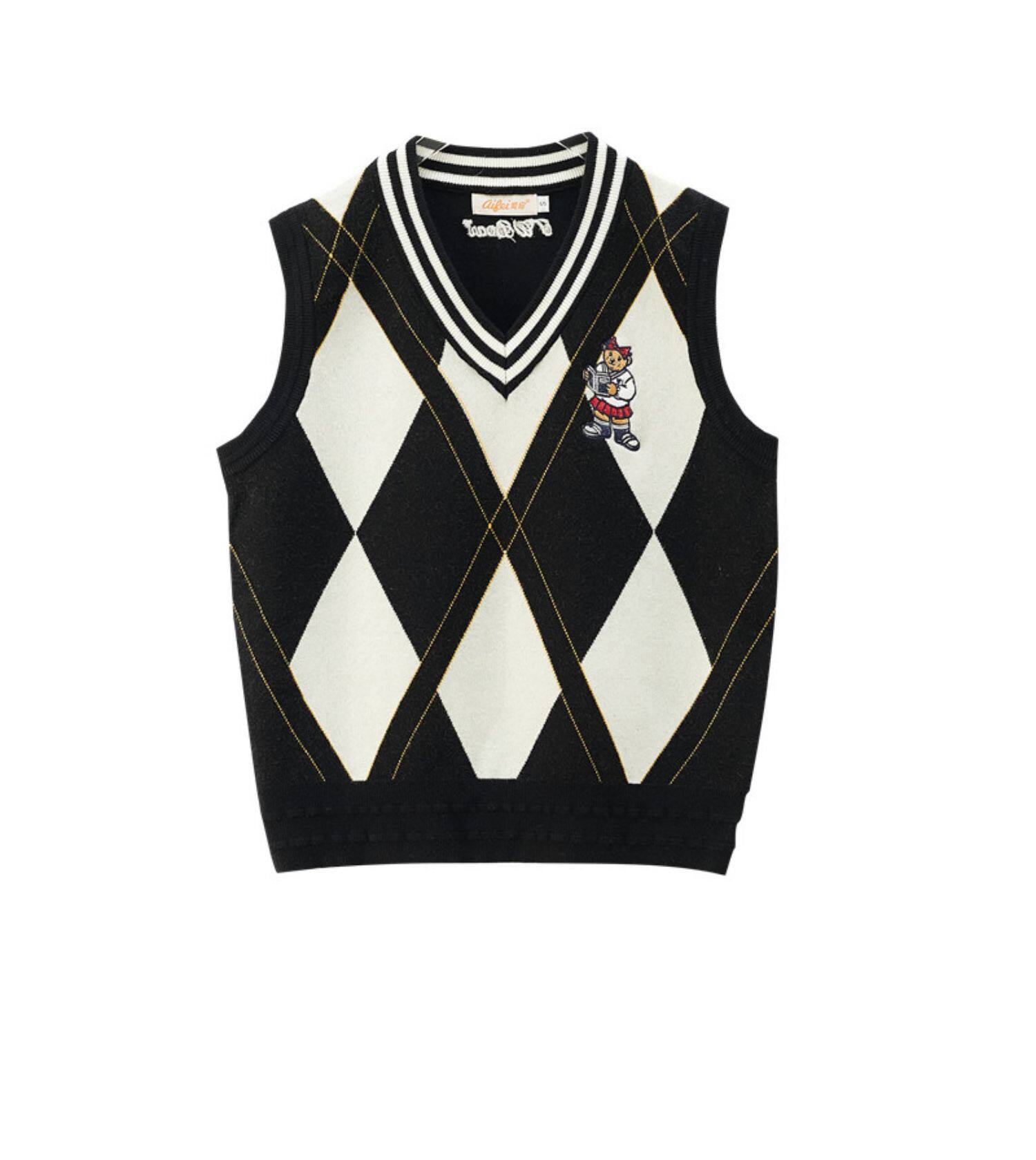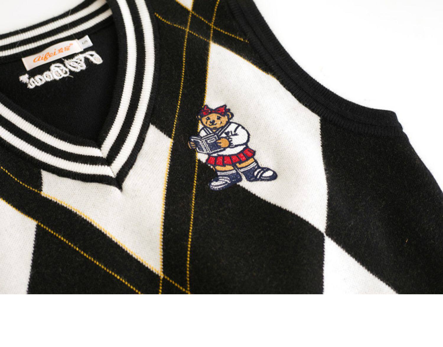 Трикотажный свитер, небольшой дизайнерский осенний жилет, в корейском стиле, с медвежатами, с вышивкой, коллекция 2022