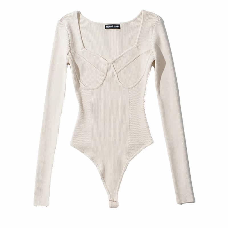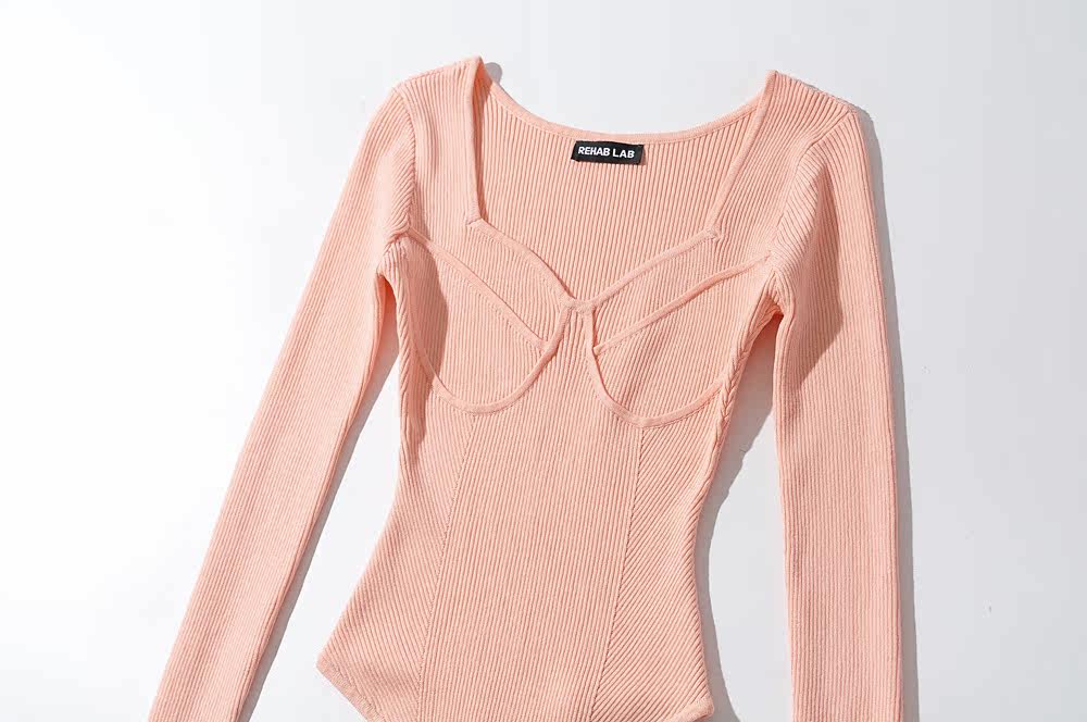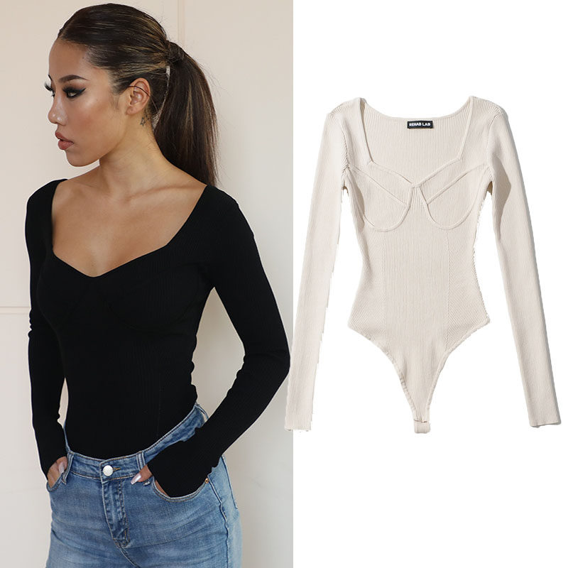 Демисезонный сексуальный пуховик, базовый приятный телу лонгслив, боди, коллекция 2021, в обтяжку, V-образный вырез