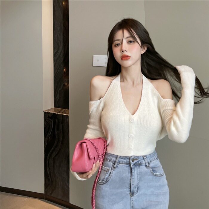 Осенний трикотажный лонгслив, свитер, 2022, яркий броский стиль