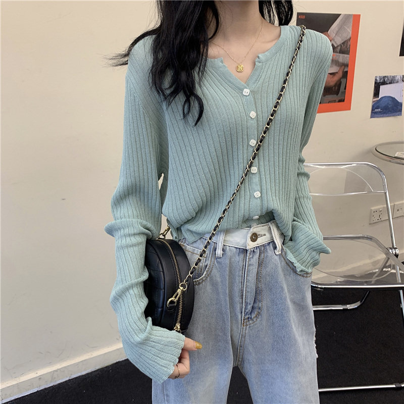 Весенний трикотажный свитер, лонгслив, кардиган, большой размер, подходит для полных девушек, свободный крой, V-образный вырез